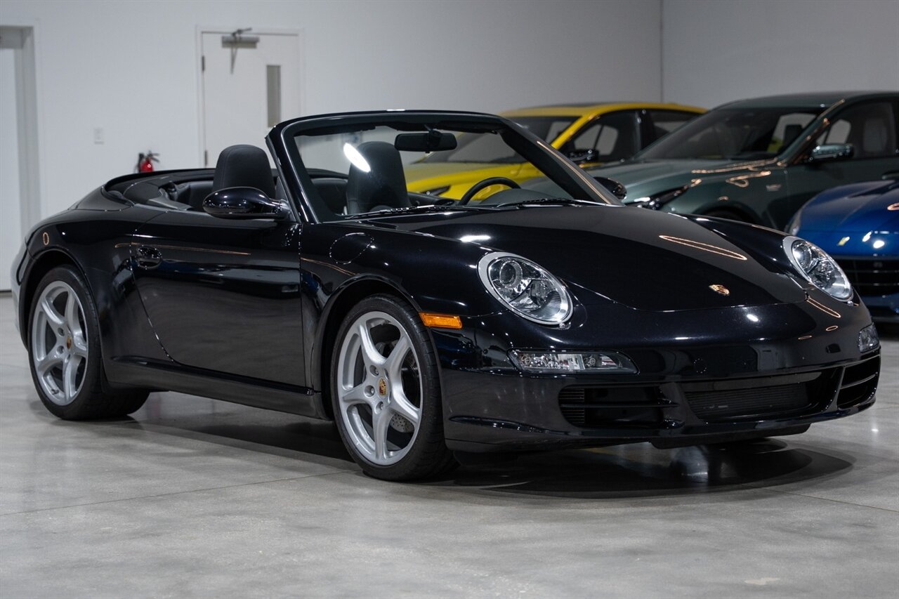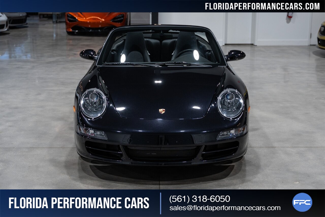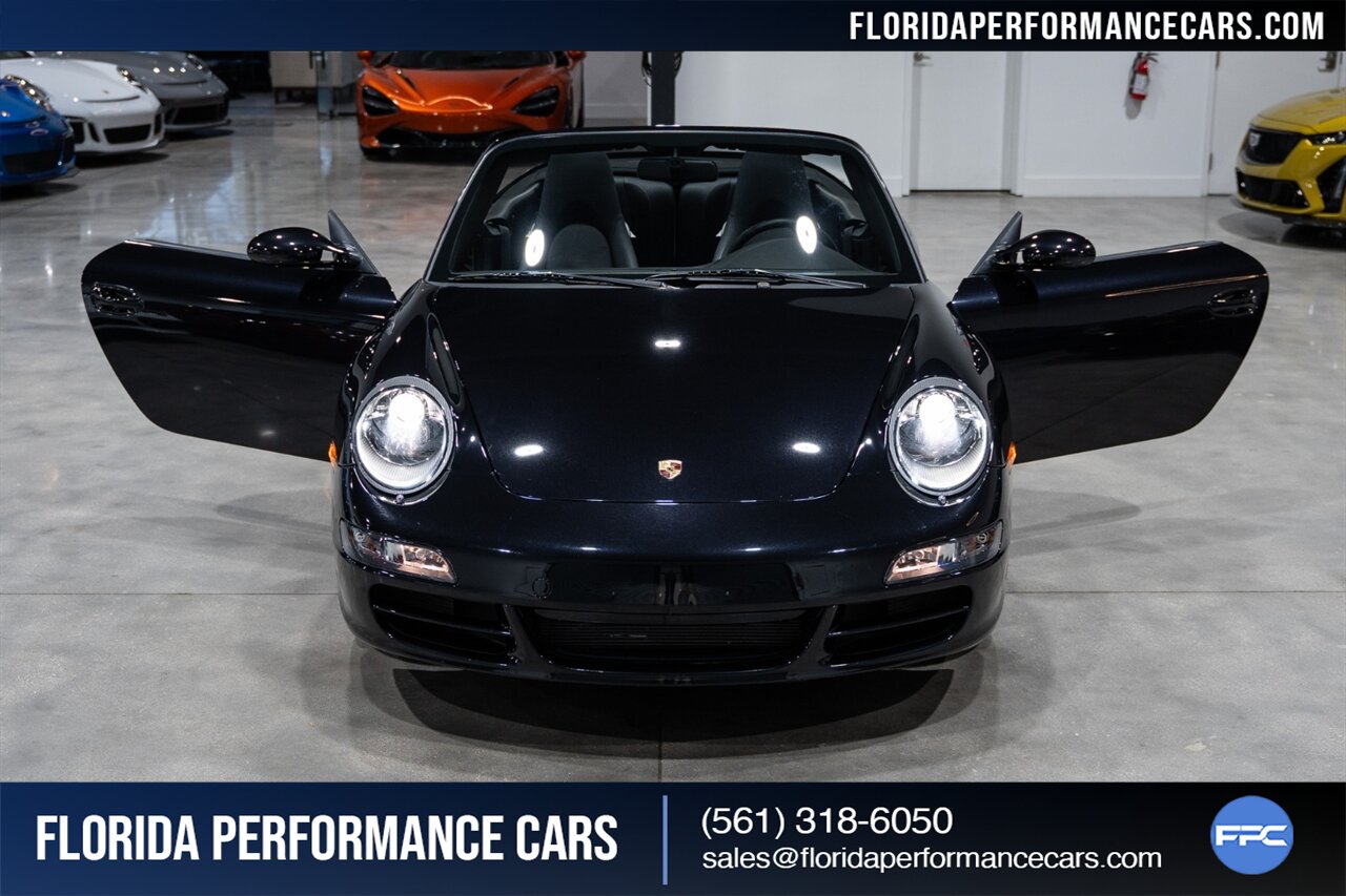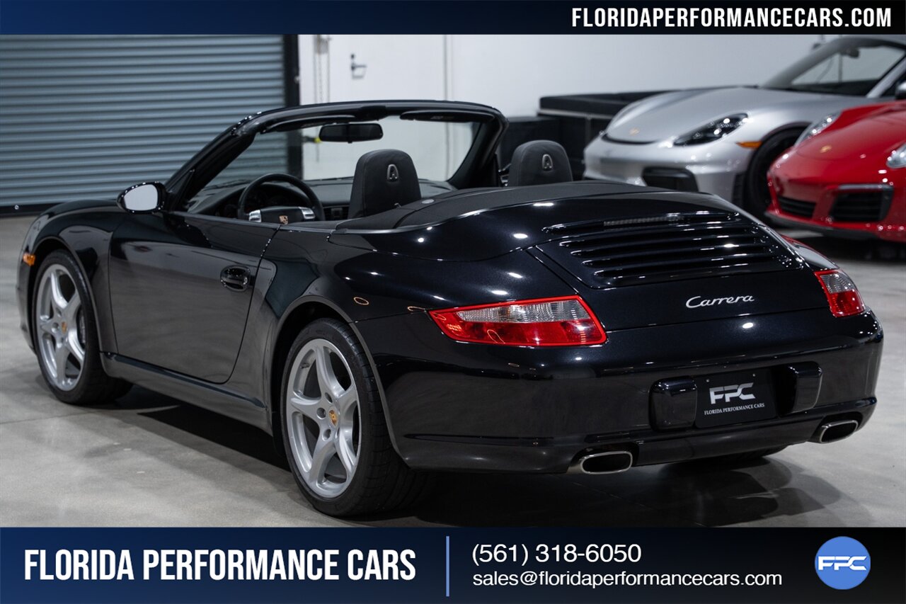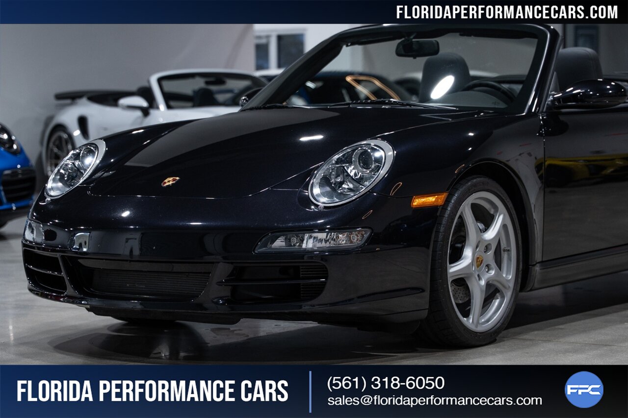 Florida Performance Cars is pleased to announce the arrival of this STUNNING 2007 Porsche 911 Carrera Cabriolet finished in Basalt Black Metallic over Black interior w/ ONLY 10,566 miles!! This is a Clean CARFAX, pristine condition and exceptionally well-kept 997 Carrera cab.