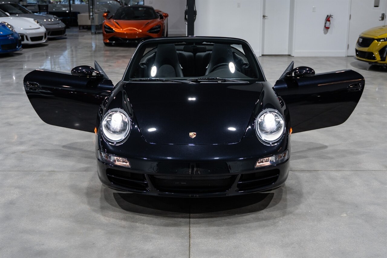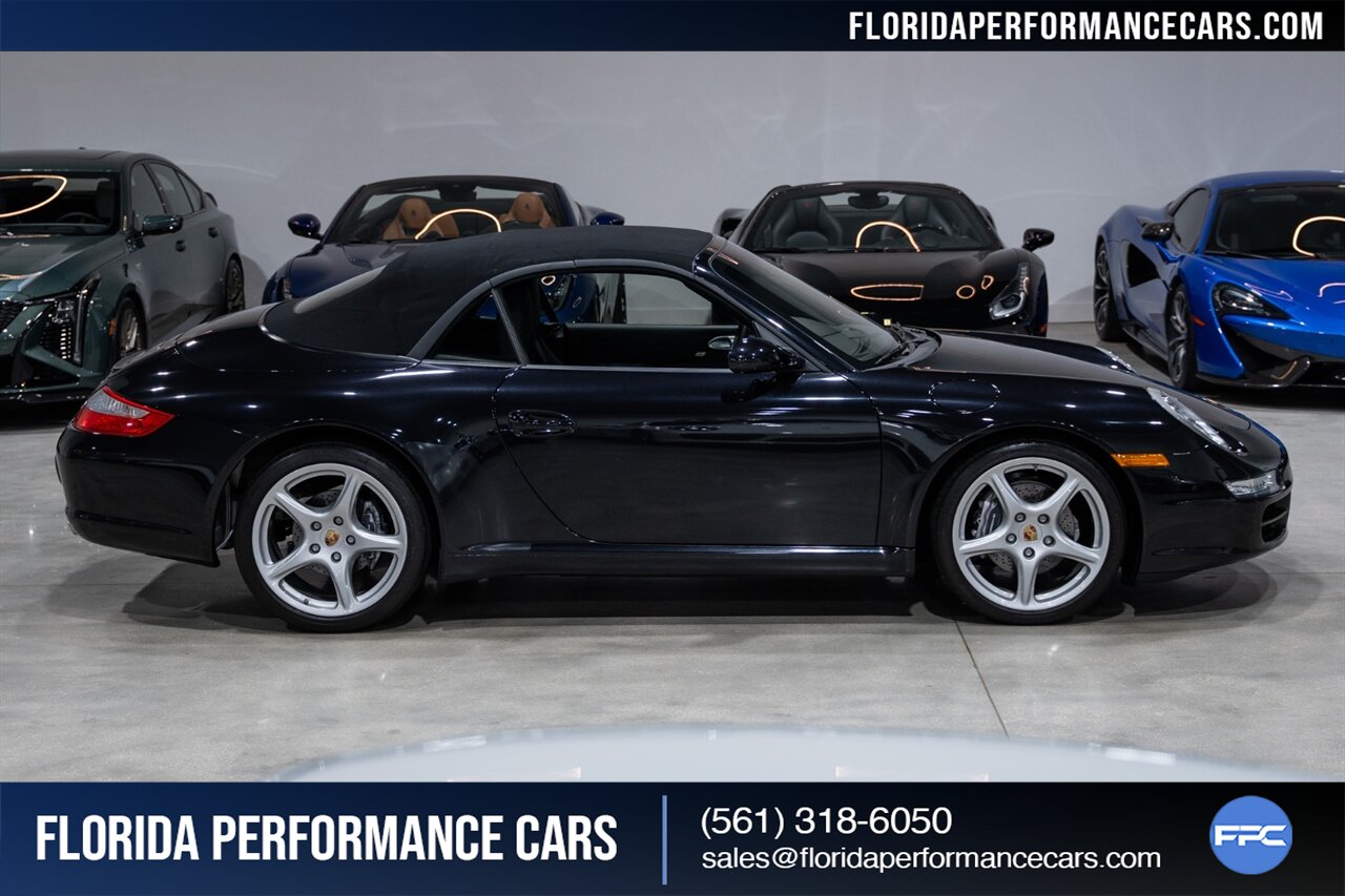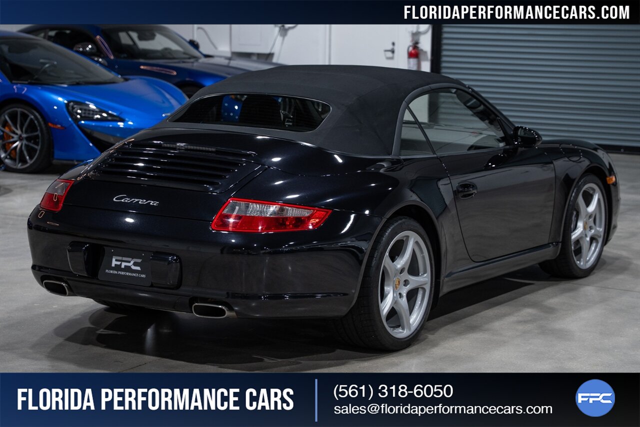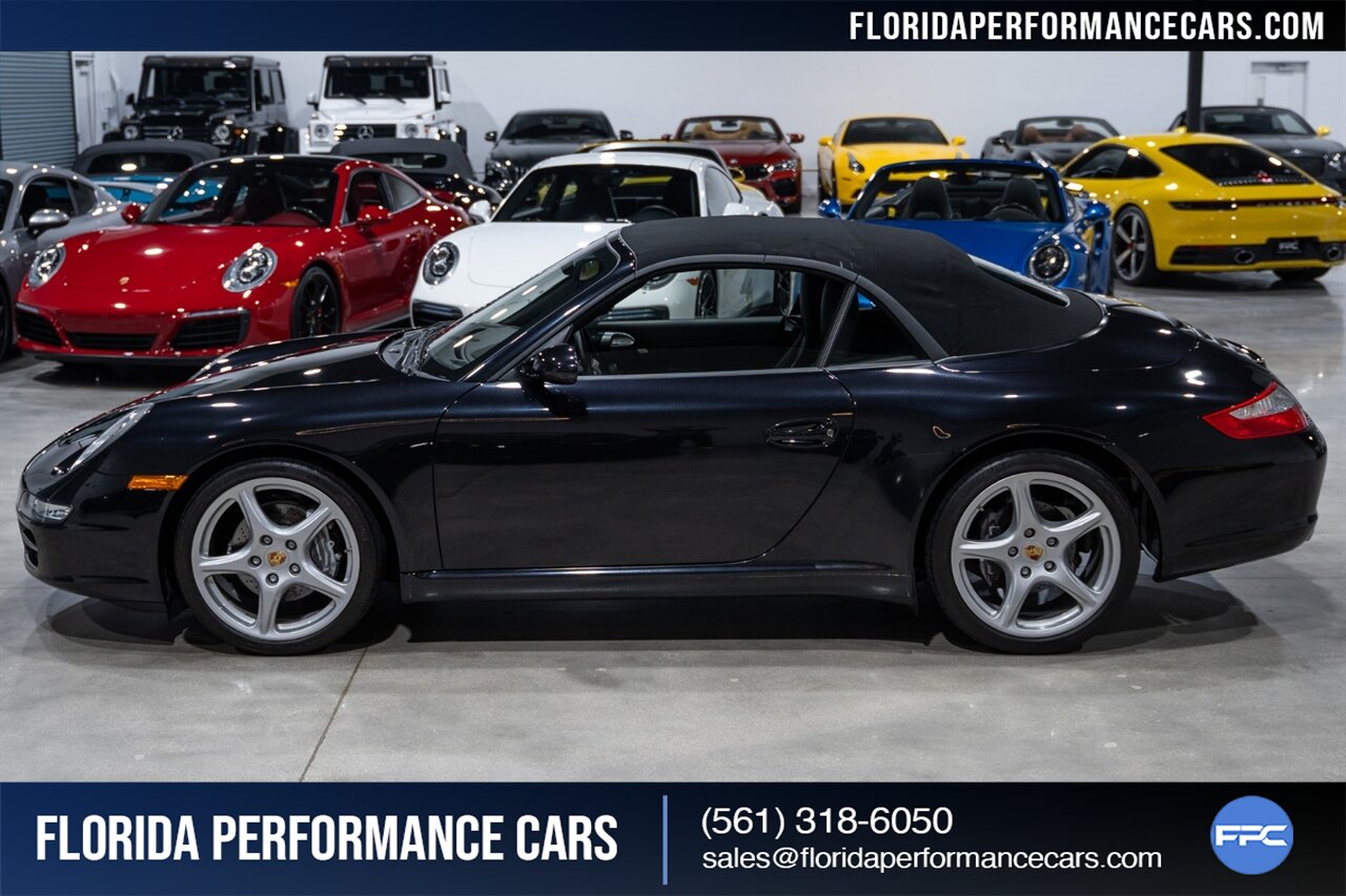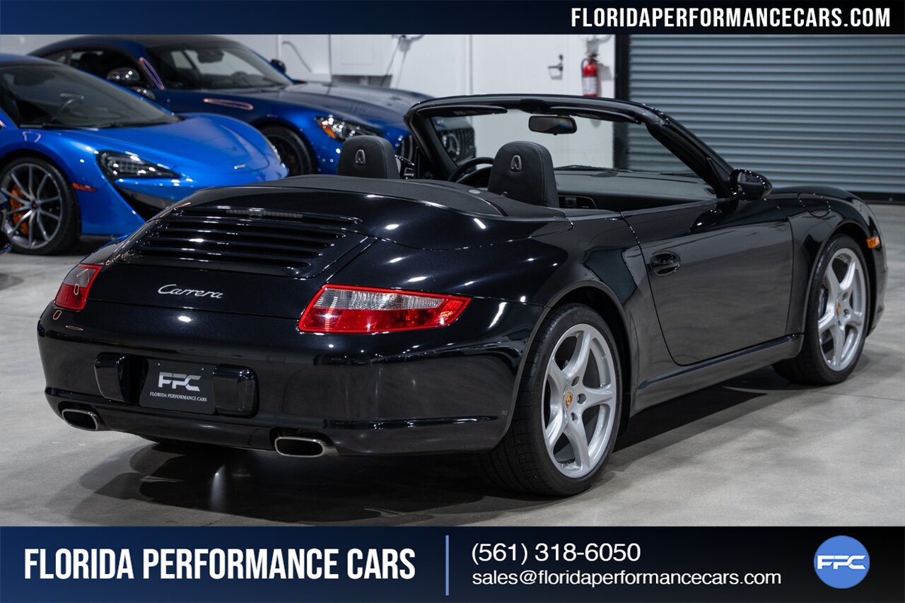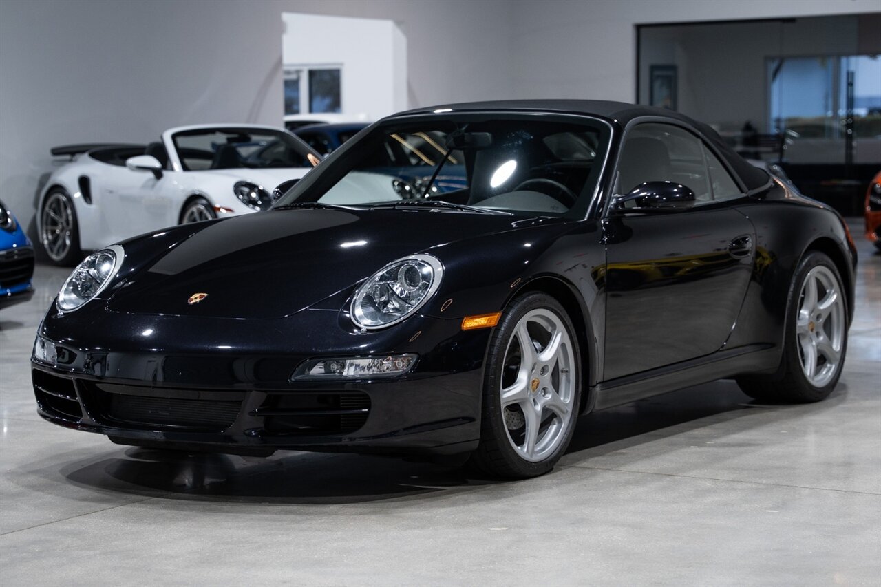 Florida Performance Cars is pleased to announce the arrival of this STUNNING 2007 Porsche 911 Carrera Cabriolet finished in Basalt Black Metallic over Black interior w/ ONLY 10,566 miles!! This is a Clean CARFAX, pristine condition and exceptionally well-kept 997 Carrera cab.
