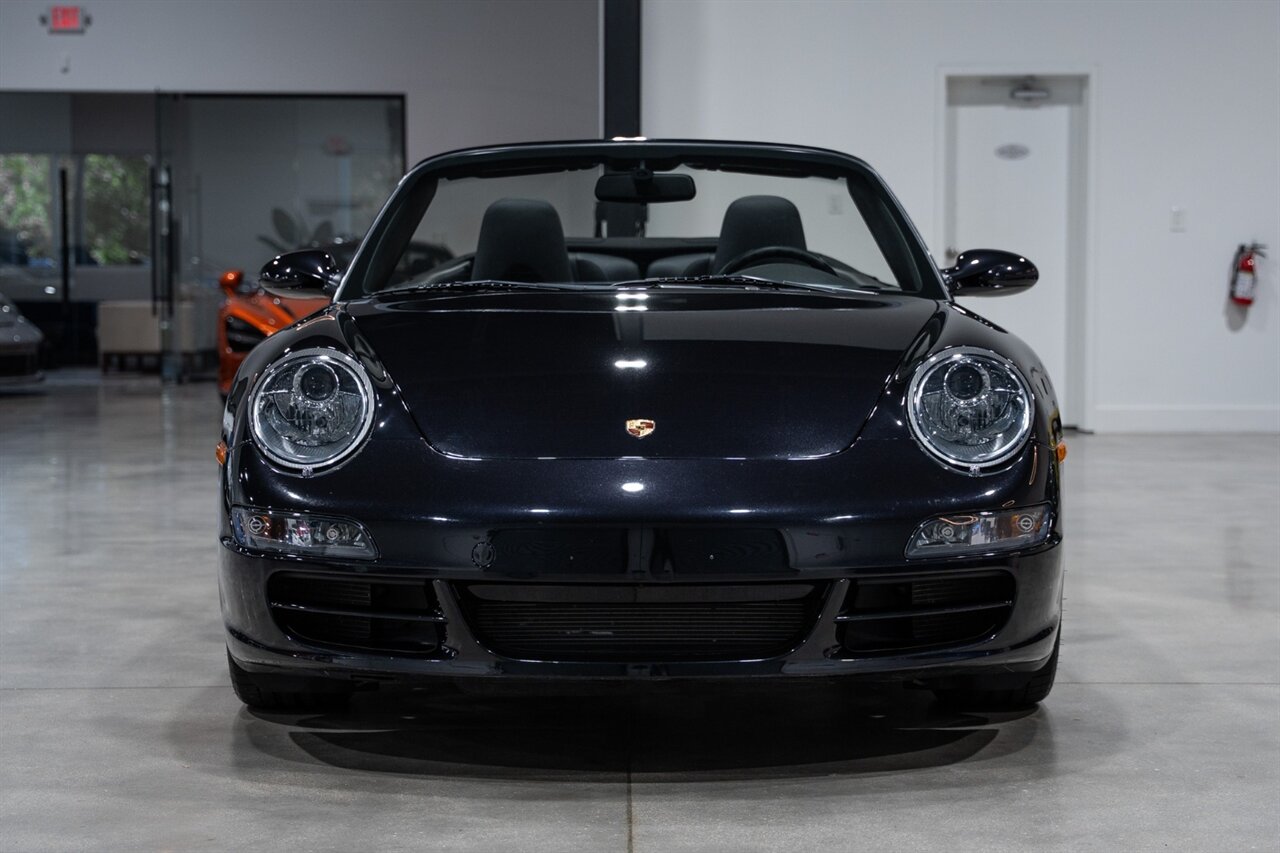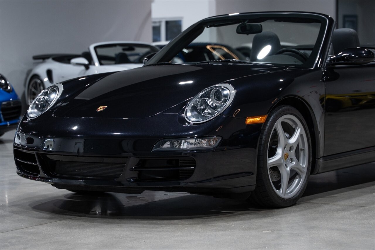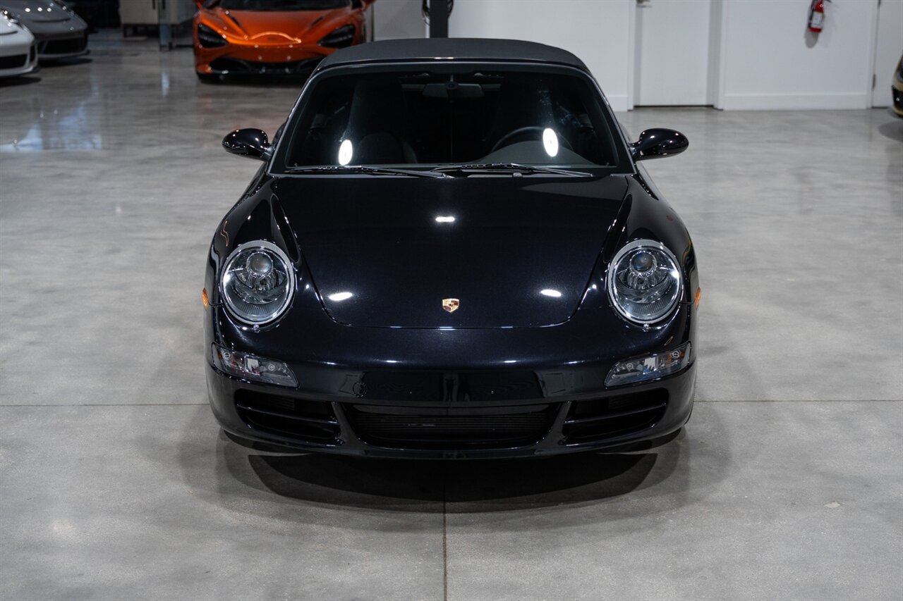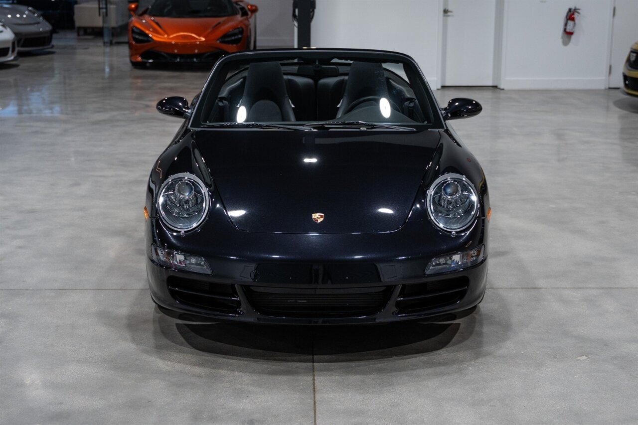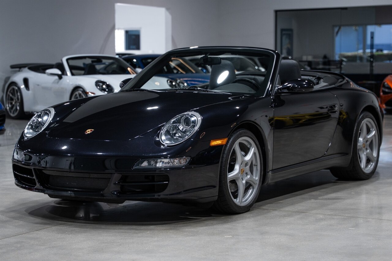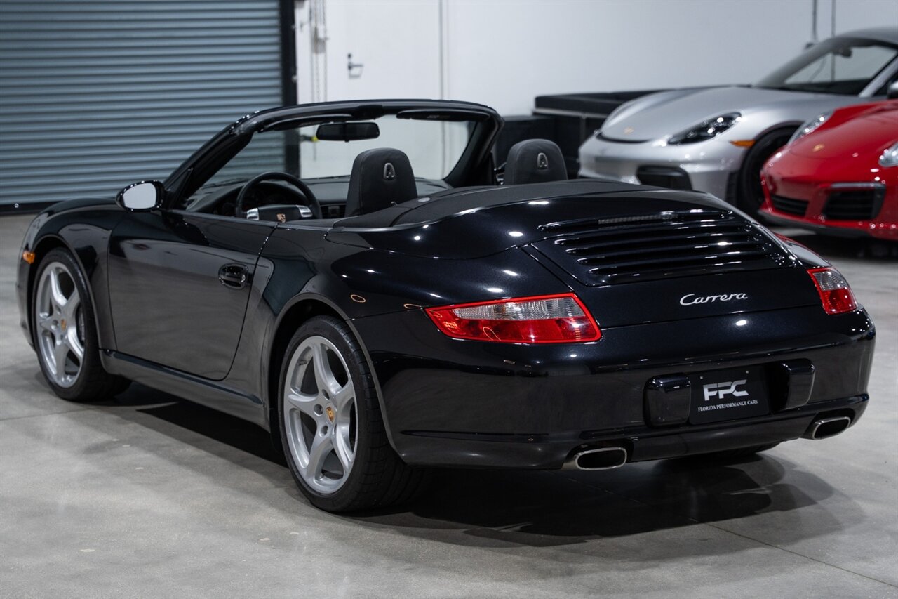 Florida Performance Cars is pleased to announce the arrival of this STUNNING 2007 Porsche 911 Carrera Cabriolet finished in Basalt Black Metallic over Black interior w/ ONLY 10,566 miles!! This is a Clean CARFAX, pristine condition and exceptionally well-kept 997 Carrera cab.