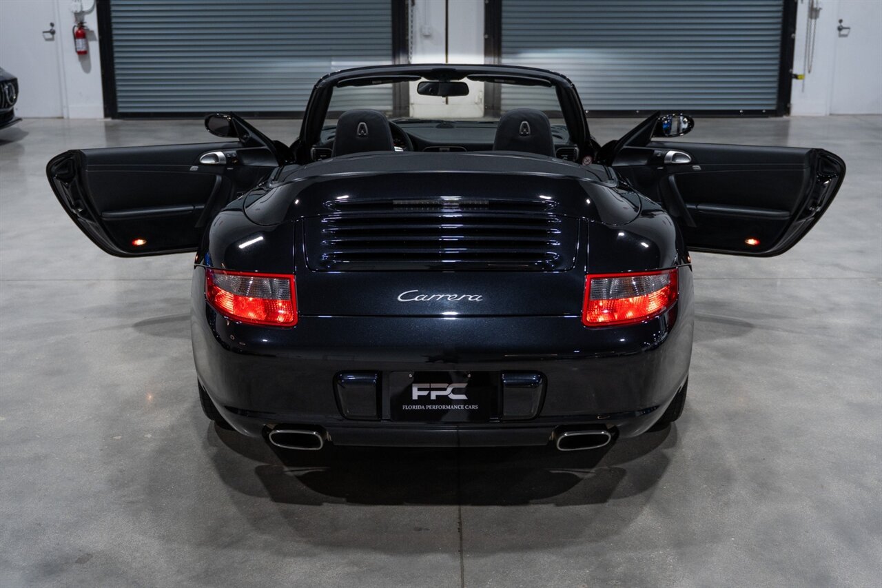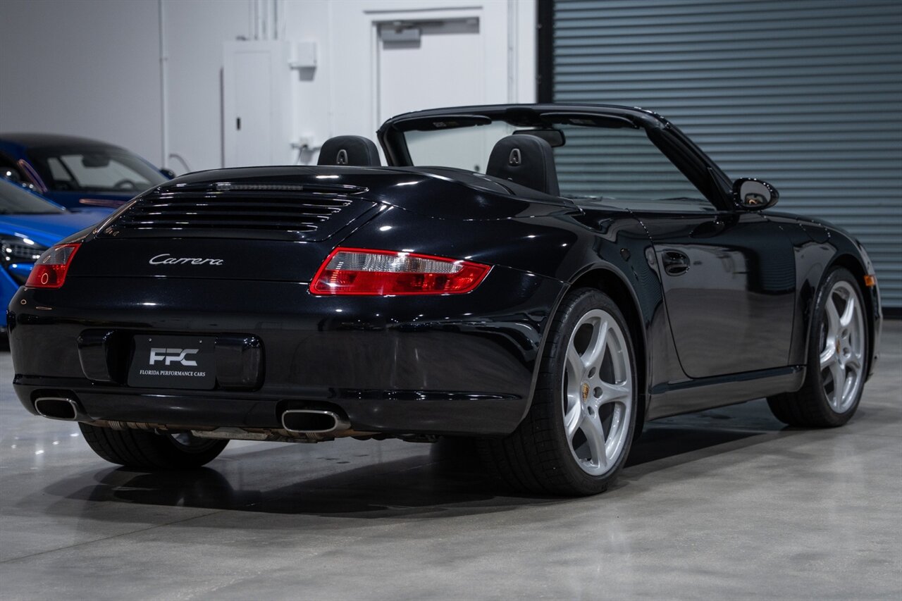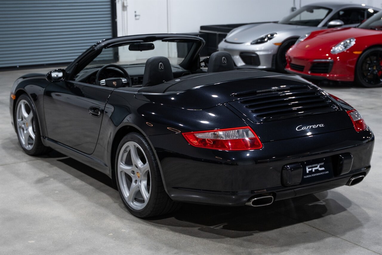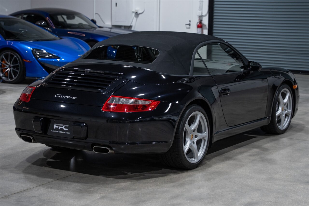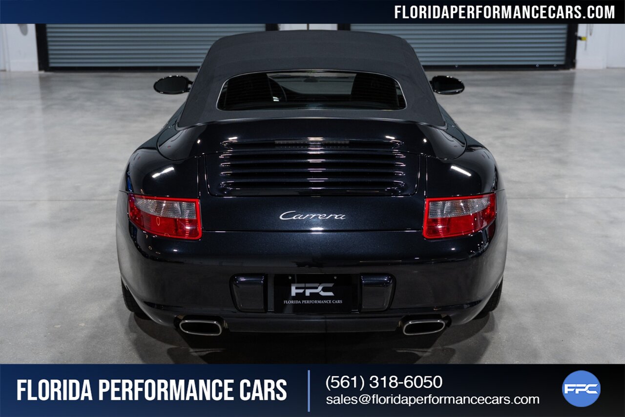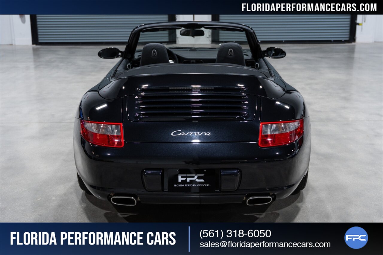 Florida Performance Cars is pleased to announce the arrival of this STUNNING 2007 Porsche 911 Carrera Cabriolet finished in Basalt Black Metallic over Black interior w/ ONLY 10,566 miles!! This is a Clean CARFAX, pristine condition and exceptionally well-kept 997 Carrera cab.