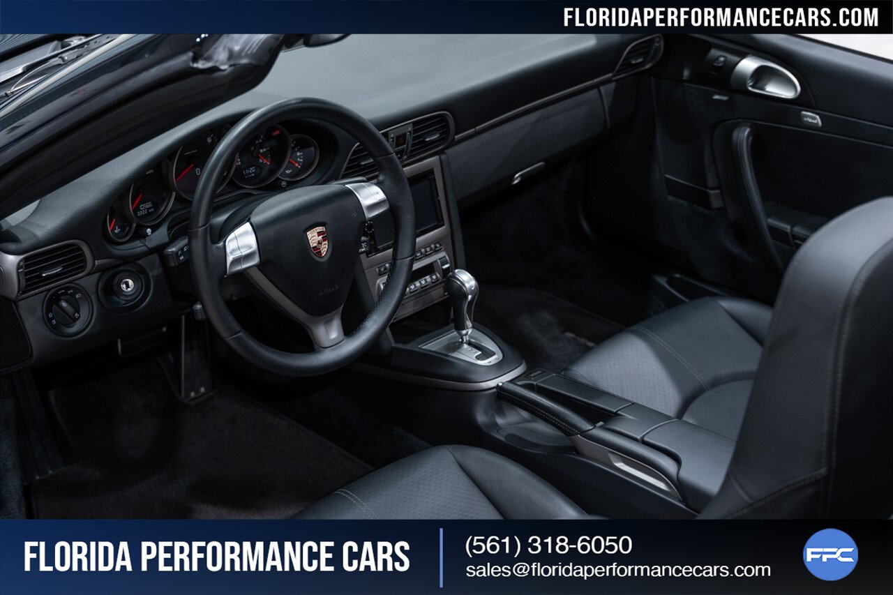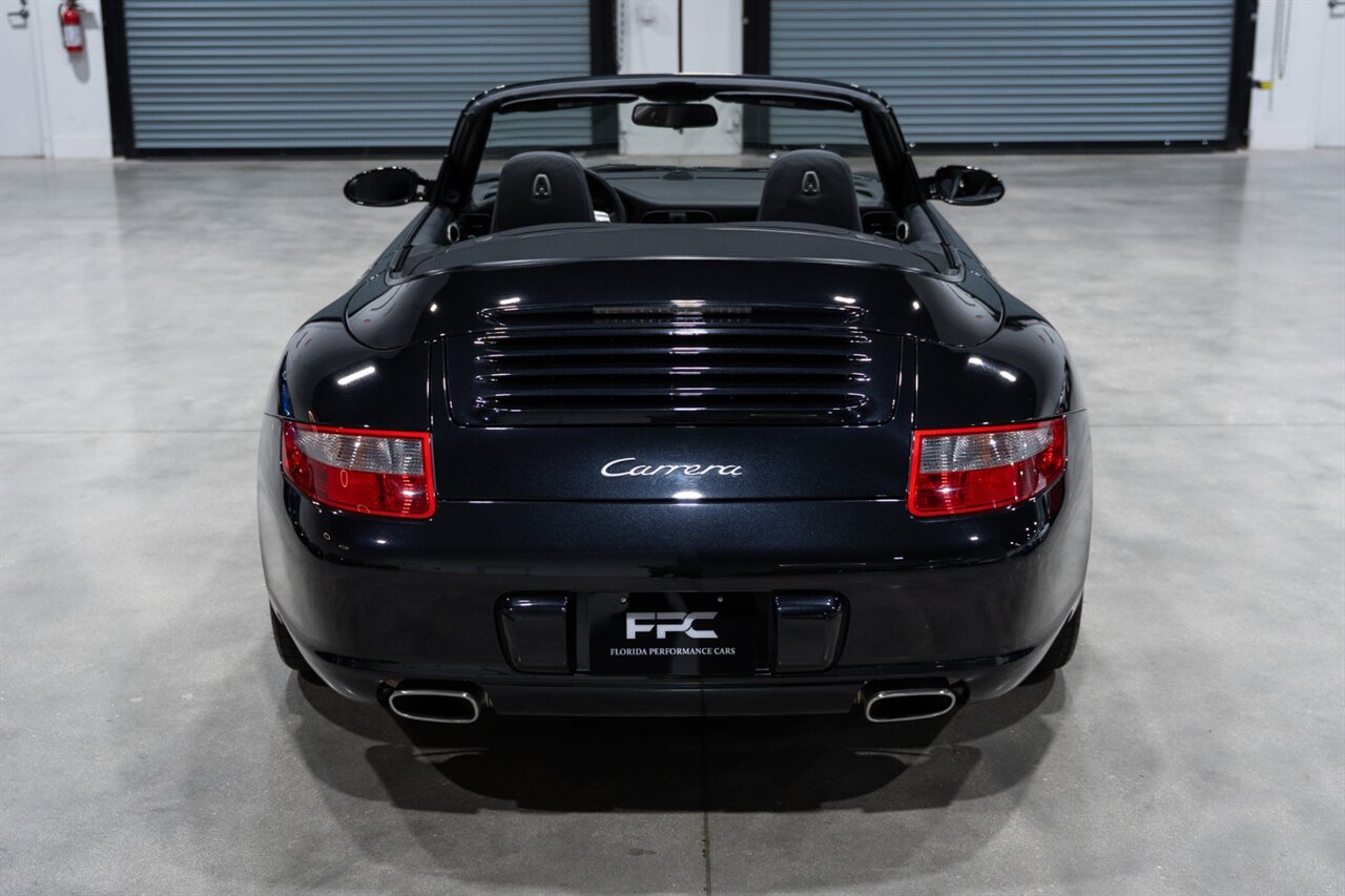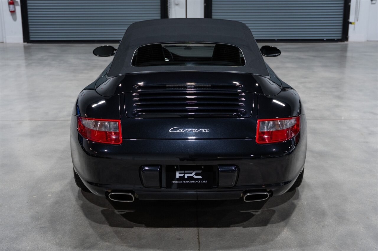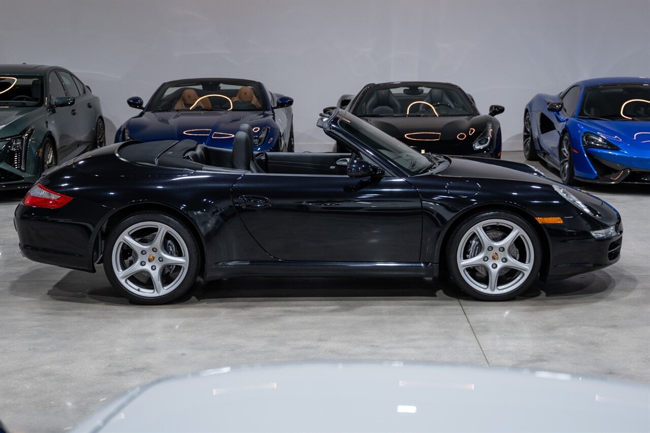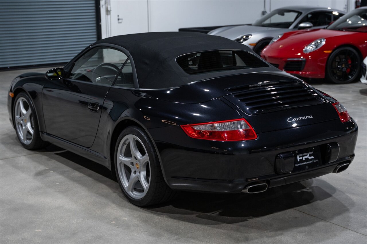 Florida Performance Cars is pleased to announce the arrival of this STUNNING 2007 Porsche 911 Carrera Cabriolet finished in Basalt Black Metallic over Black interior w/ ONLY 10,566 miles!! This is a Clean CARFAX, pristine condition and exceptionally well-kept 997 Carrera cab.