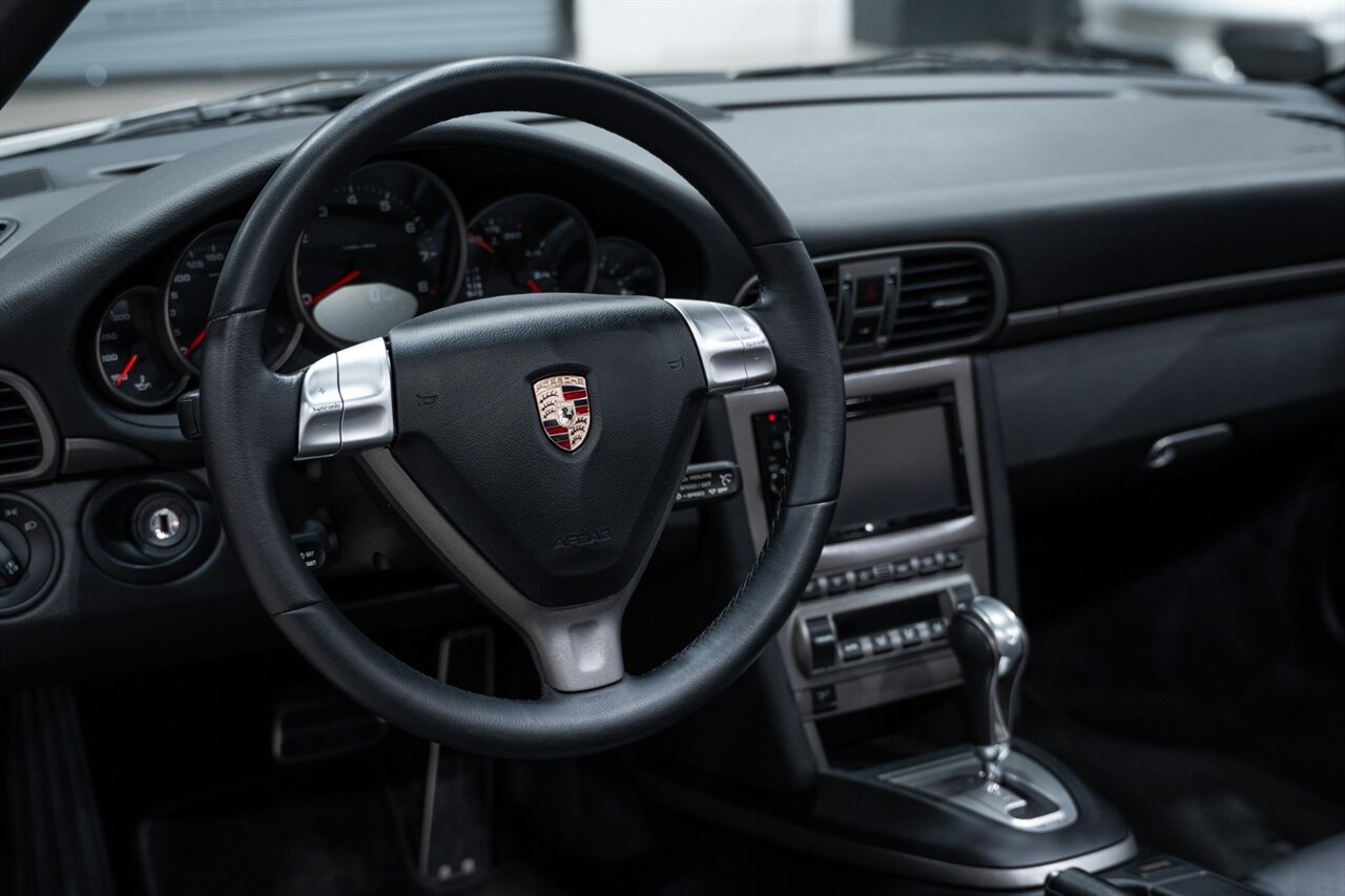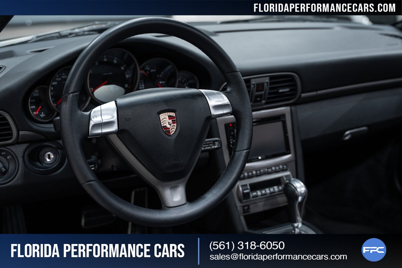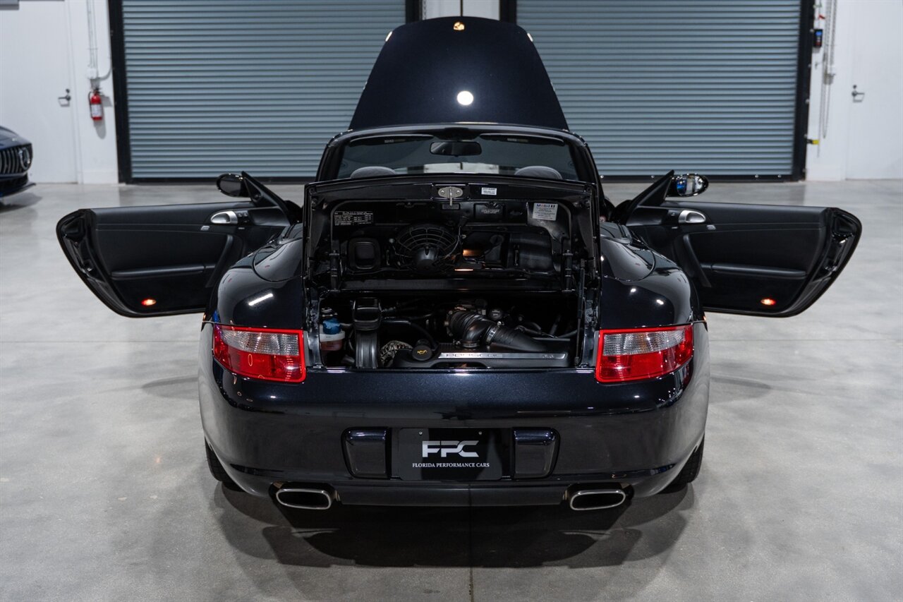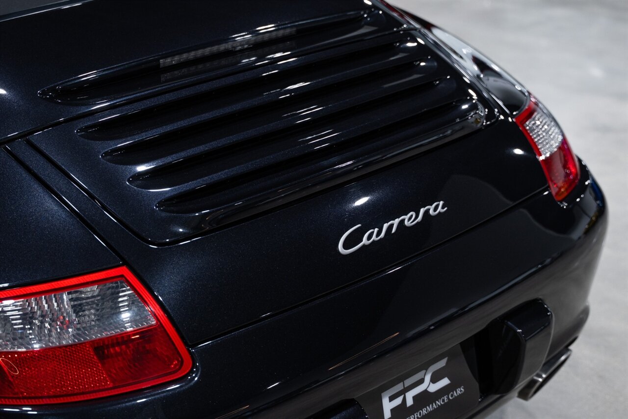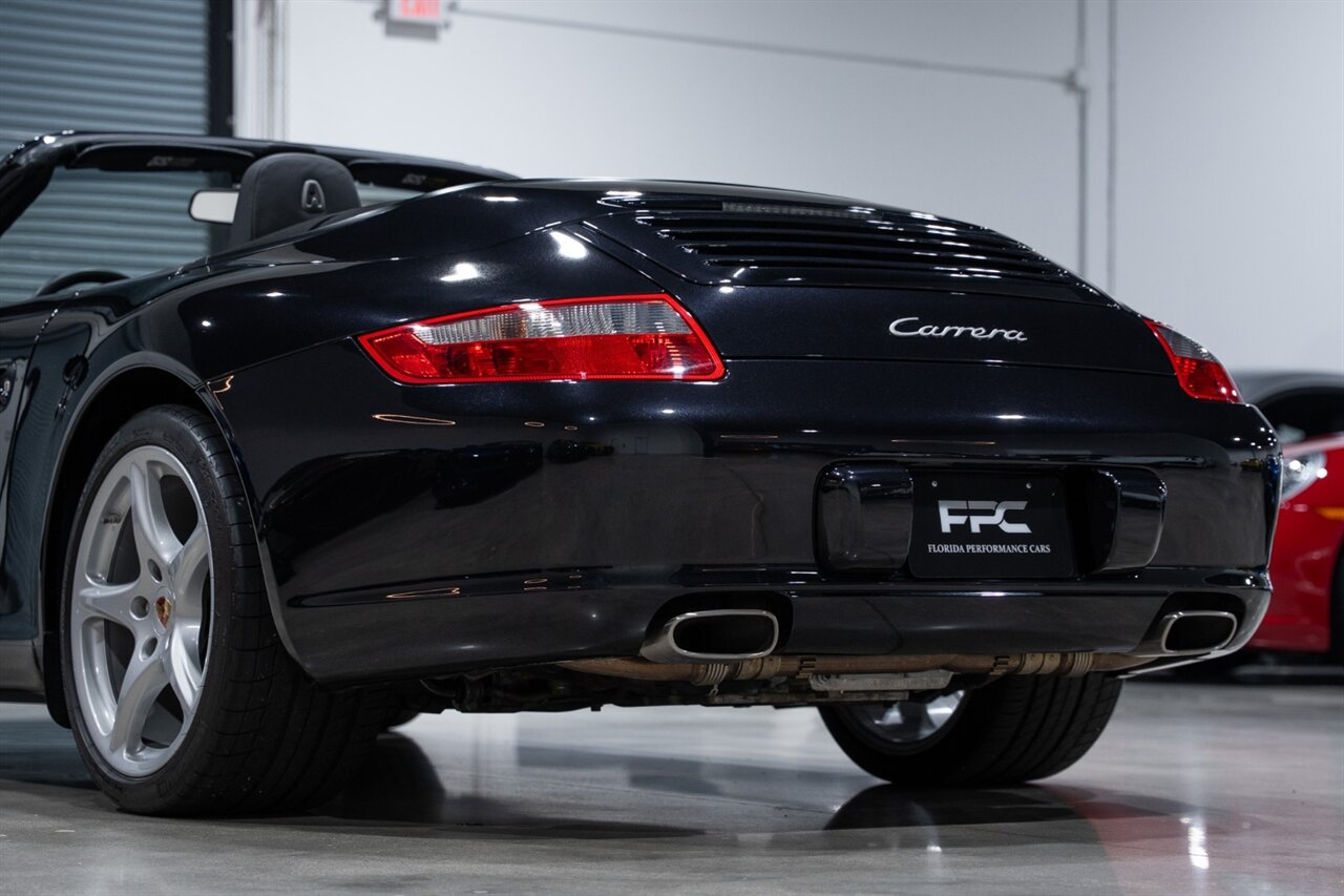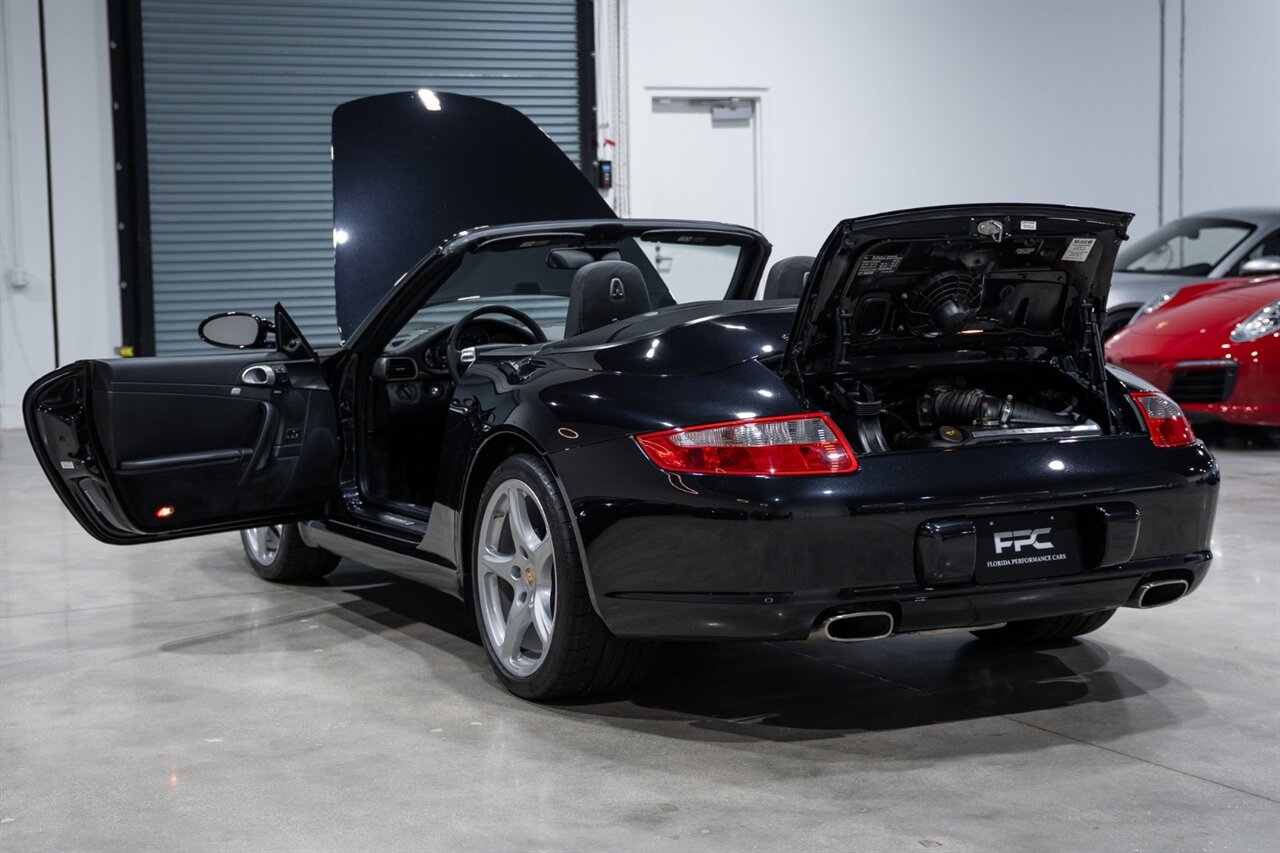 Florida Performance Cars is pleased to announce the arrival of this STUNNING 2007 Porsche 911 Carrera Cabriolet finished in Basalt Black Metallic over Black interior w/ ONLY 10,566 miles!! This is a Clean CARFAX, pristine condition and exceptionally well-kept 997 Carrera cab.