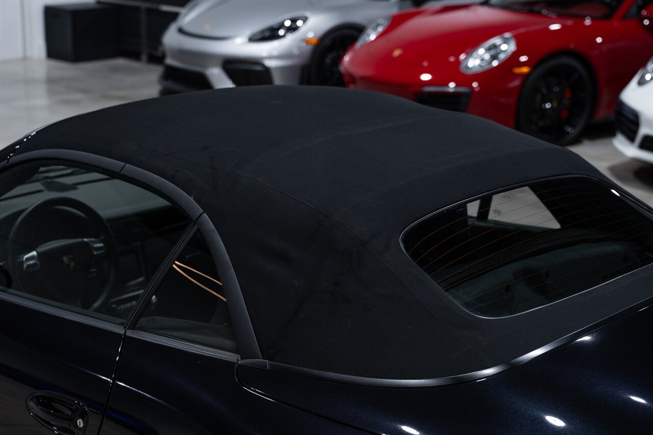 Garage kept, non-smoker, all original car. Southern California owned since new, serviced at Porsche. Tires are good Michelin Pilot Sport all around. No error lights on, top functions normally, canvas in good shape, cold A/C.
