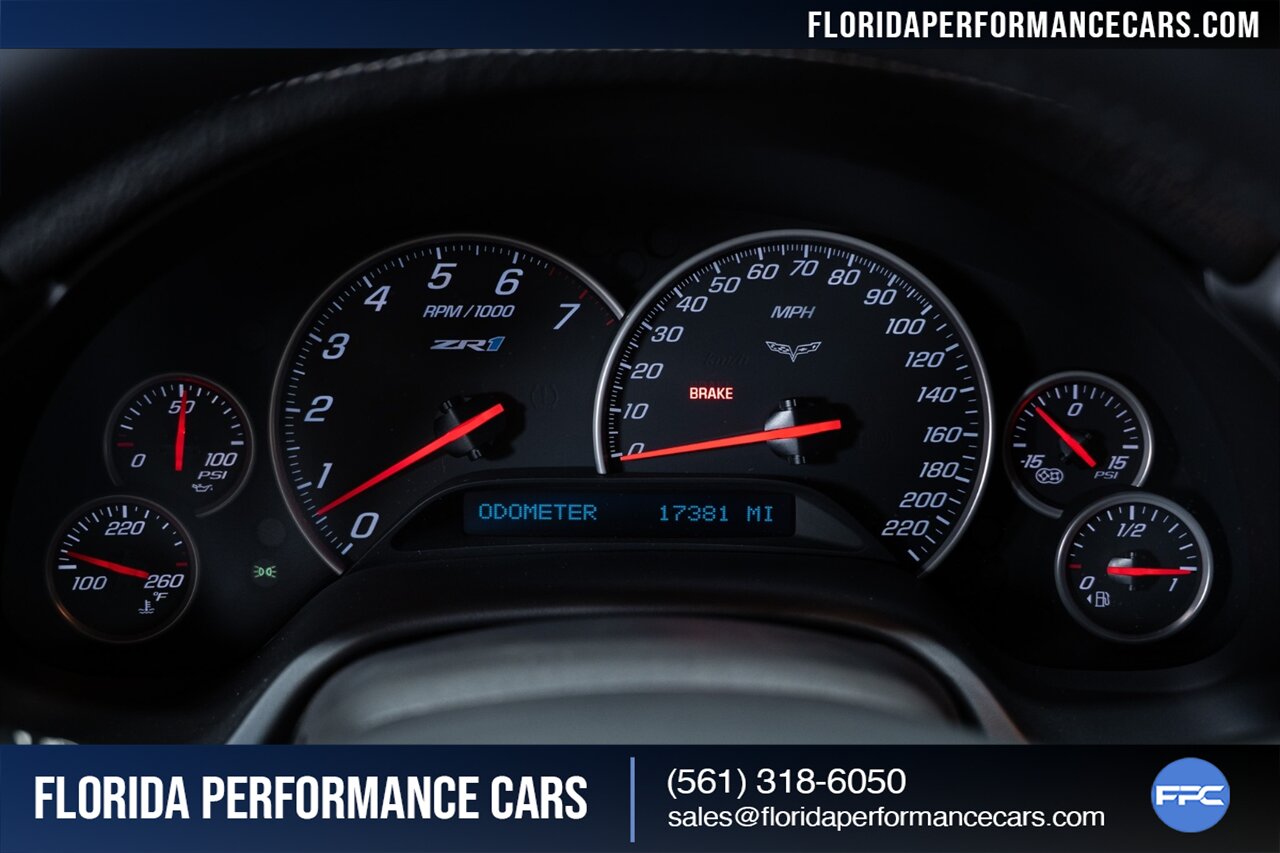 Florida Performance Cars is pleased to announce the arrival of this STUNNING 2010 Chevrolet Corvette ZR1 finished in Black over Dark Titanium Leather Wrapped Seating Surfaces w/ ONLY 17,381 miles! This is a 1-OWNER, Clean CARFAX and exceptionally well kept C6 ZR1.