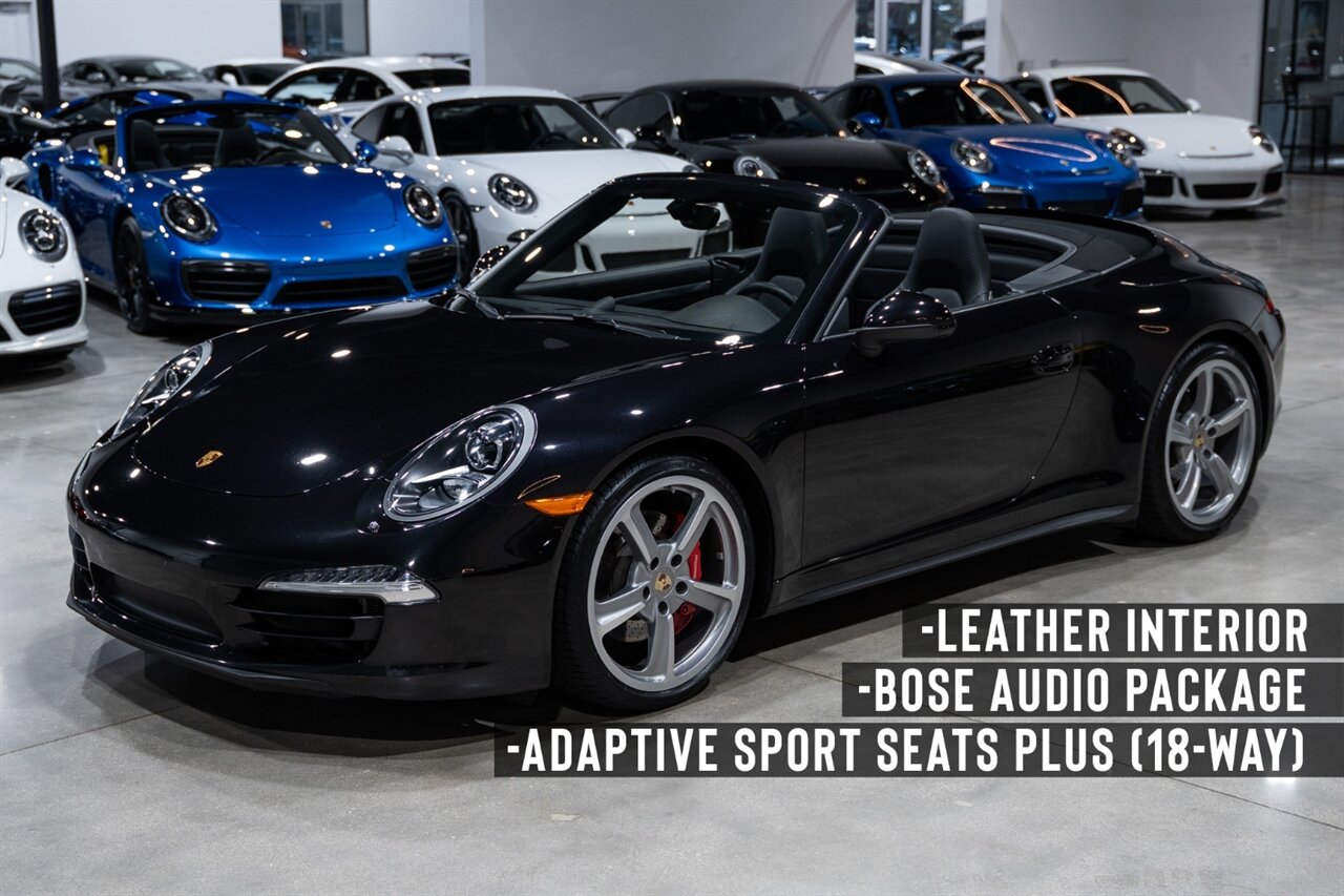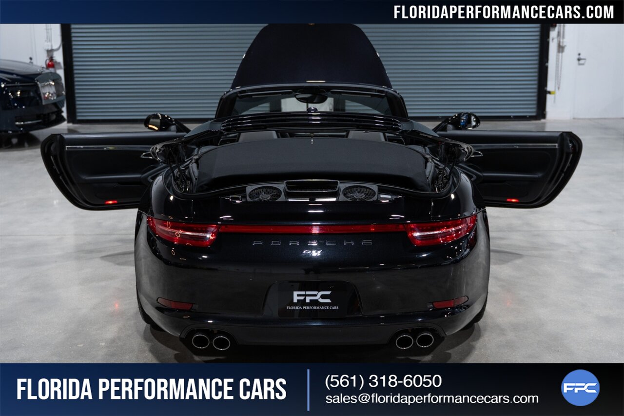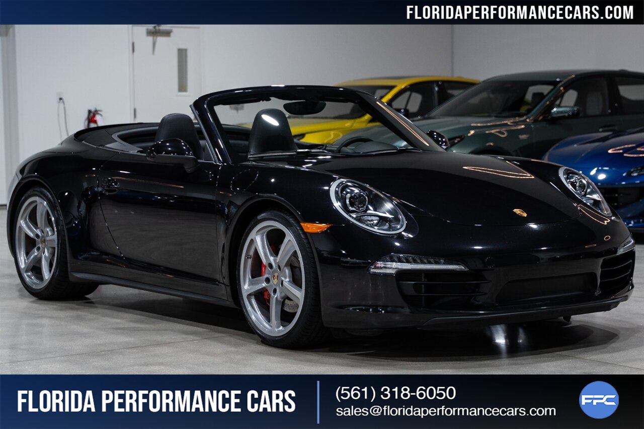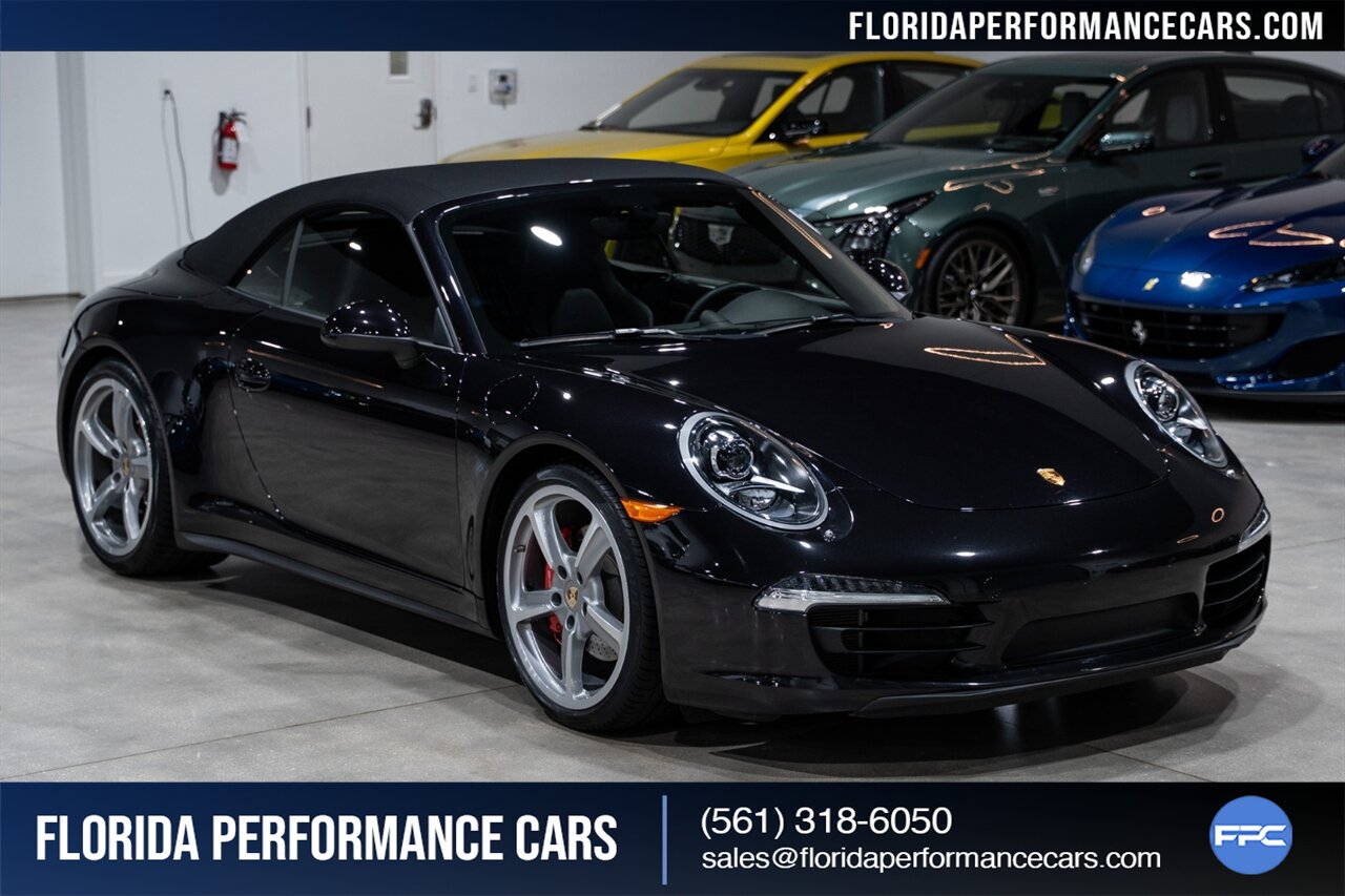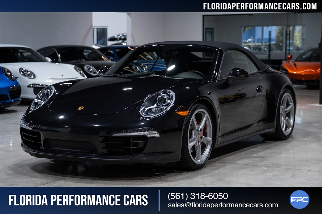 Florida Performance Cars is pleased to announce the arrival of this STUNNING 2013 Porsche 911 Carrera 4S Cabriolet finished in Basalt Black Metallic over Black leather interior w/ Only 24,848 miles! This is a Clean CARFAX, excellent condition and Exceptionally well optioned 911/991 Carrera 4S Cab.