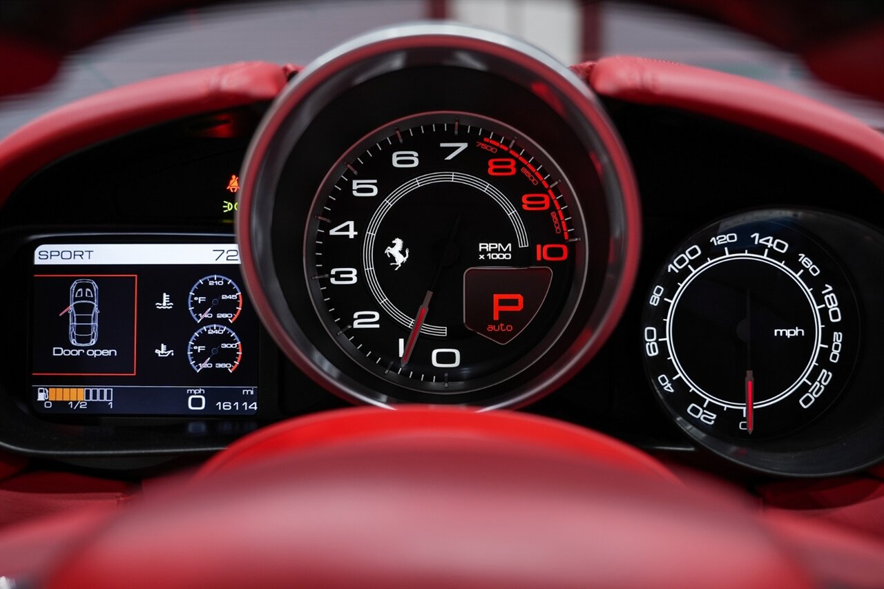 Super hot and rare interior, Rosso Ferrari with DAYTONA STYLE Full Electric seats, Carbon Steering Wheel w/ LEDS, Scuderia Shields, Front & Rear Parking Sensors, Satellite Radio, Colored Seat piping, Cruise Control, and much more!