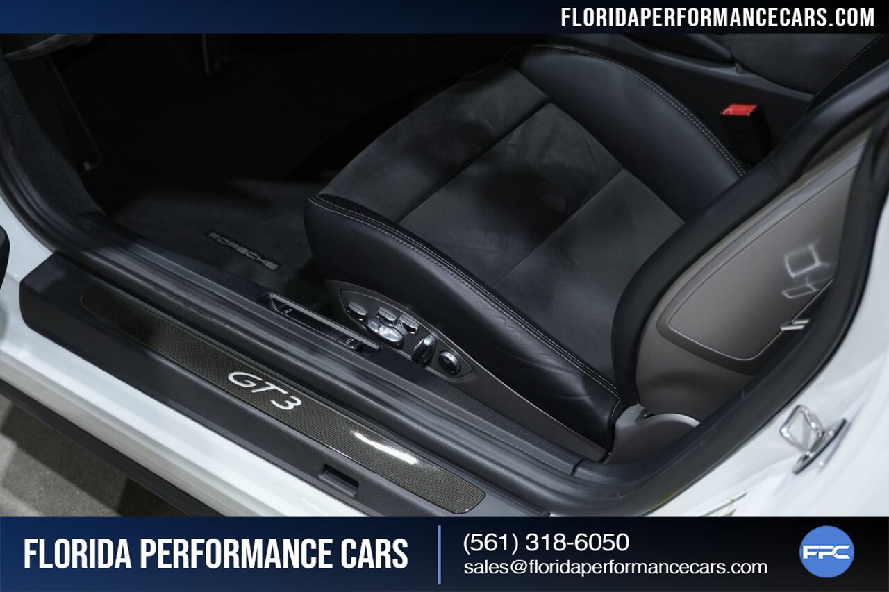 Florida Performance Cars is pleased to announce the arrival of this STUNNING 2015 Porsche 911 GT3 finished in White over Leather Interior in Black/Alcantara with Stitching in Platinum Grey and 26,865 miles. This is a Clean CARFAX, excellent condition and VERY well optioned 911/991 GT3.Garage kept, non-smoker interior, no aftermarket performance modifications, previously Porsche Certified.