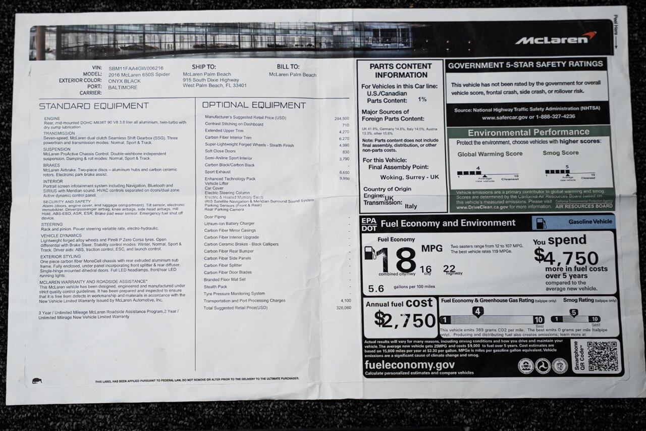 Florida Performance Cars is pleased to announce the arrival of this STUNNING 2016 McLaren 650S Spider finished in Onxy Black over Carbon Black interior w/ ONLY 4,467 miles! This is Clean CARFAX, pristine condition and EXCEPTIONALLY well optioned 650S spider!