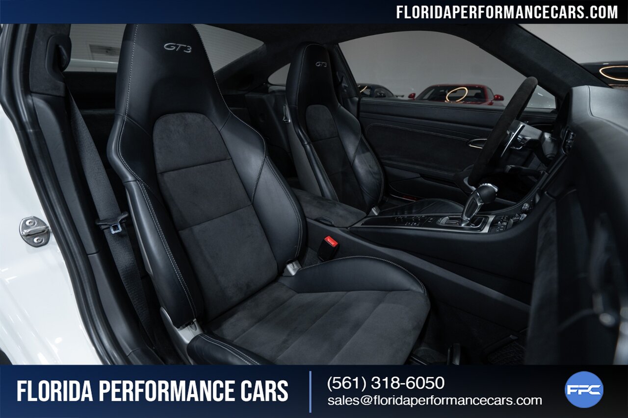 Florida Performance Cars is pleased to announce the arrival of this STUNNING 2016 Porsche 911 GT3 finished in White over Leather Interior in Black/Alcantara with Stitching in Platinum Grey and 41,489 miles. This is a Clean CARFAX, excellent condition and well appointed 991 GT3.