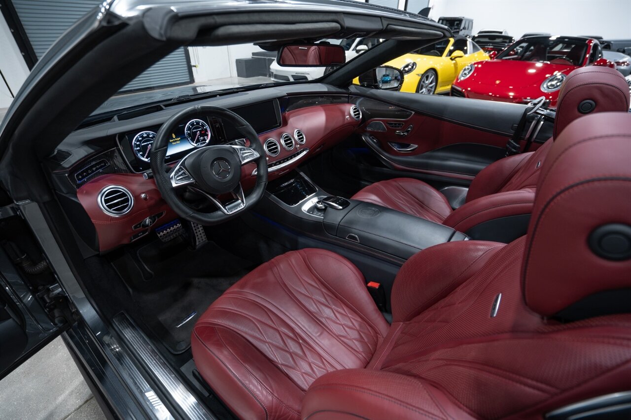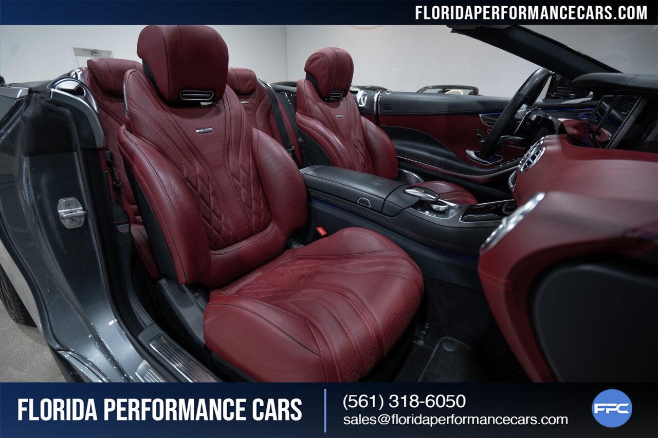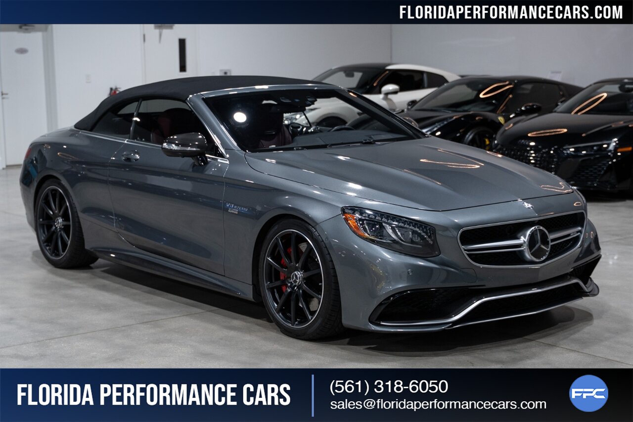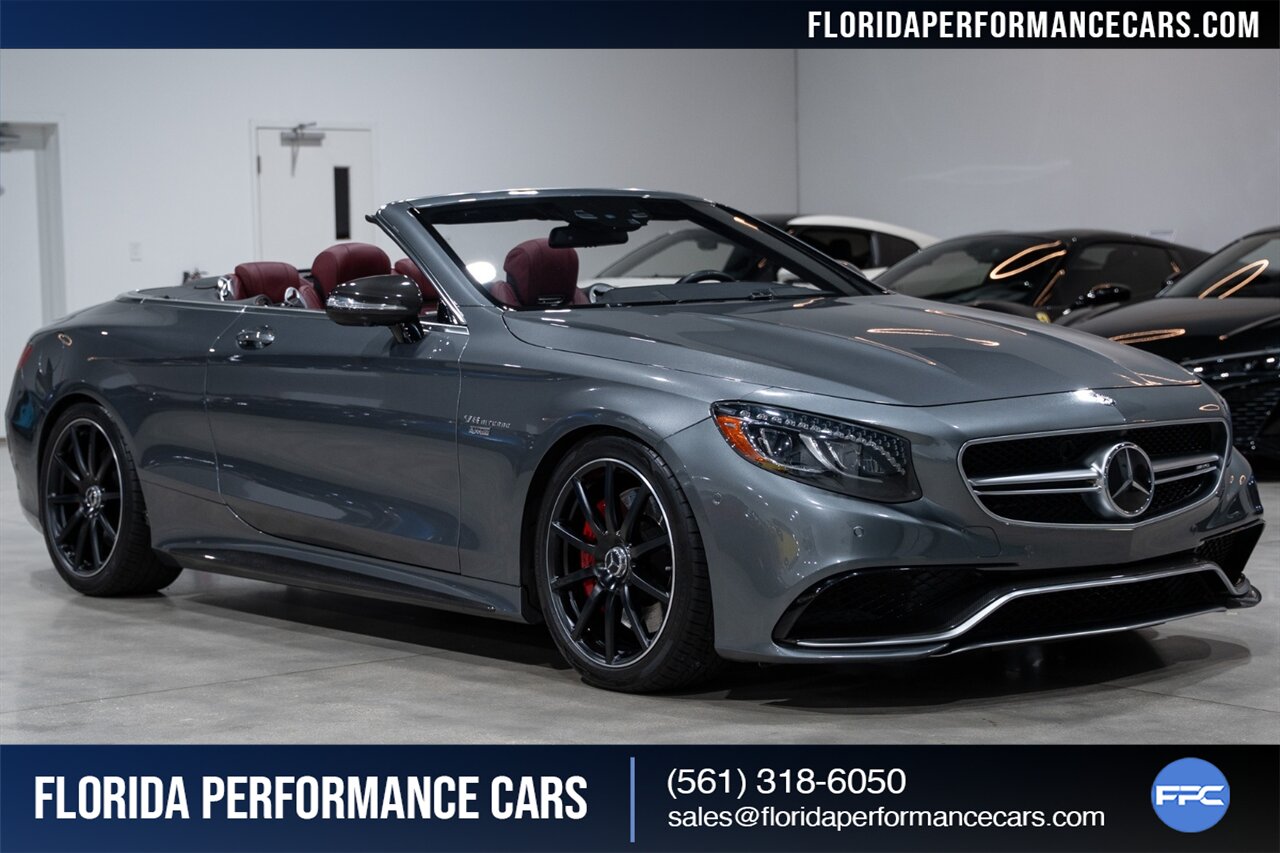 Florida Performance Cars is pleased to announce the arrival of this STUNNING 2017 Mercedes-Benz AMG S 63 finished in Selenite Grey Metallic over 2-Tone Bengal Red & Black interior w/ 40,877 miles. This is a Clean CARFAX, excellent condition and EXCEPTIONALLY well optioned S 63 Convertible.