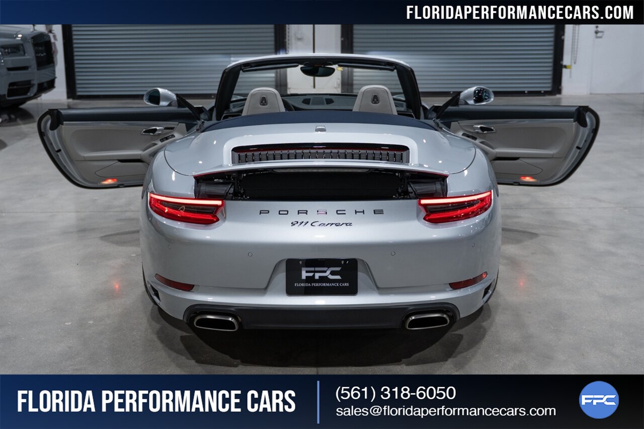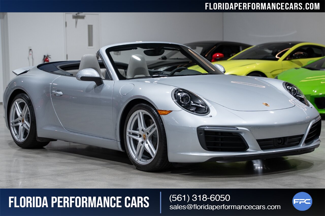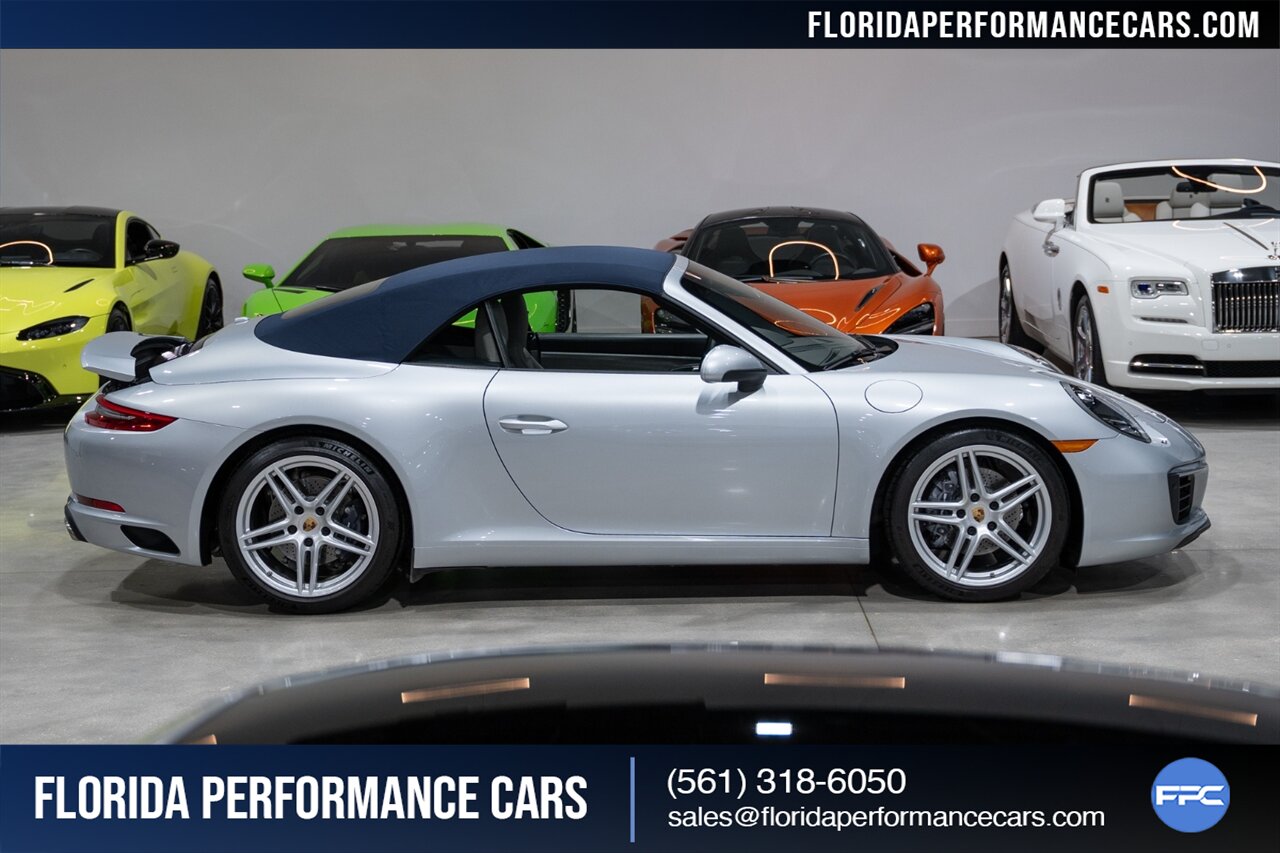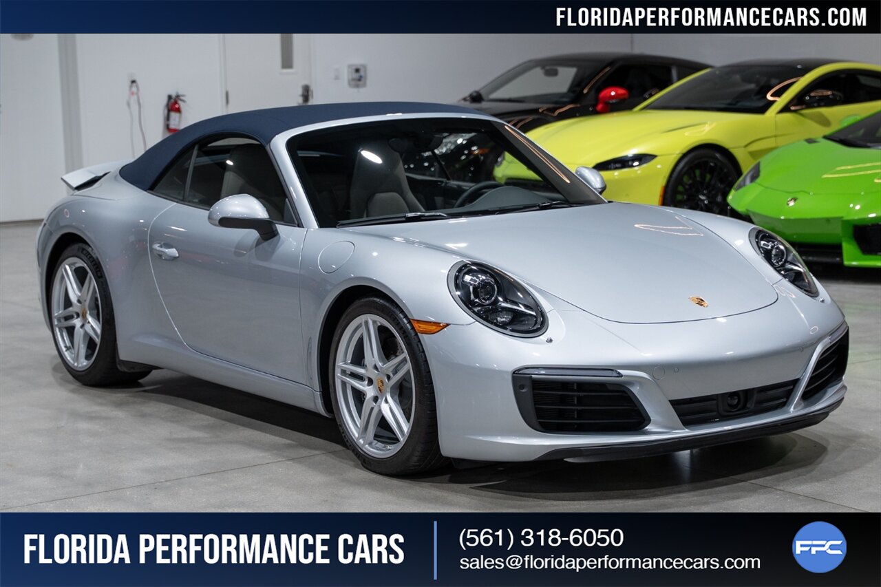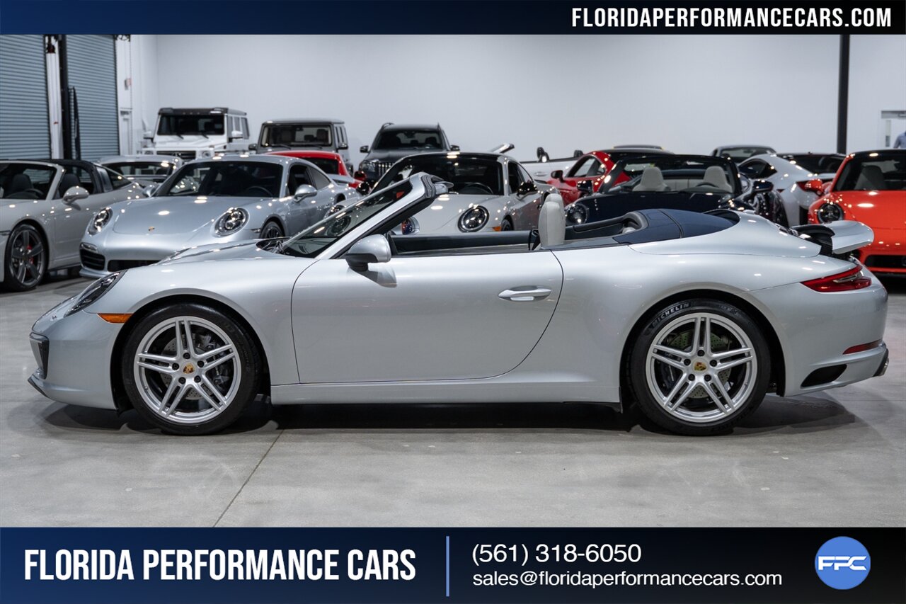 Florida Performance Cars is pleased to announce the arrival of this STUNNING 2017 Porsche 911 Carrera Cabriolet finished in Rhodium Silver Metallic over Two-Tone Leather Interior in Graphite Blue & Chalk w/ ONLY 11,675 miles!