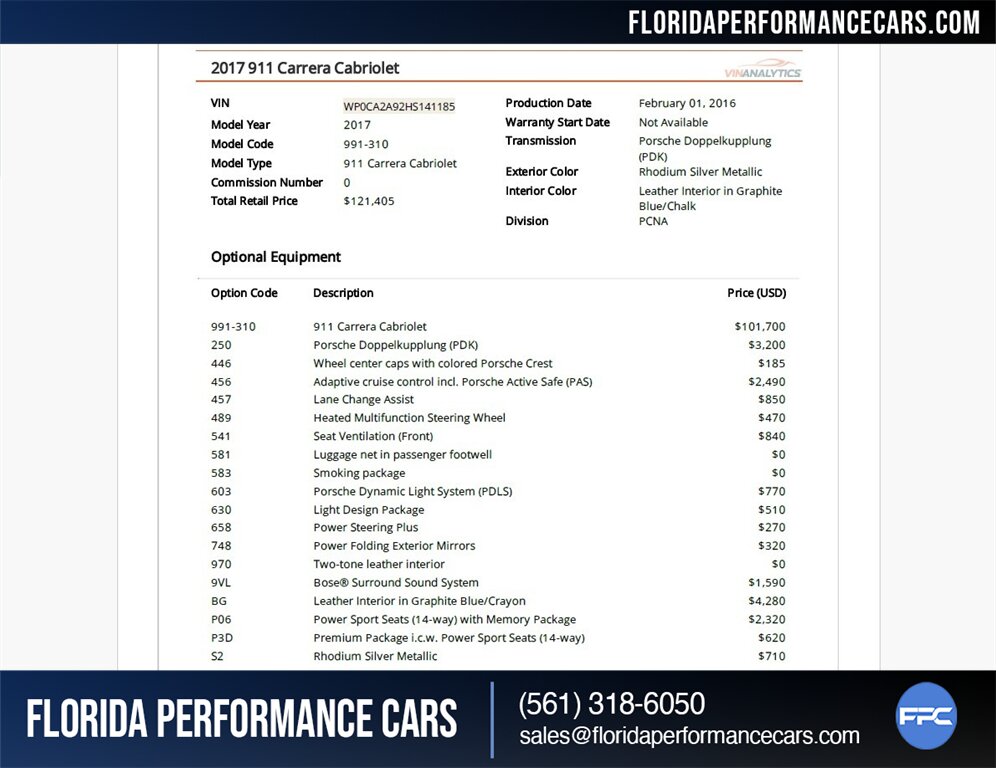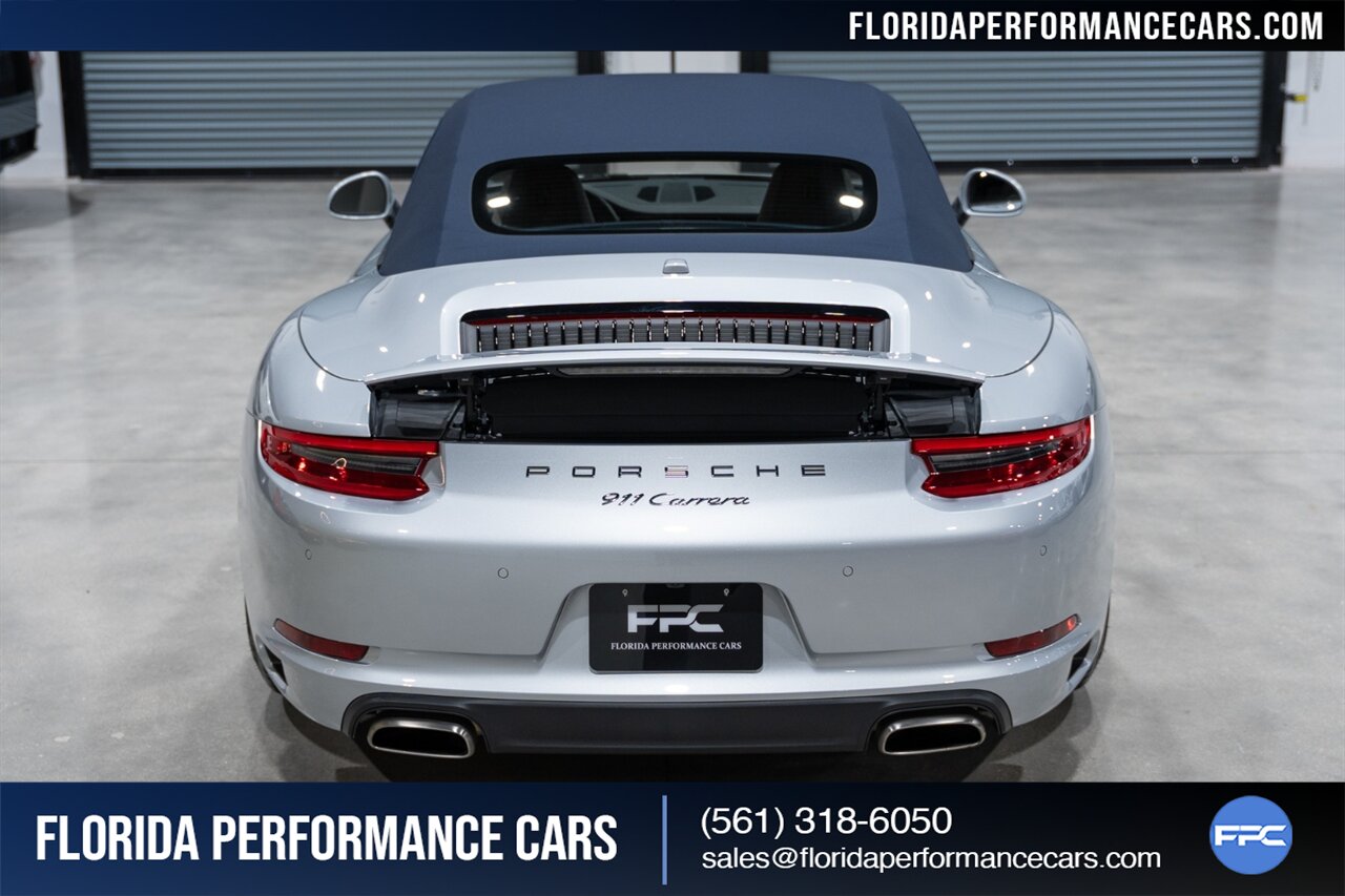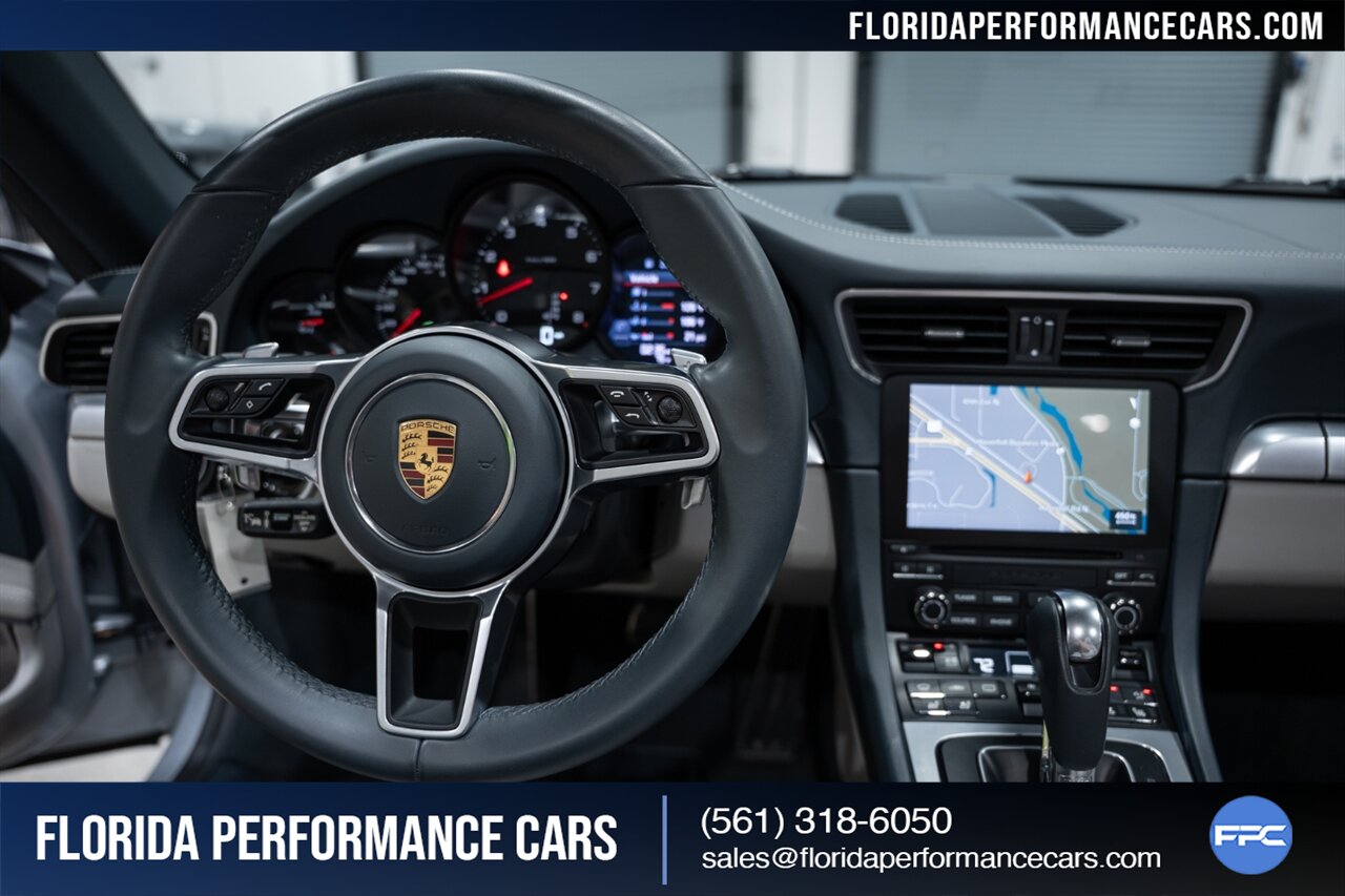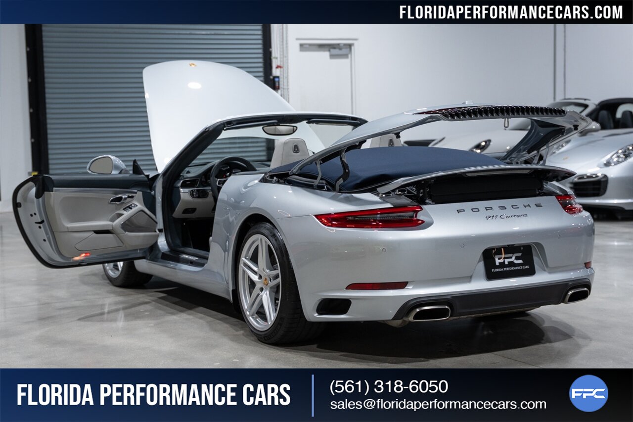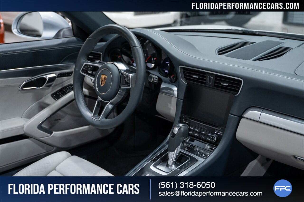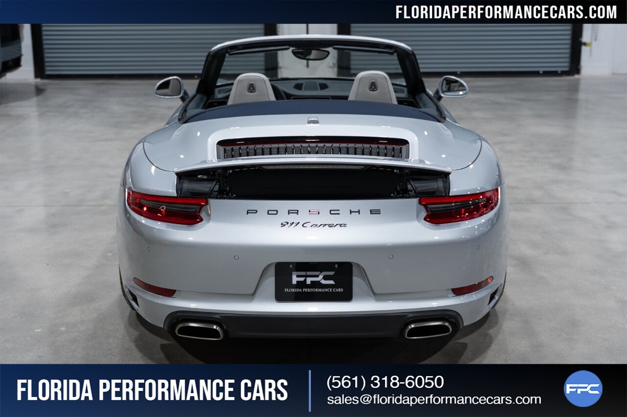 Florida Performance Cars is pleased to announce the arrival of this STUNNING 2017 Porsche 911 Carrera Cabriolet finished in Rhodium Silver Metallic over Two-Tone Leather Interior in Graphite Blue & Chalk w/ ONLY 11,675 miles!