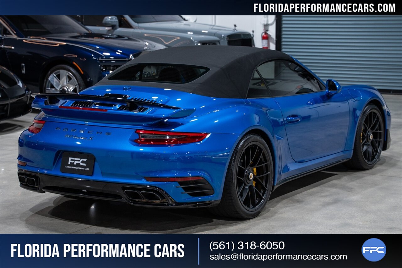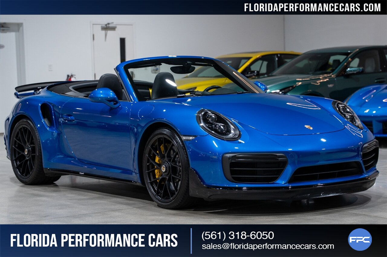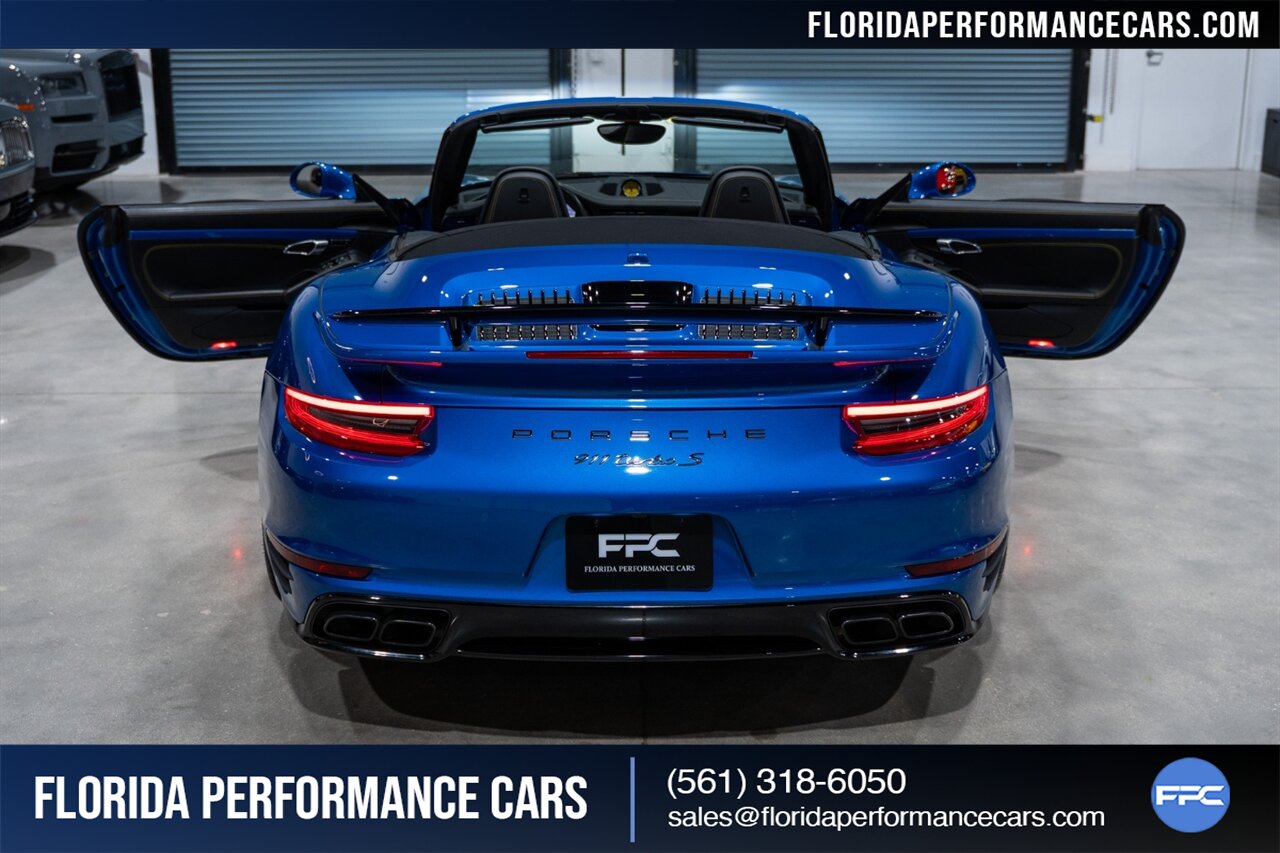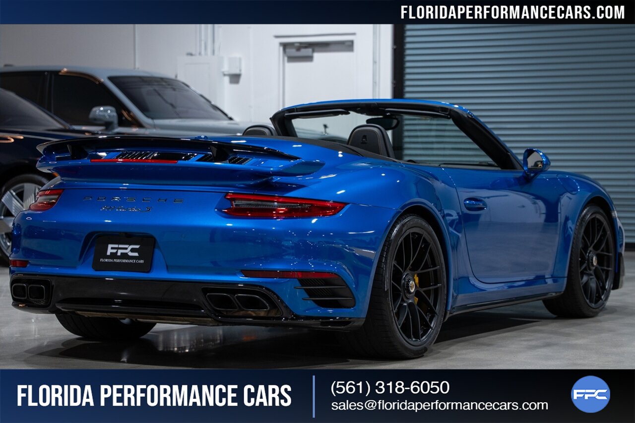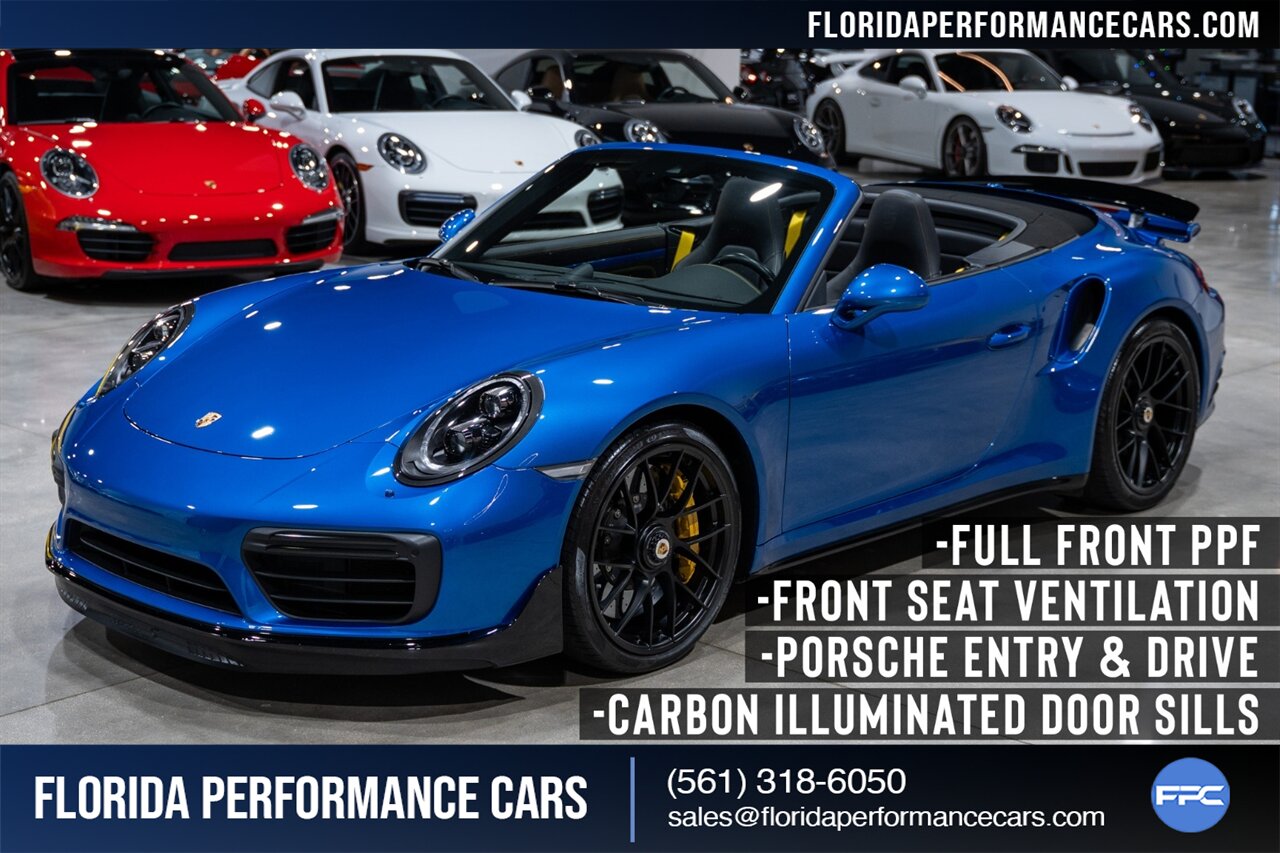 Florida Performance Cars is pleased to announce the arrival of this STUNNING 2017 Porsche 911 Turbo S finished in Sapphire Blue Metallic over Black Leather interior w/ Deviated stitching & Only 27,920 miles. This is a Clean CARFAX, excellent condition and EXCEPTIONALLY well optioned 991.2 Turbo S Cabriolet.