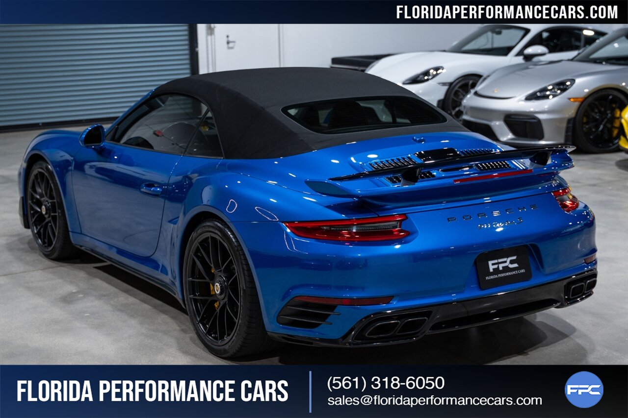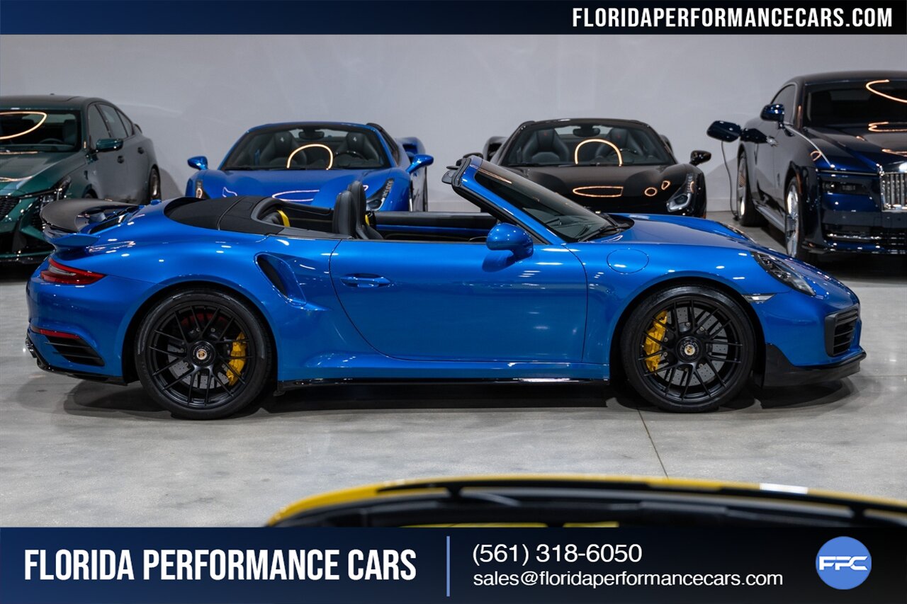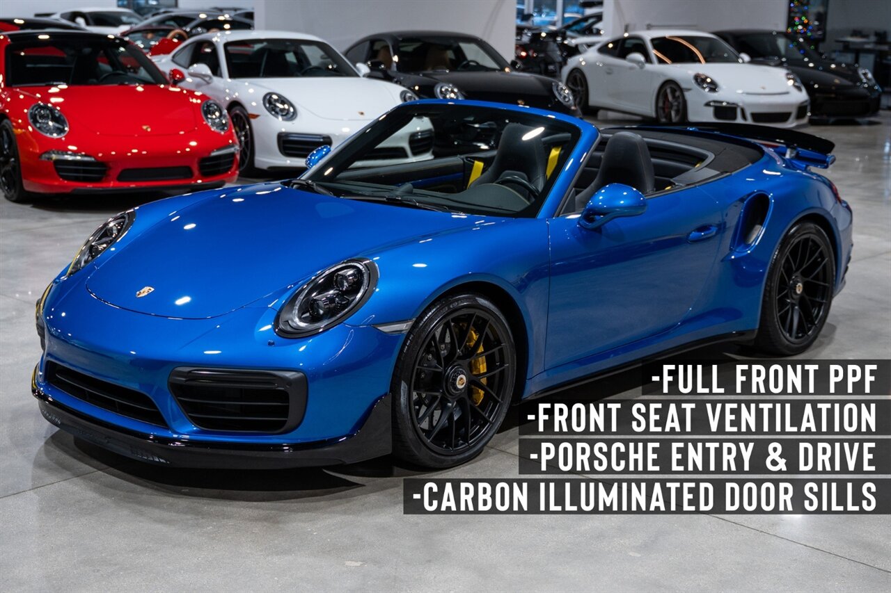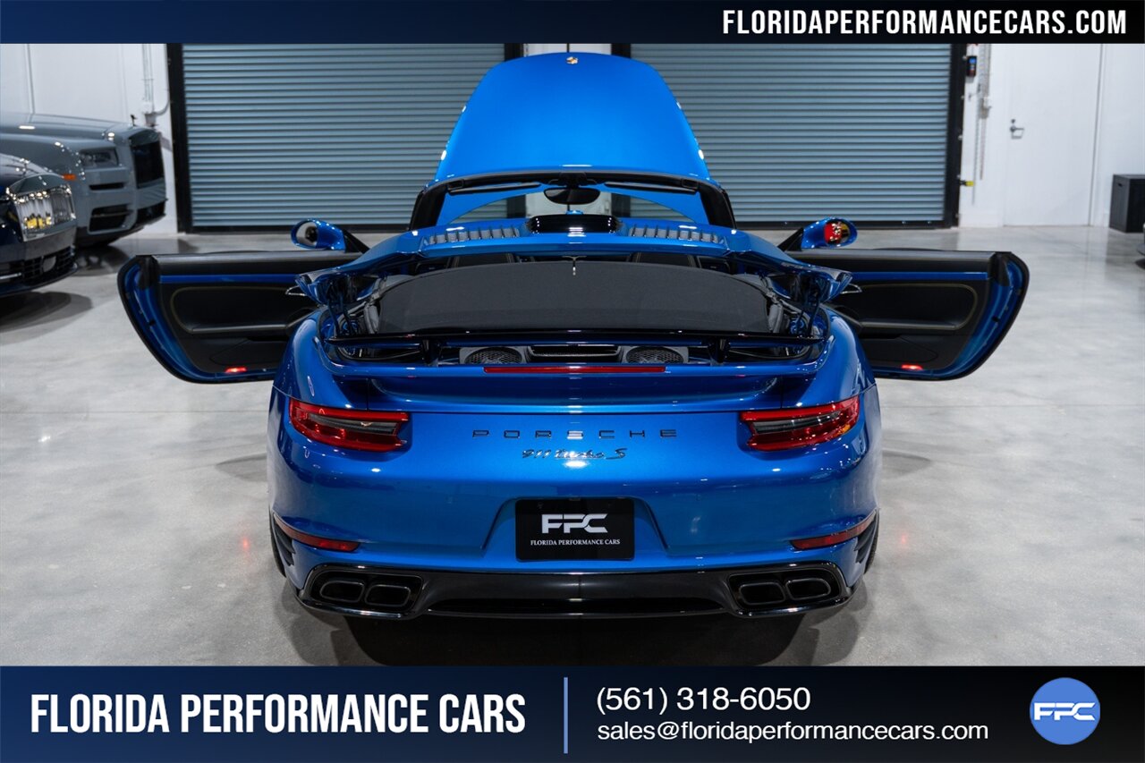 Florida Performance Cars is pleased to announce the arrival of this STUNNING 2017 Porsche 911 Turbo S finished in Sapphire Blue Metallic over Black Leather interior w/ Deviated stitching & Only 27,920 miles. This is a Clean CARFAX, excellent condition and EXCEPTIONALLY well optioned 991.2 Turbo S Cabriolet.