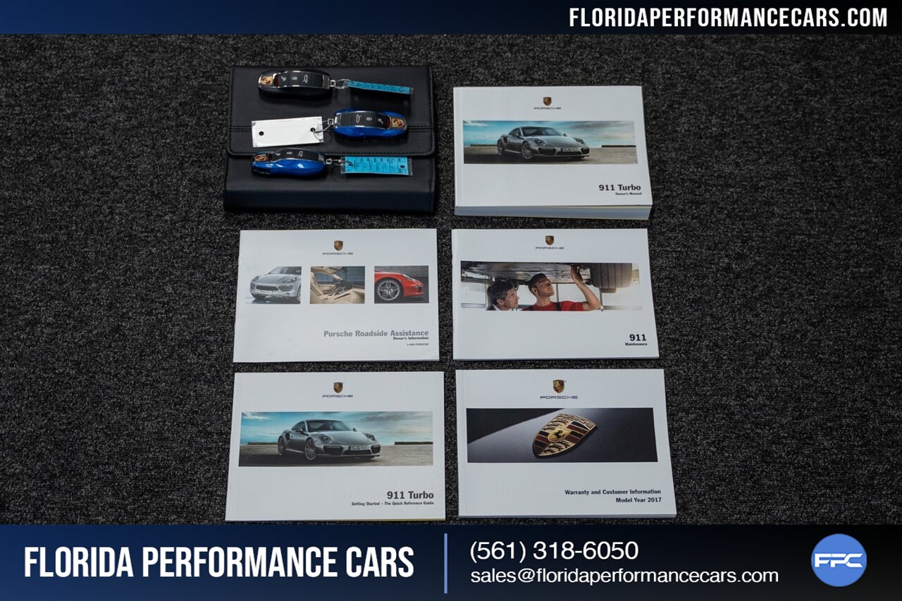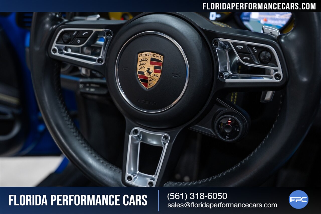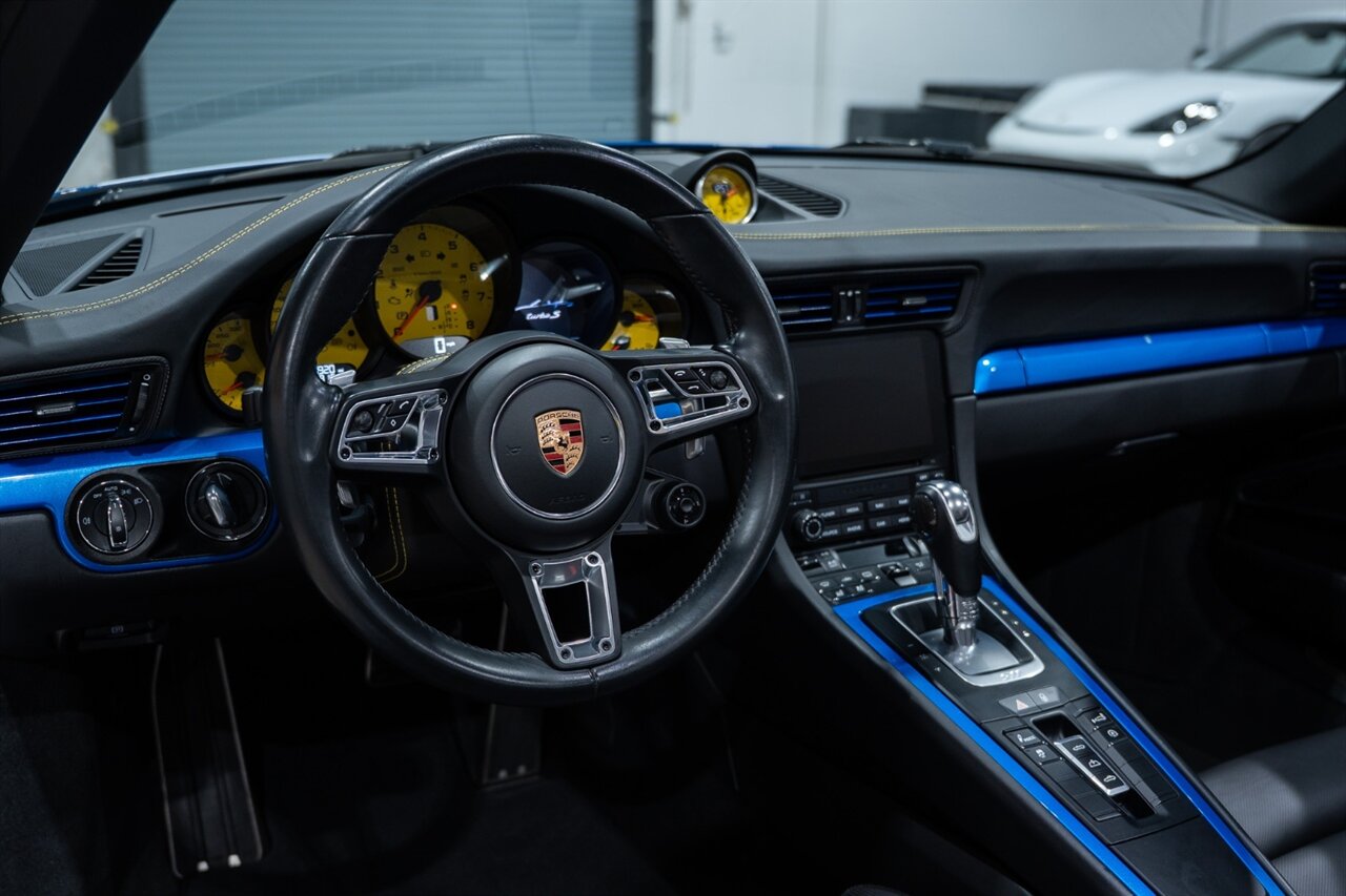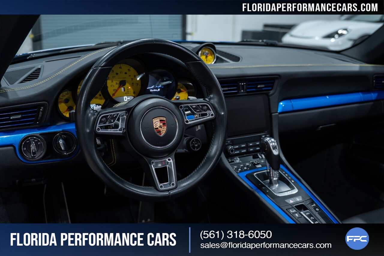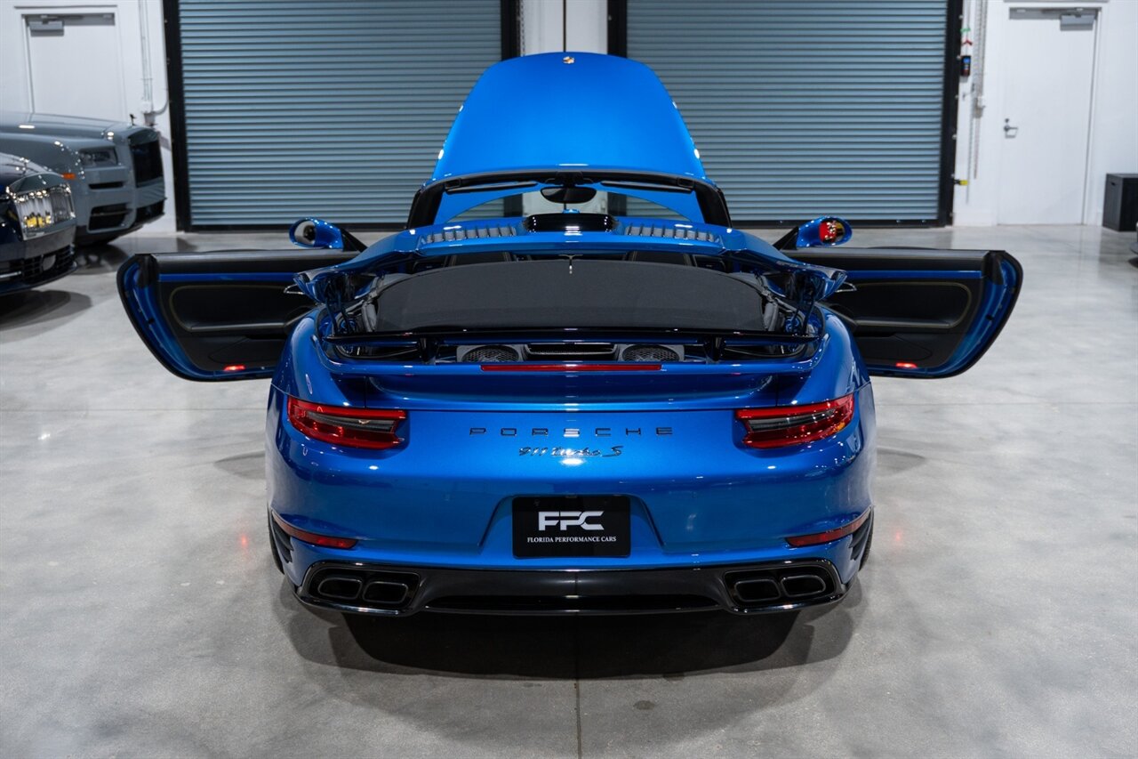 Florida Performance Cars is pleased to announce the arrival of this STUNNING 2017 Porsche 911 Turbo S finished in Sapphire Blue Metallic over Black Leather interior w/ Deviated stitching & Only 27,920 miles. This is a Clean CARFAX, excellent condition and EXCEPTIONALLY well optioned 991.2 Turbo S Cabriolet.