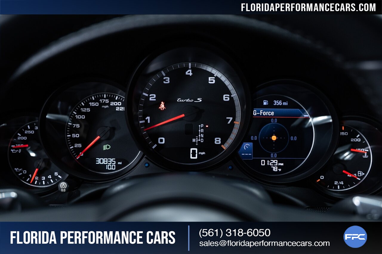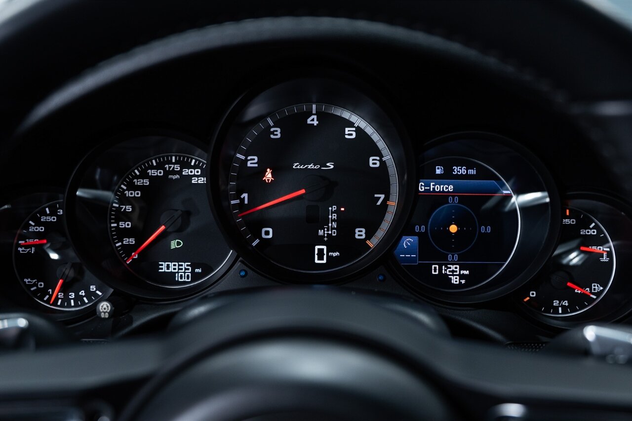 This Turbo S features; Porsche Ceramic Composite Brakes (PCCB), Porsche Dynamic Chassis Control (PDCC) with active anti-roll bars, Active Aerodynamics, Sport Chrono Package, Rear-Axle Steering, Full leather interior, 18-way Adaptive Sport Seats Plus, LED Headlights with PDLS+, infotainment with Apple CarPlay, BOSE Surround Sound System, Porsche Entry & Drive, Electric Slide/Tilt Sunroof in Glass and Seat Heating & Ventilation (Front).