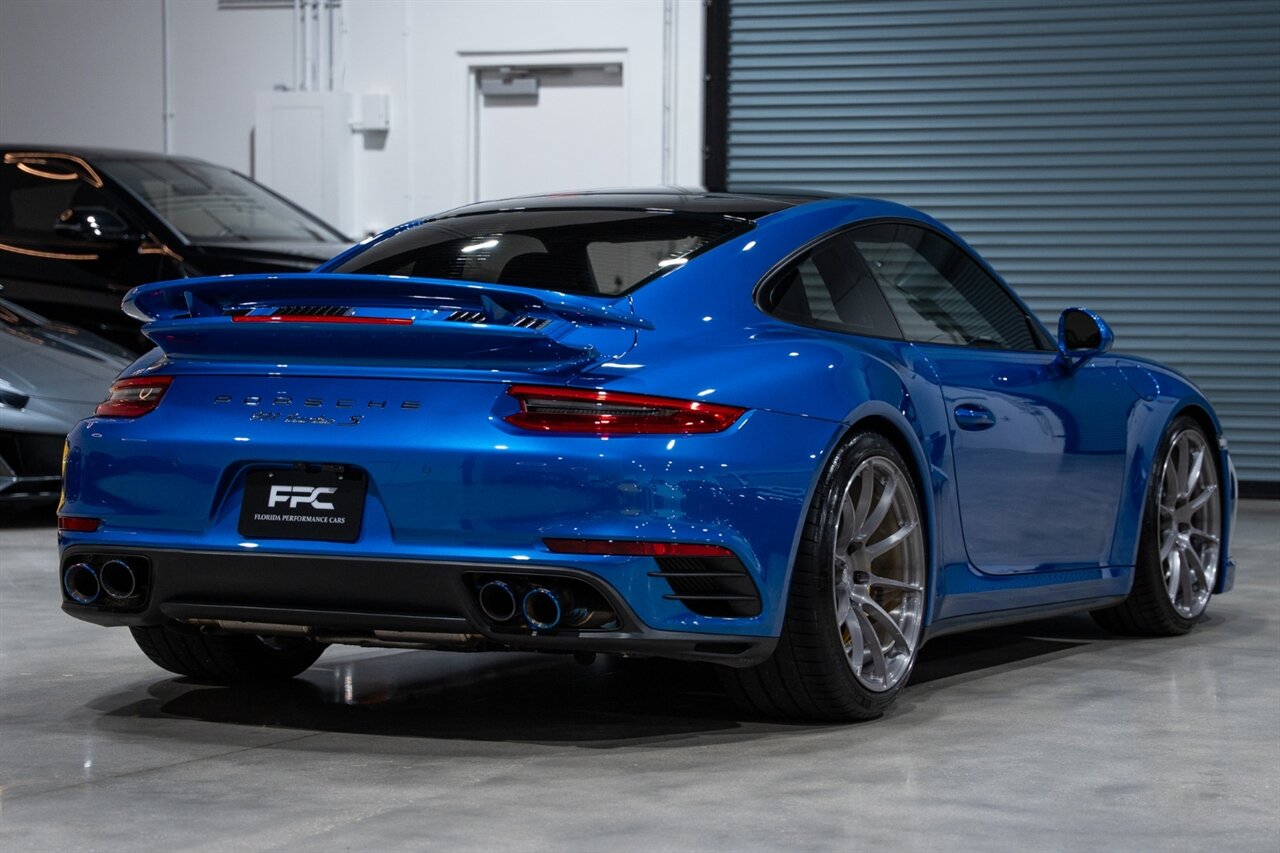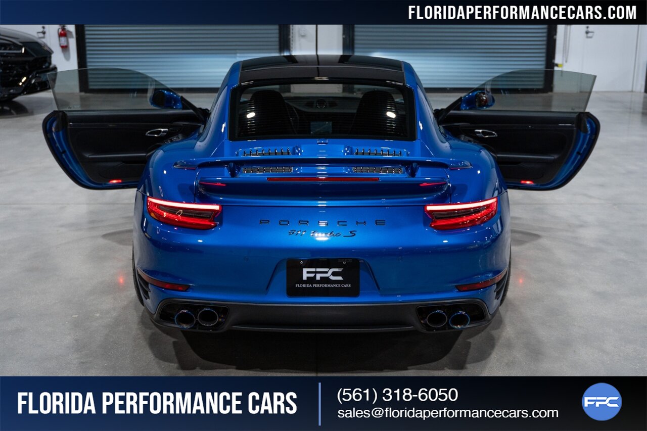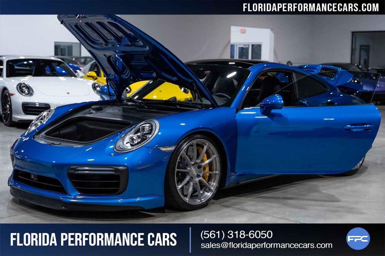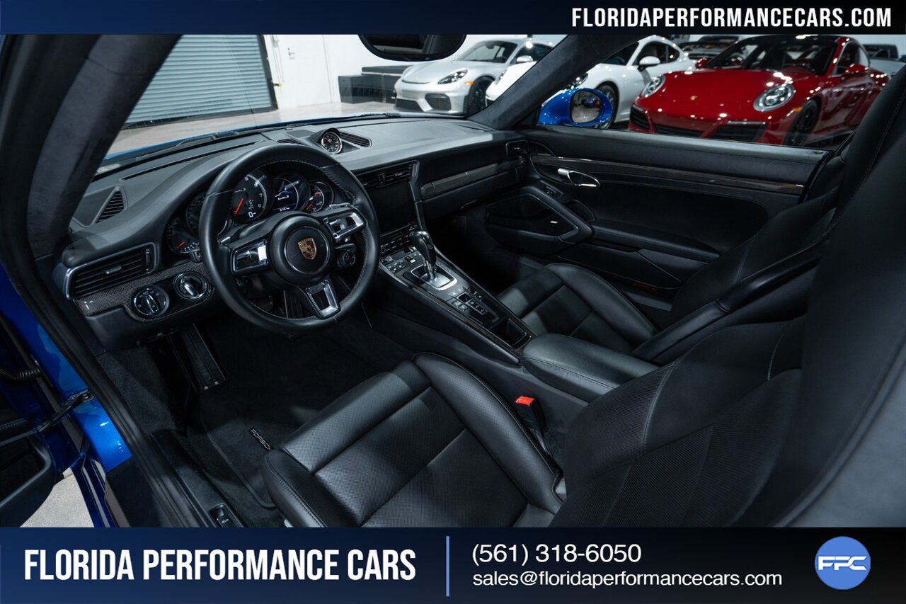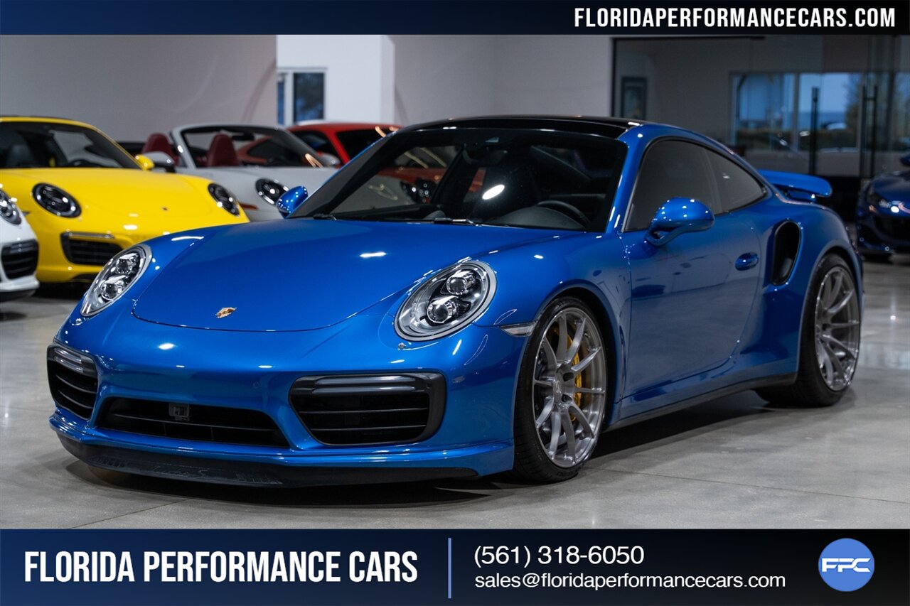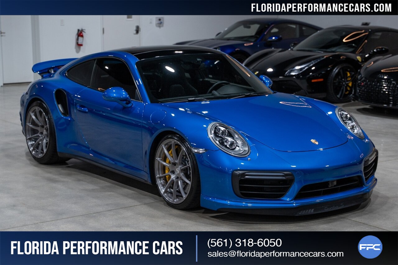 Florida Performance Cars is pleased to announce the arrival of this STUNNING 2017 Porsche 911 Turbo S finished in Sapphire Blue Metallic over Leather Interior in Black w/ Only 30,835 miles. This is a Clean CARFAX, excellent condition and exceptionally well appointed 991.2 Turbo S Coupe.