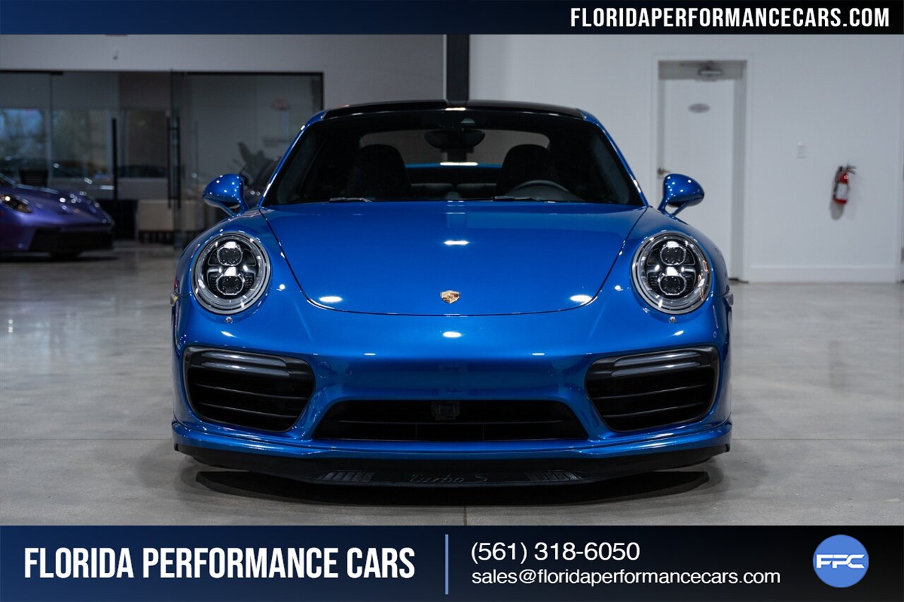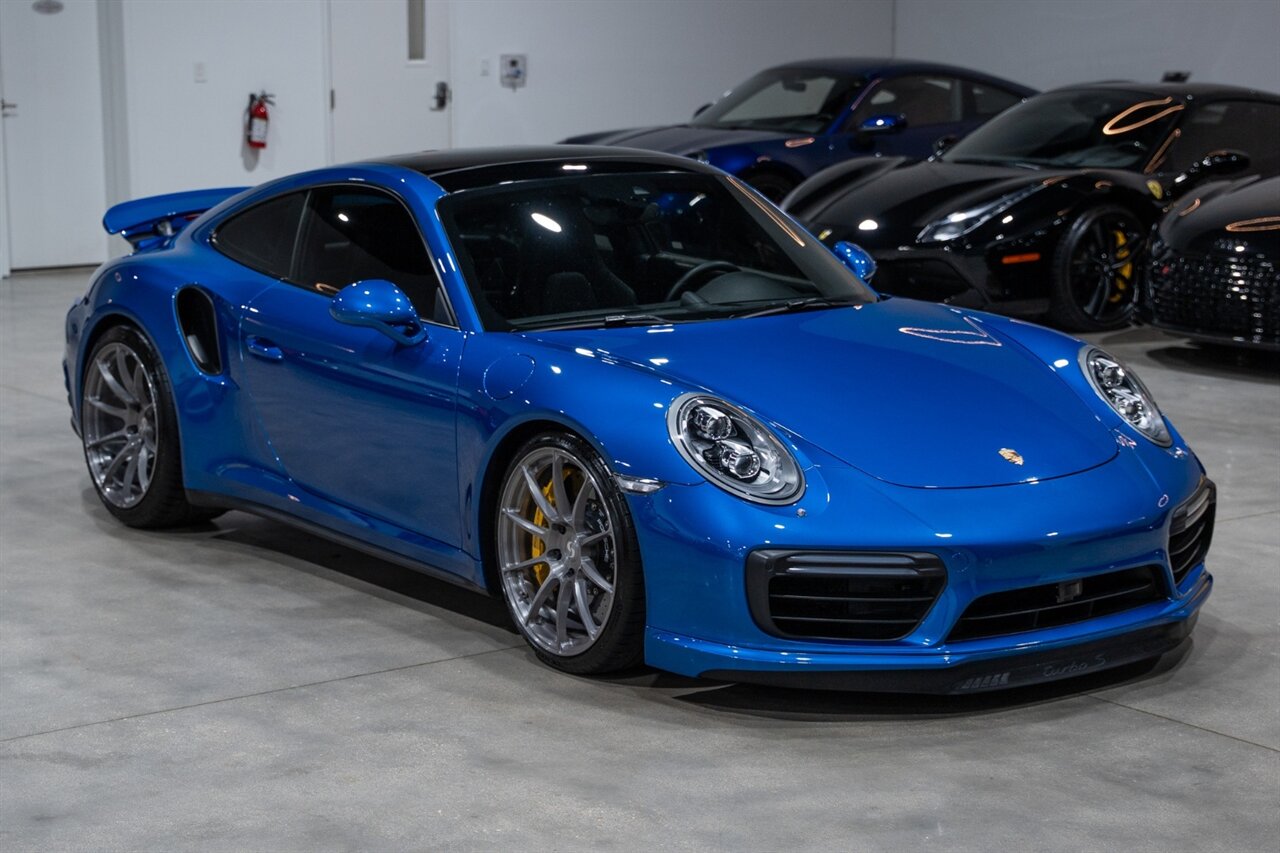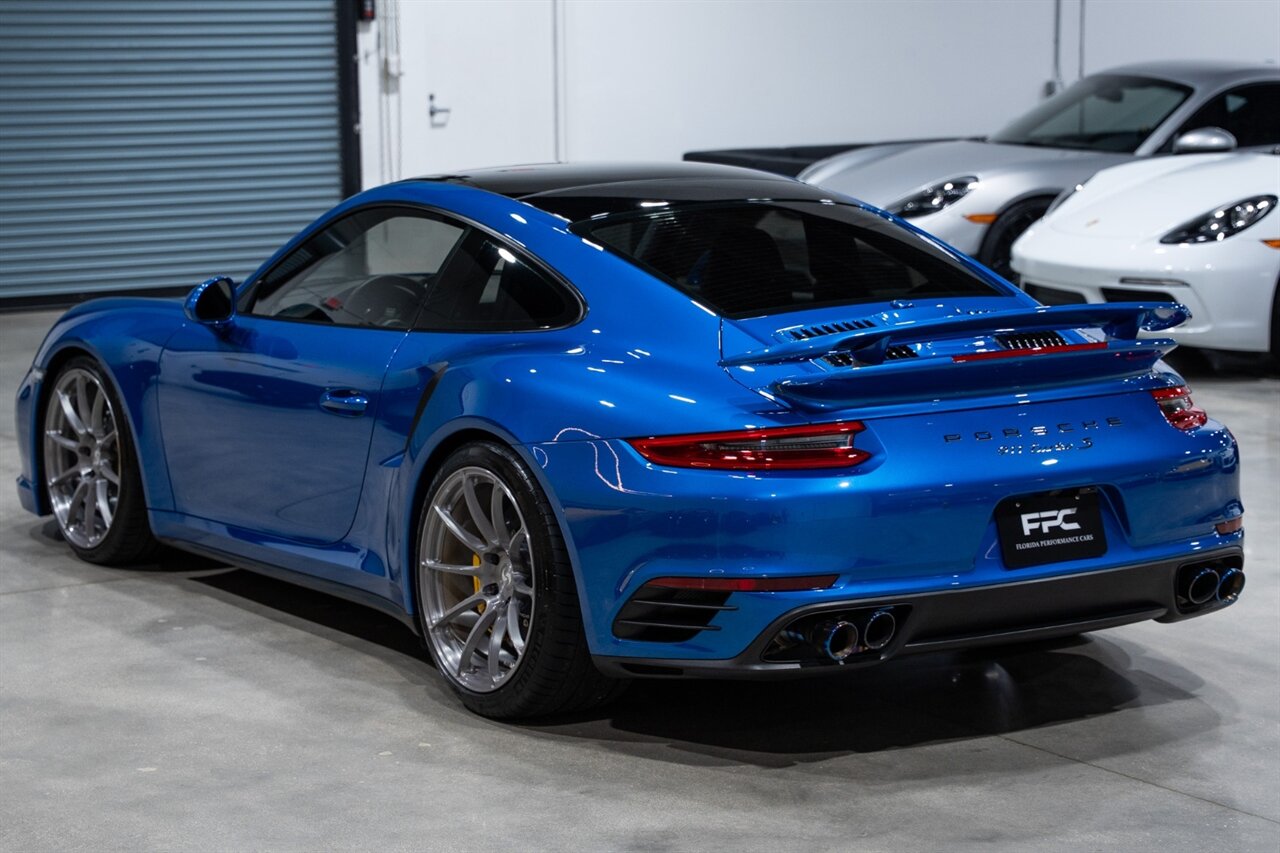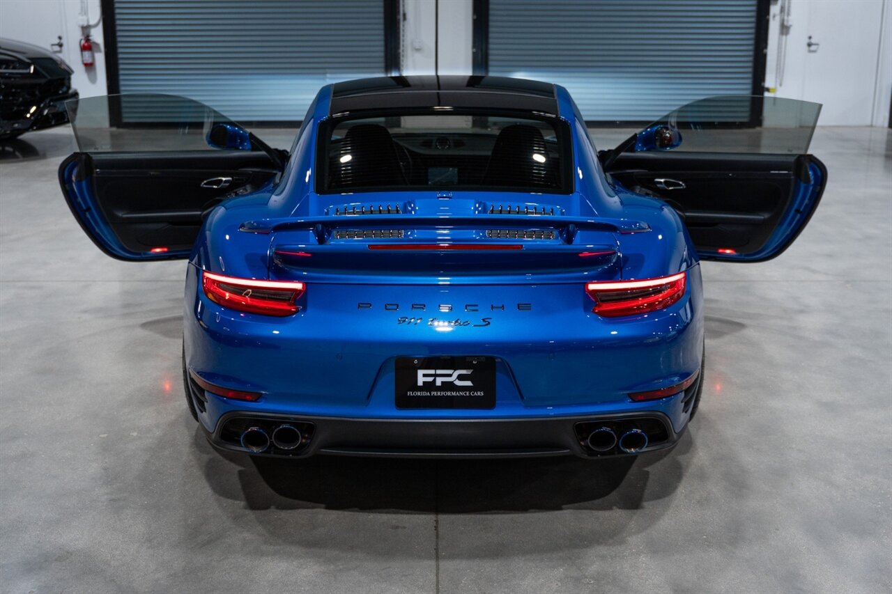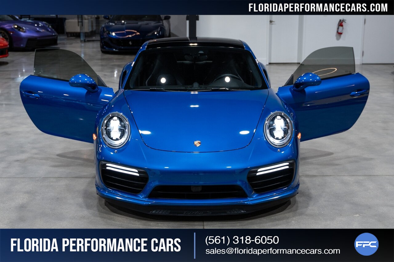 Florida Performance Cars is pleased to announce the arrival of this STUNNING 2017 Porsche 911 Turbo S finished in Sapphire Blue Metallic over Leather Interior in Black w/ Only 30,835 miles. This is a Clean CARFAX, excellent condition and exceptionally well appointed 991.2 Turbo S Coupe.
