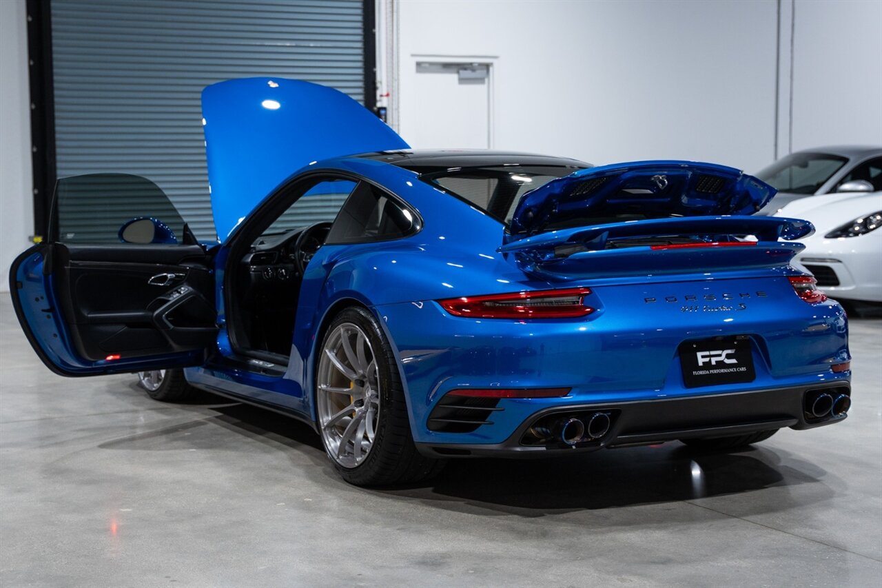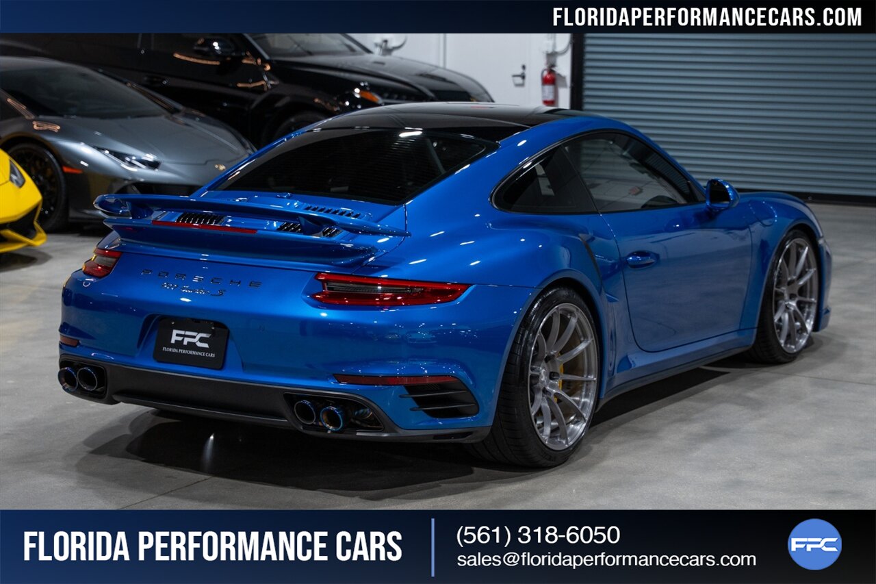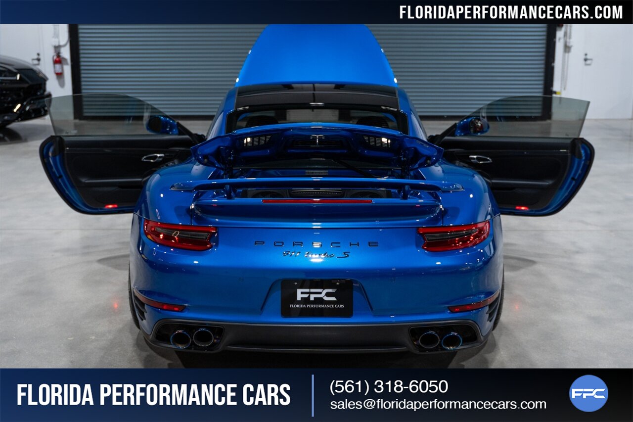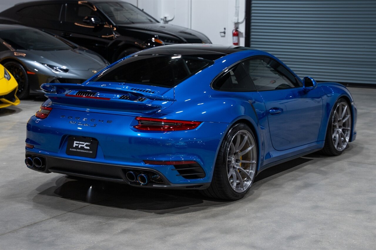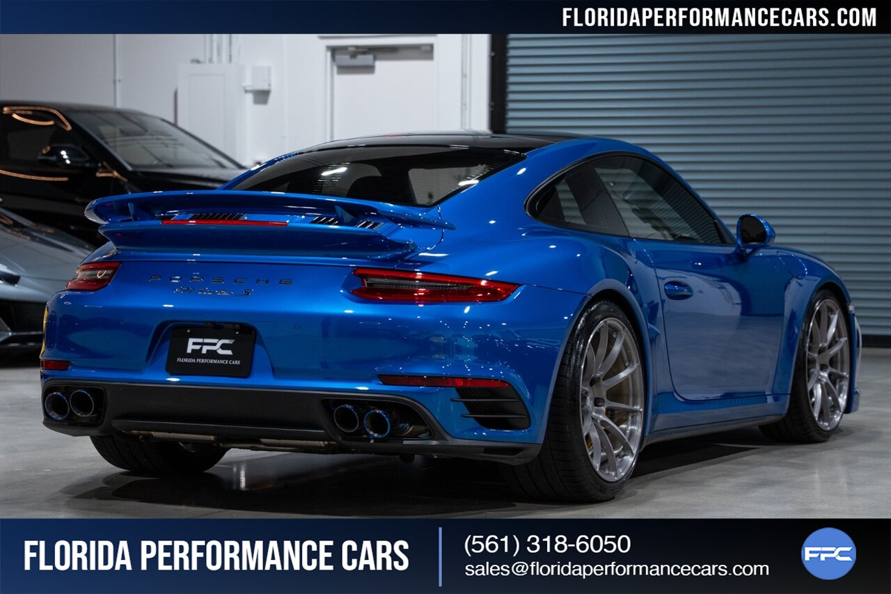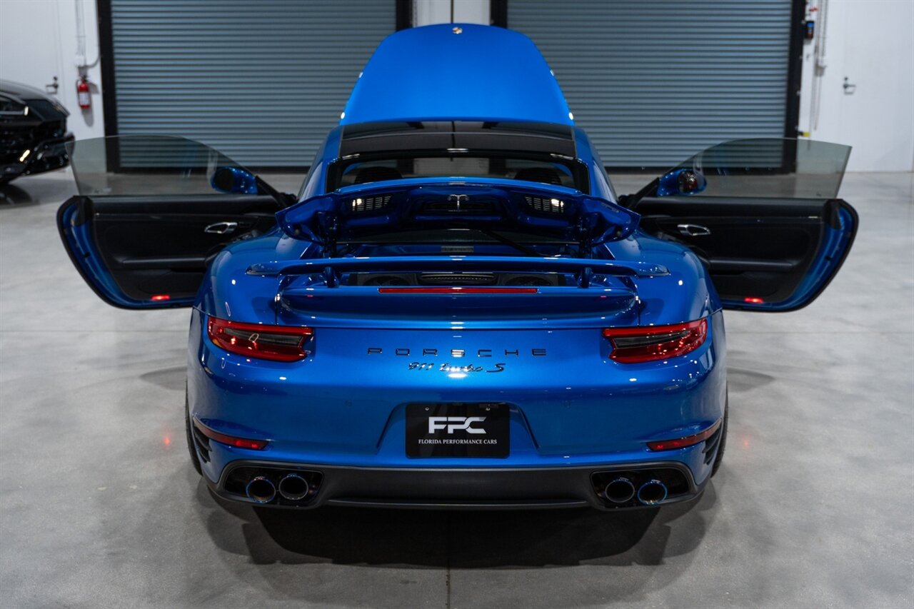 Florida Performance Cars is pleased to announce the arrival of this STUNNING 2017 Porsche 911 Turbo S finished in Sapphire Blue Metallic over Leather Interior in Black w/ Only 30,835 miles. This is a Clean CARFAX, excellent condition and exceptionally well appointed 991.2 Turbo S Coupe.