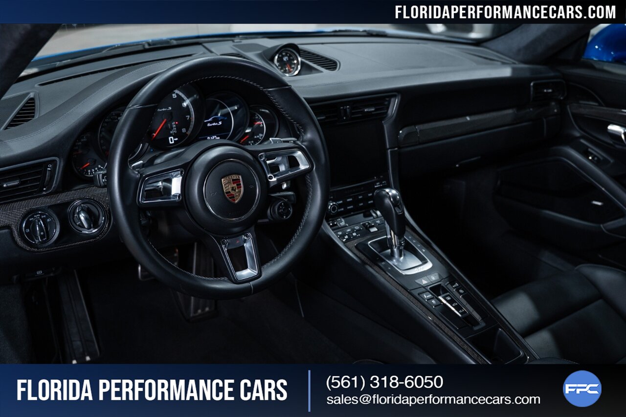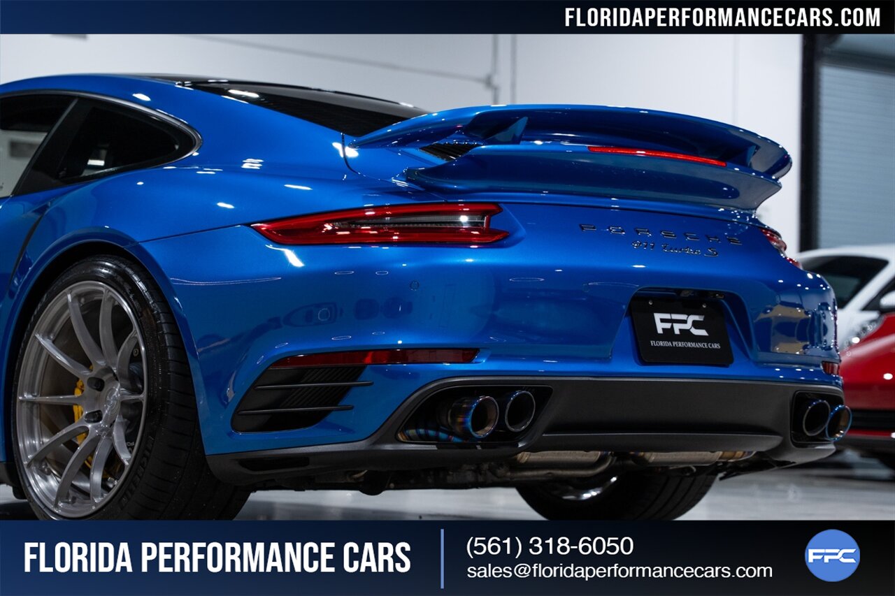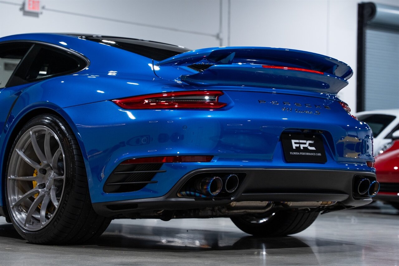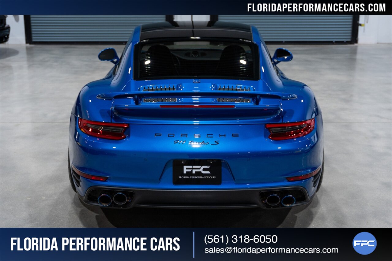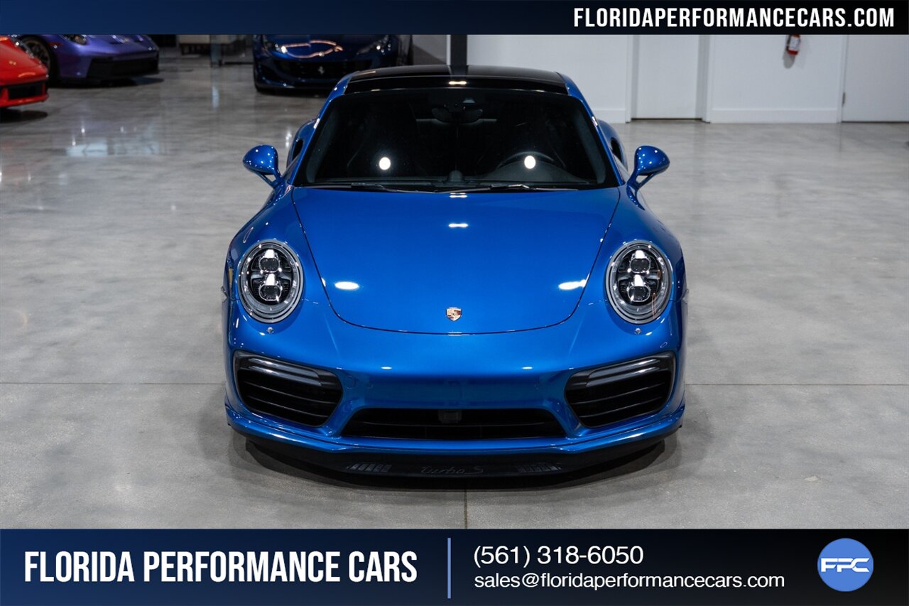 Florida Performance Cars is pleased to announce the arrival of this STUNNING 2017 Porsche 911 Turbo S finished in Sapphire Blue Metallic over Leather Interior in Black w/ Only 30,835 miles. This is a Clean CARFAX, excellent condition and exceptionally well appointed 991.2 Turbo S Coupe.
