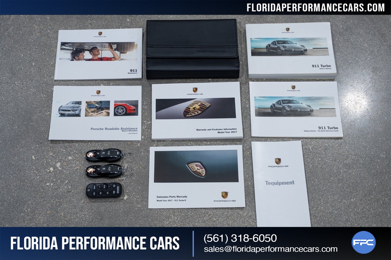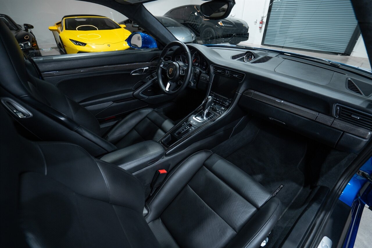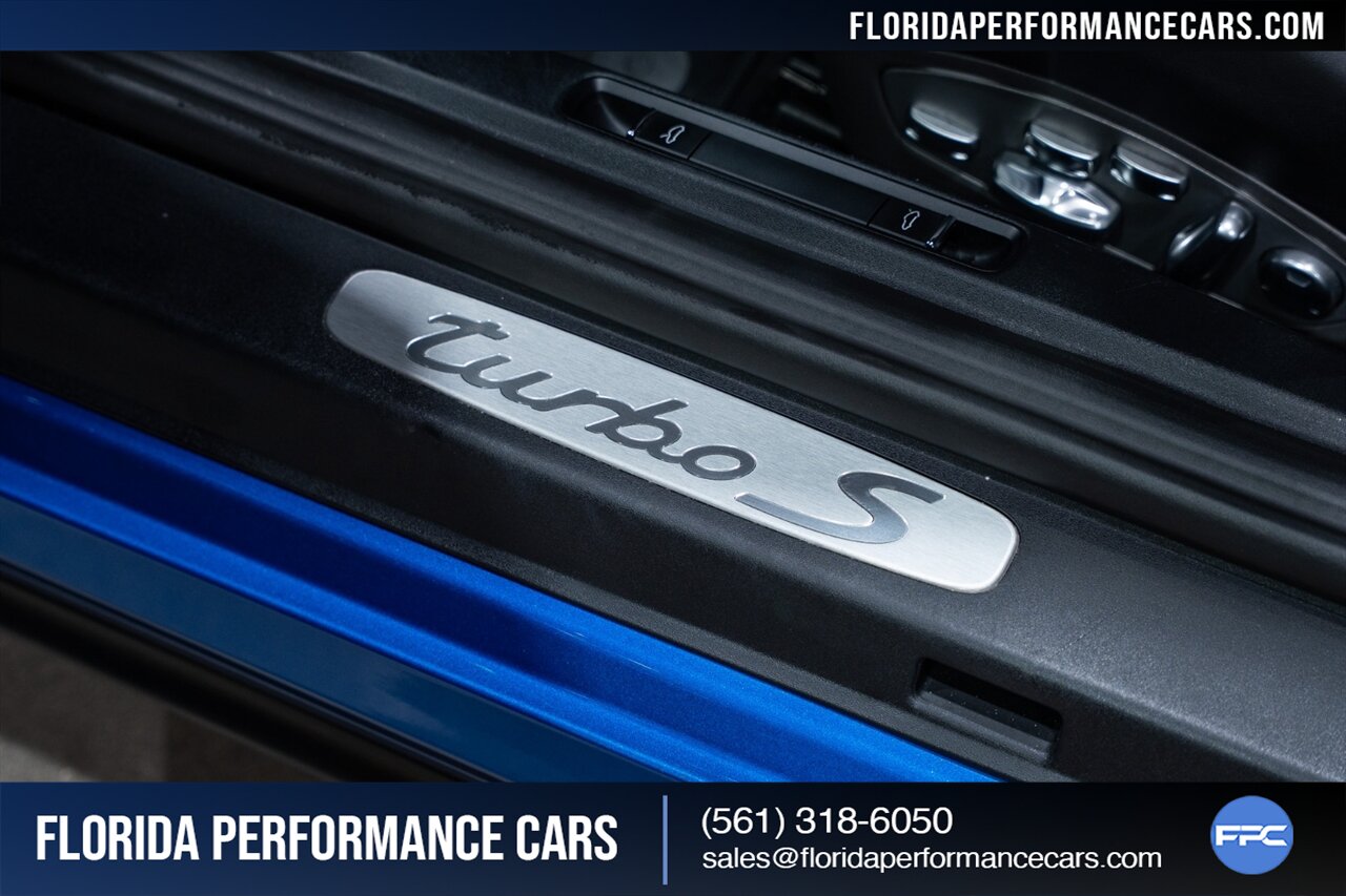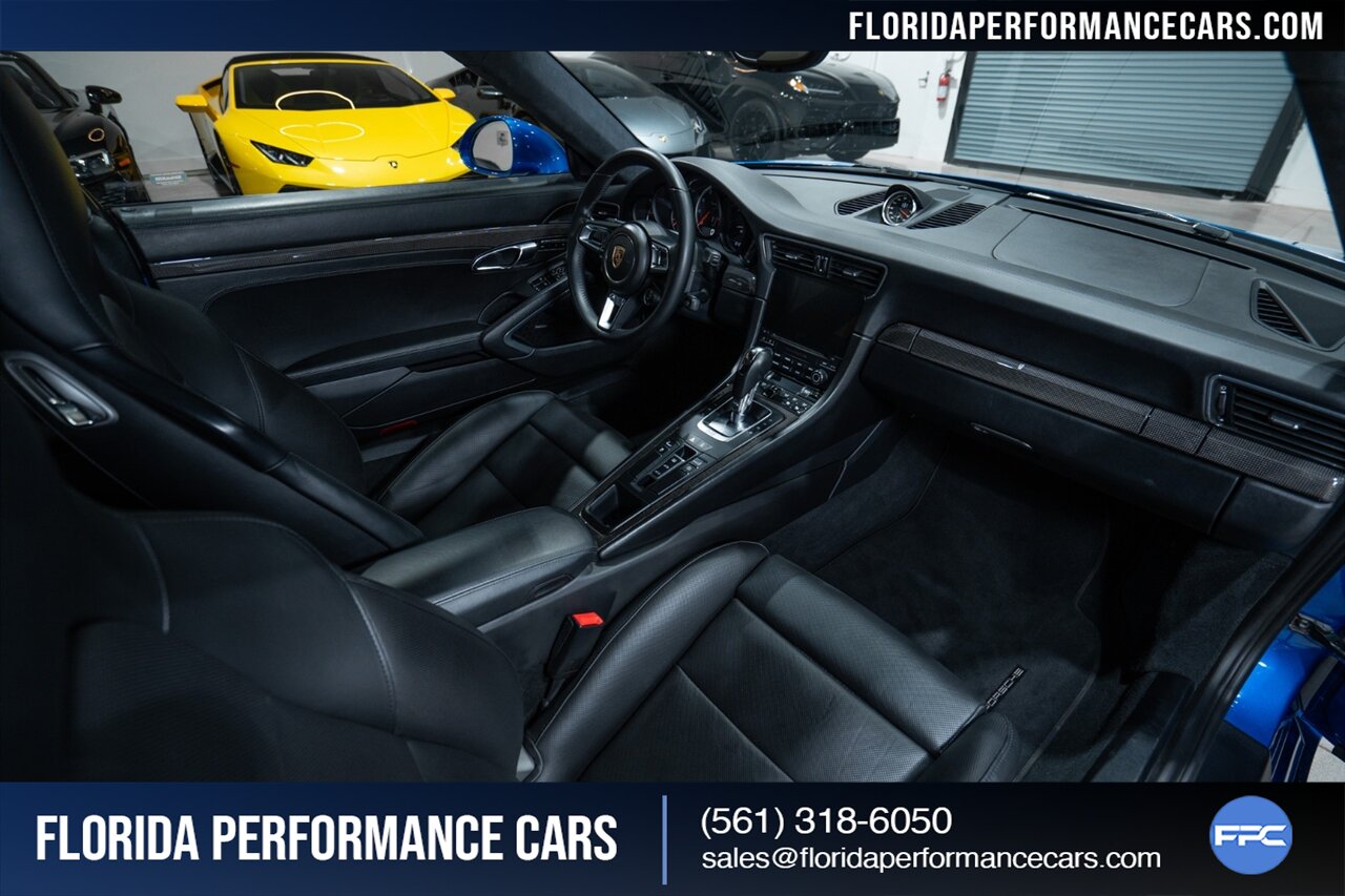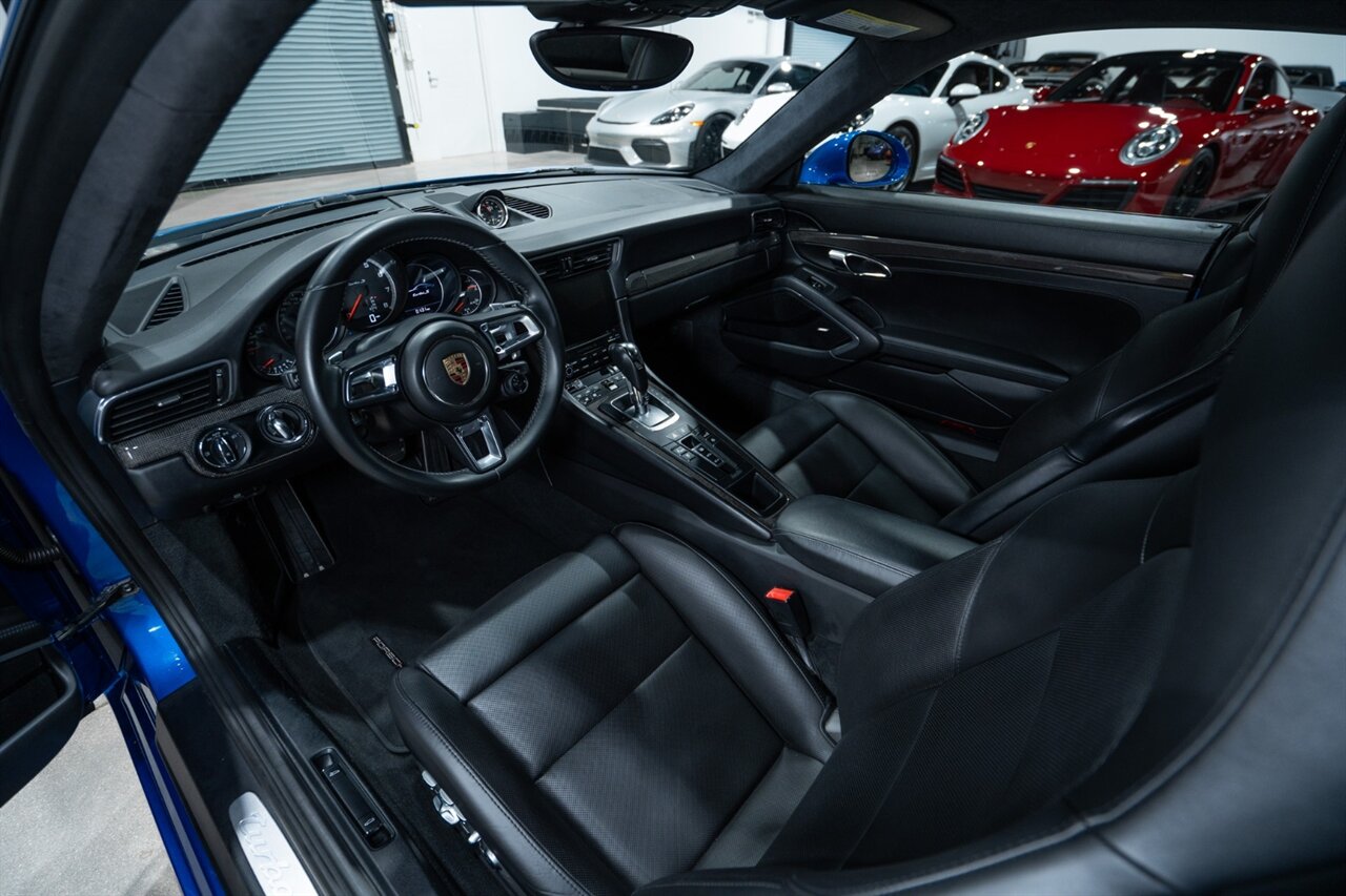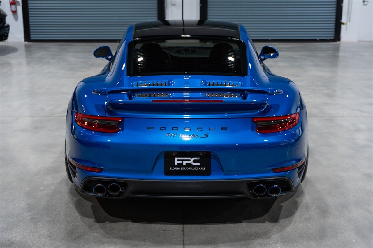 Florida Performance Cars is pleased to announce the arrival of this STUNNING 2017 Porsche 911 Turbo S finished in Sapphire Blue Metallic over Leather Interior in Black w/ Only 30,835 miles. This is a Clean CARFAX, excellent condition and exceptionally well appointed 991.2 Turbo S Coupe.
