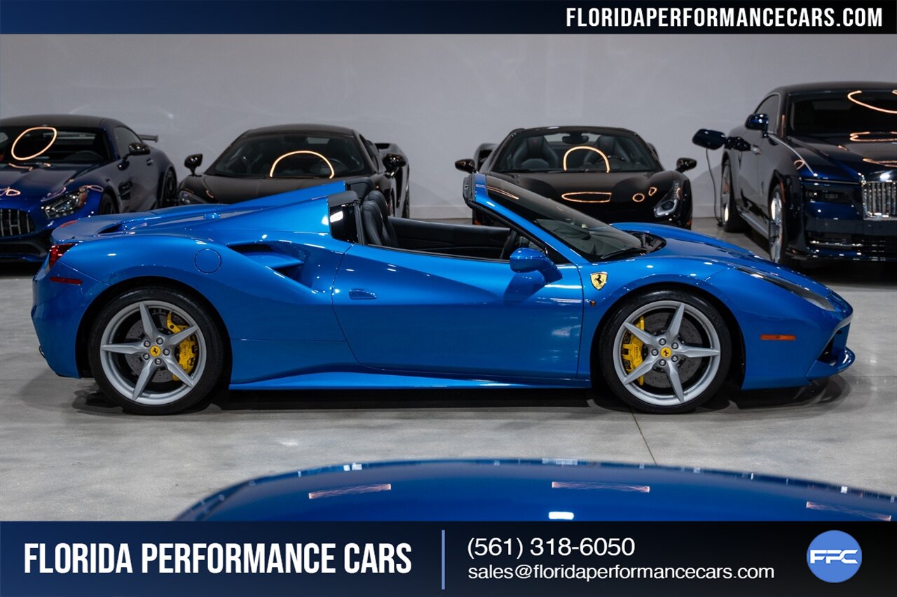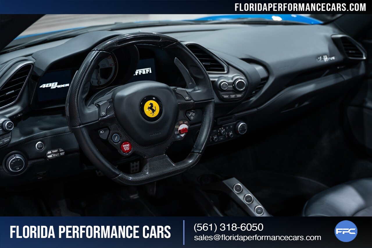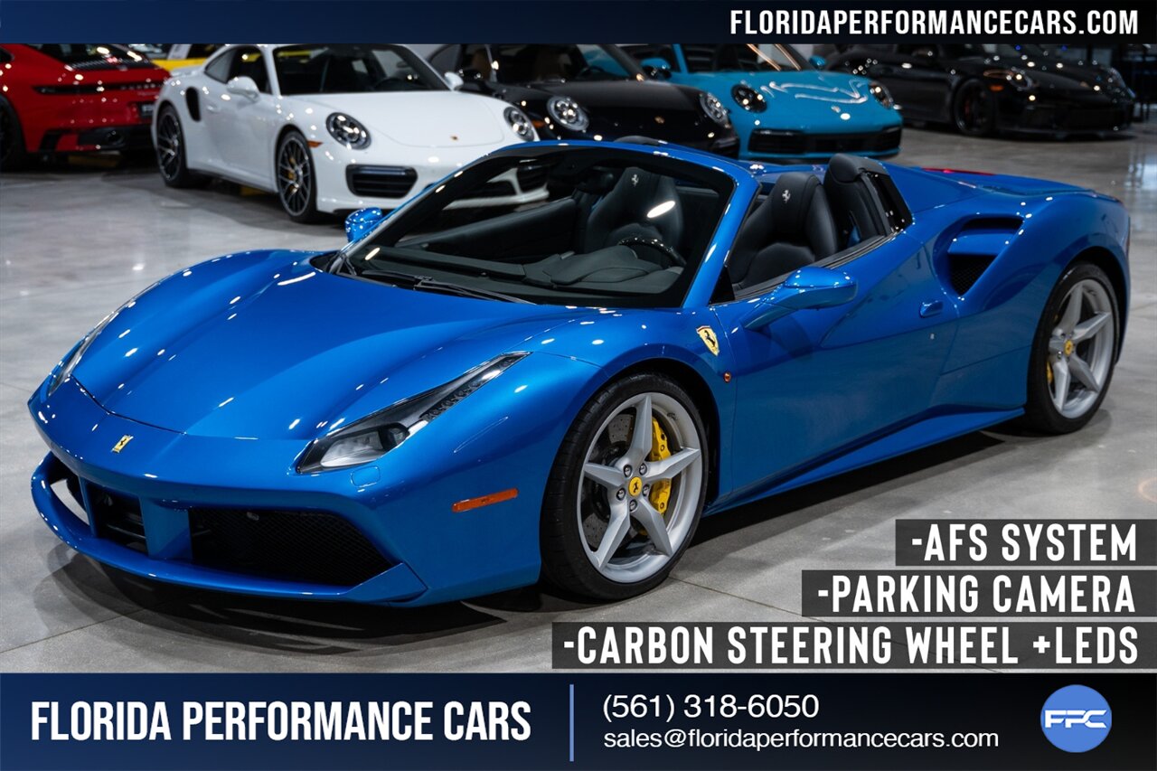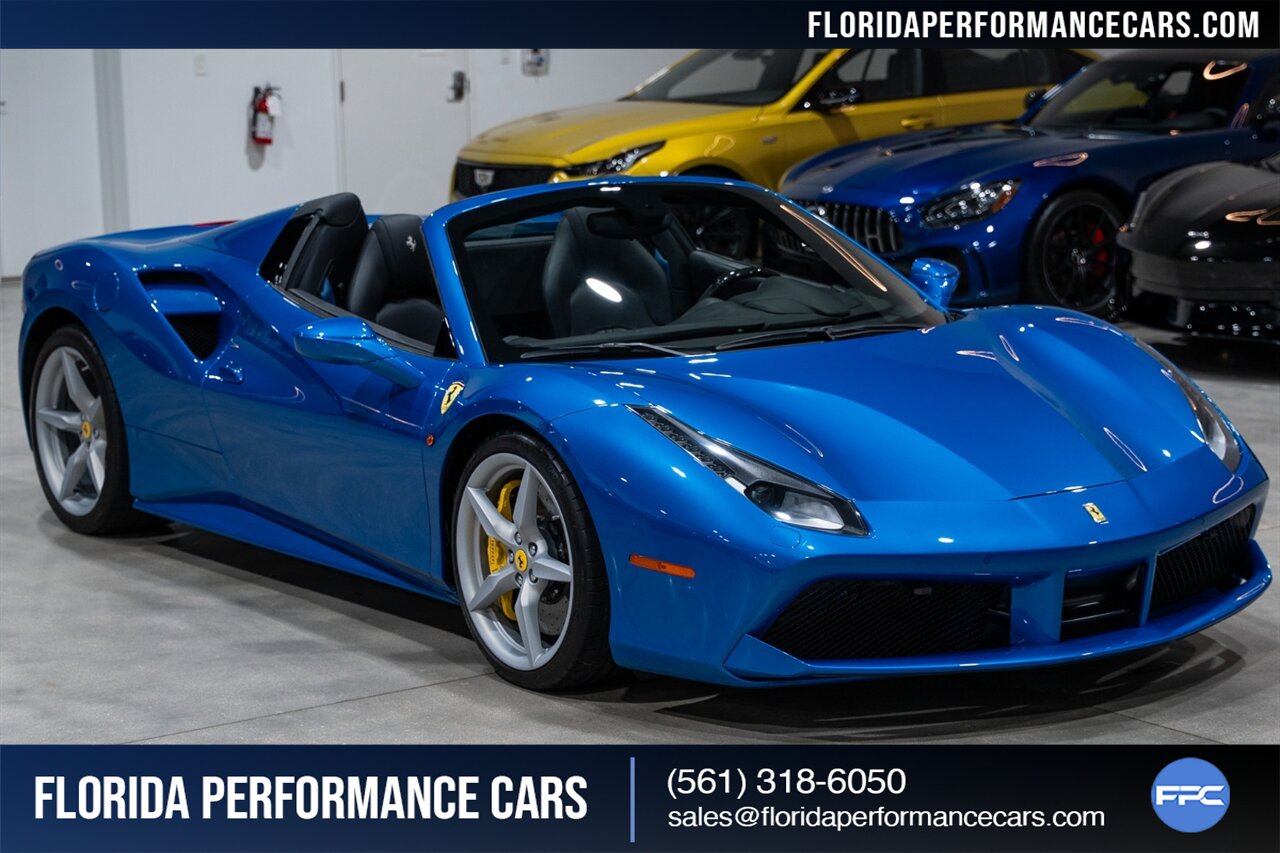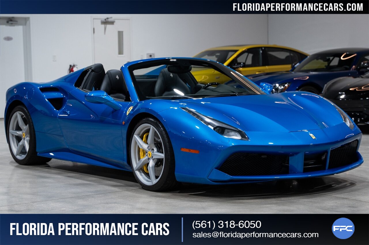 Florida Performance Cars is pleased to announce the arrival of this STUNNING 2018 Ferrari 488 Spider finished in Extra-Range BLU CORSA over Nero interior w/ Daytona Style Seats & Only 21,408 miles. This is a Clean CARFAX, excellent condition and exceptionally well optioned 488 Spider.