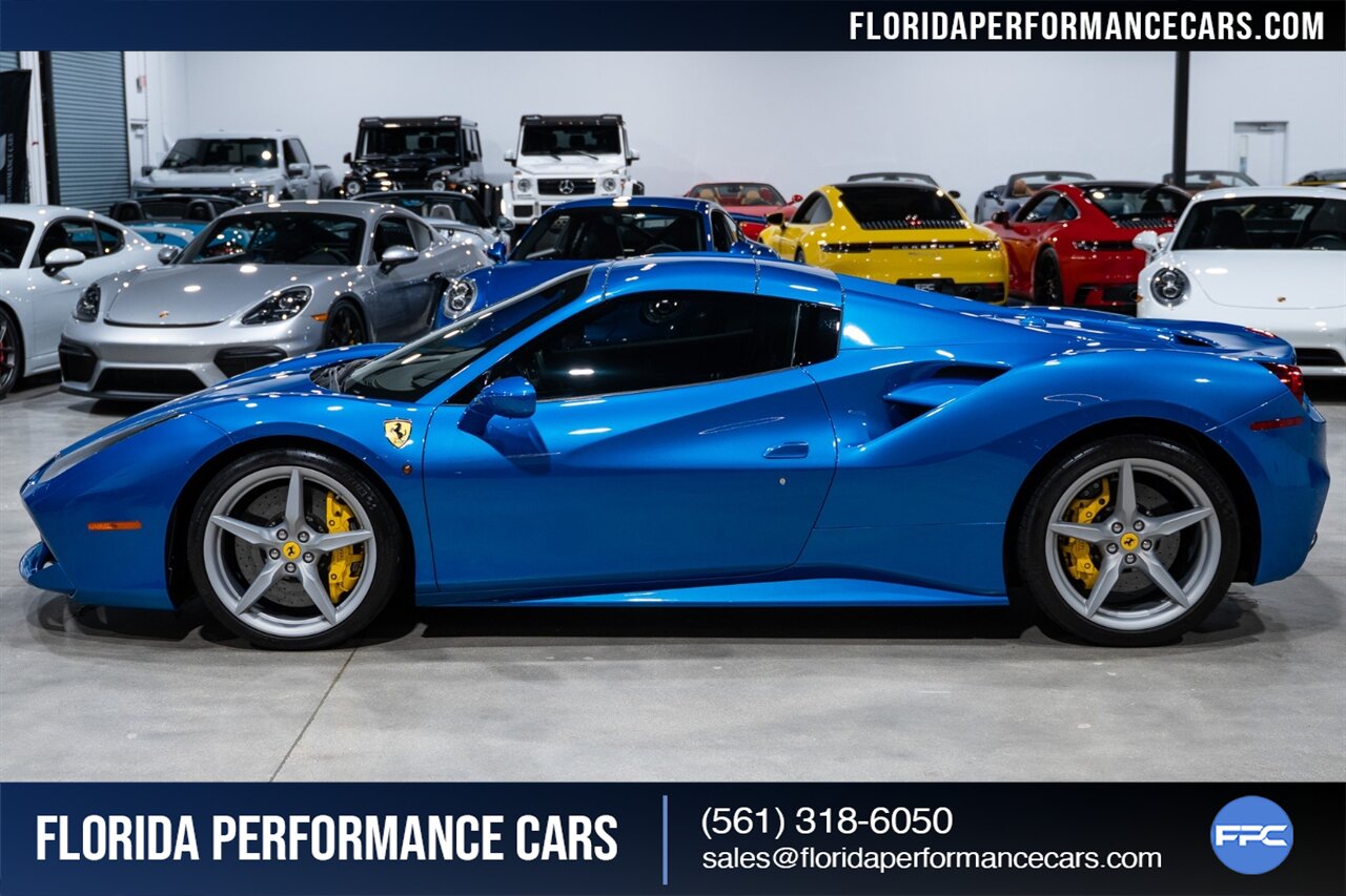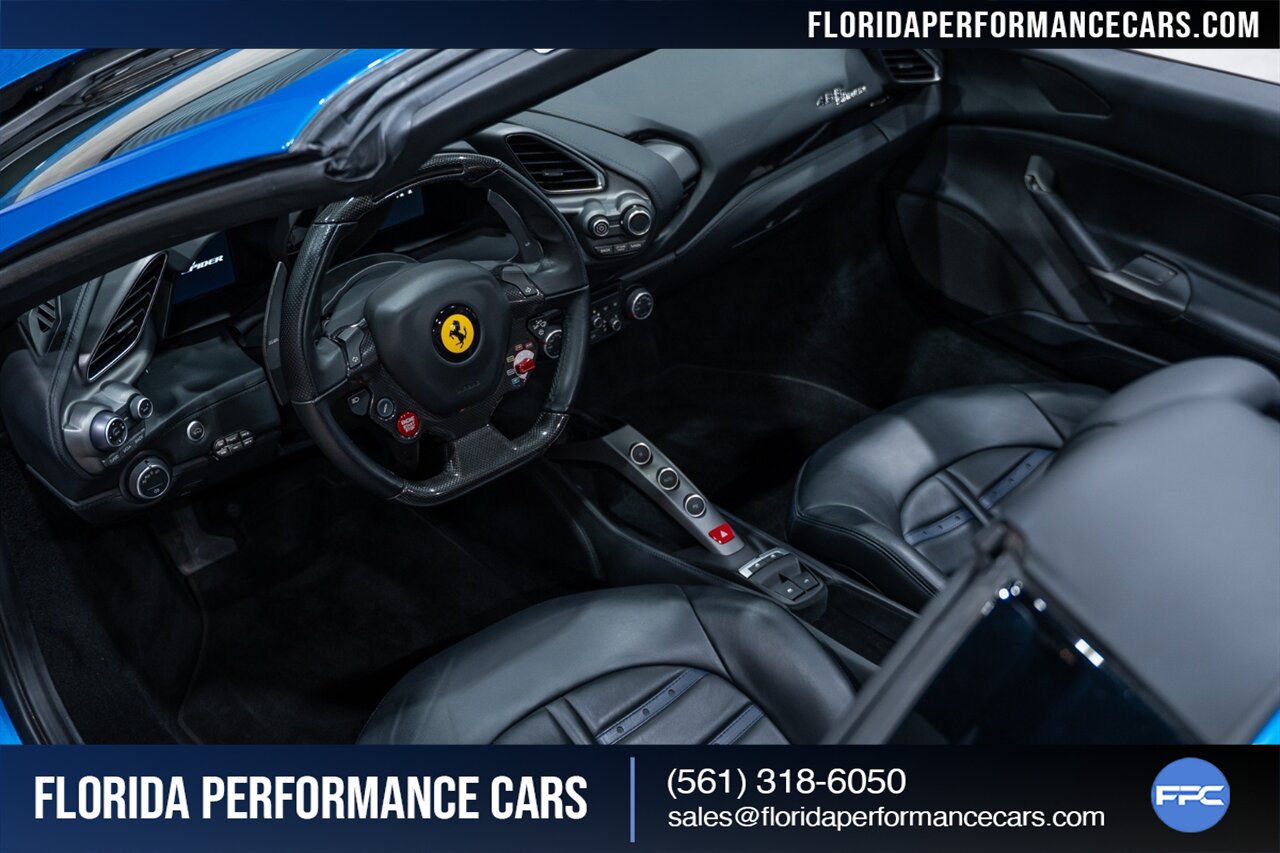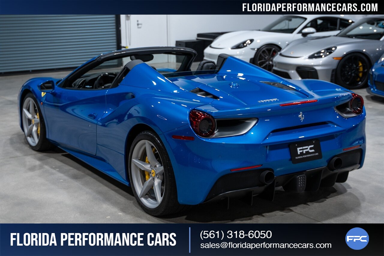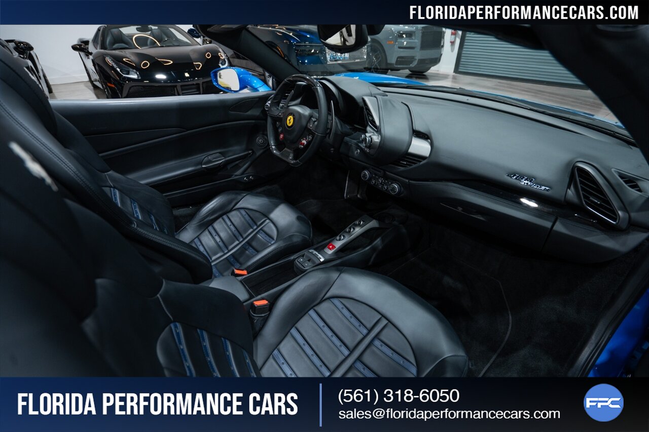 Florida Performance Cars is pleased to announce the arrival of this STUNNING 2018 Ferrari 488 Spider finished in Extra-Range BLU CORSA over Nero interior w/ Daytona Style Seats & Only 21,408 miles. This is a Clean CARFAX, excellent condition and exceptionally well optioned 488 Spider.