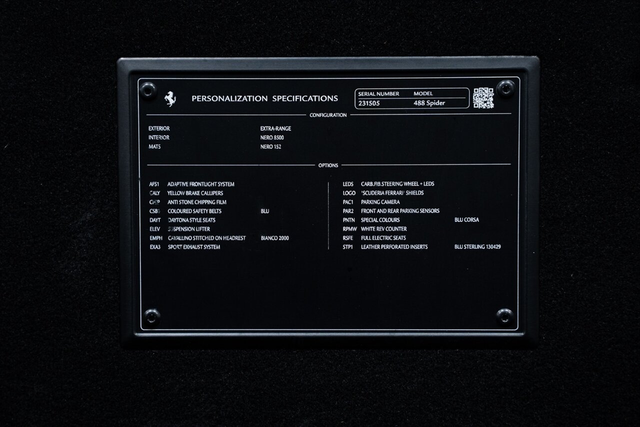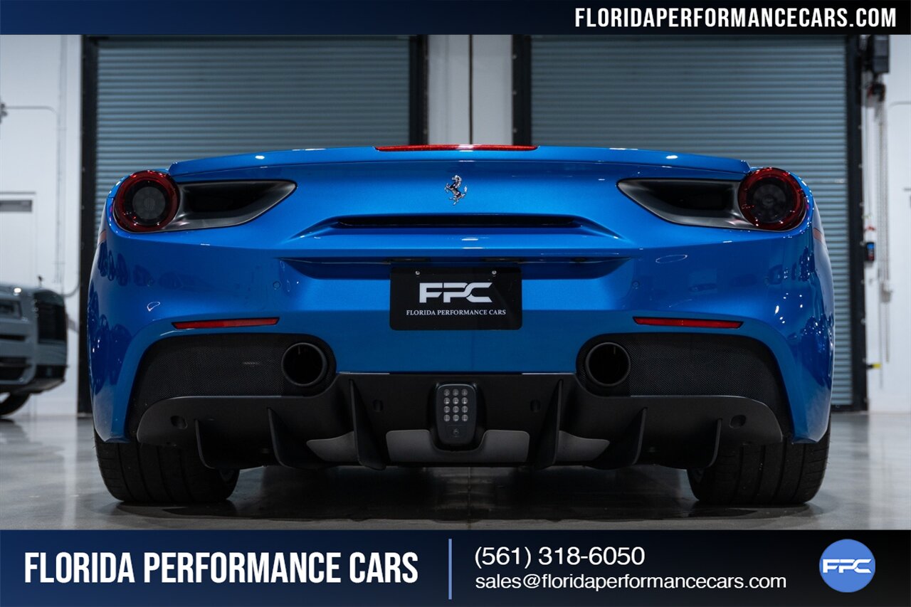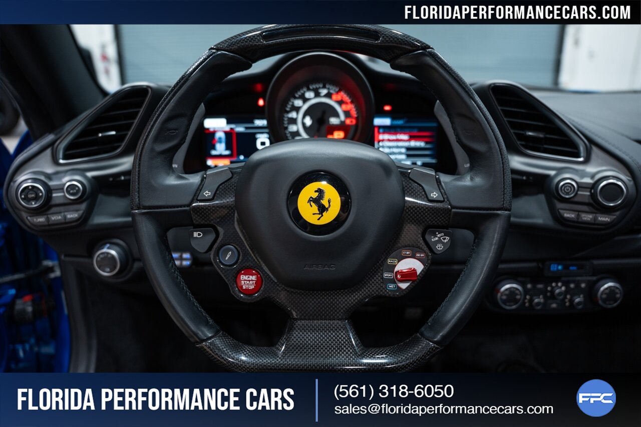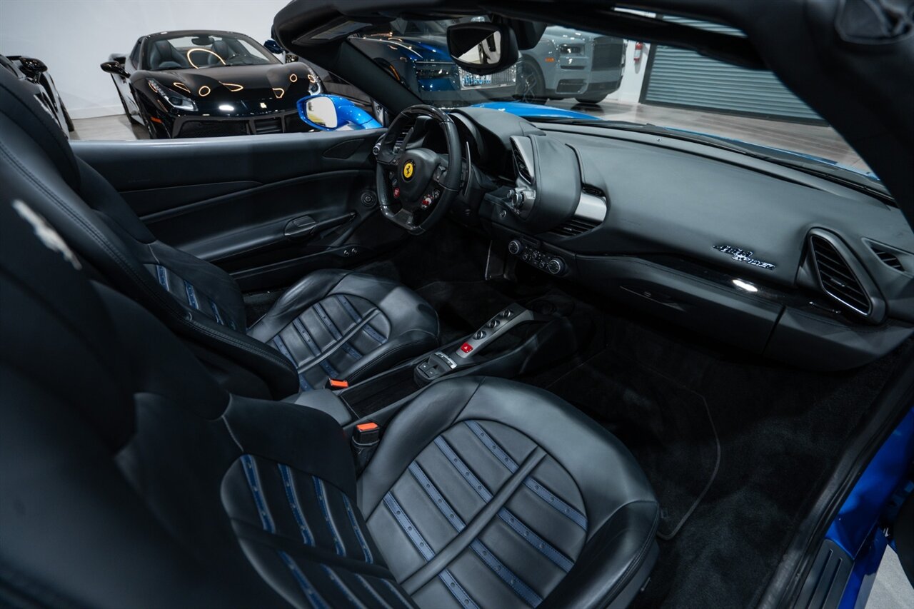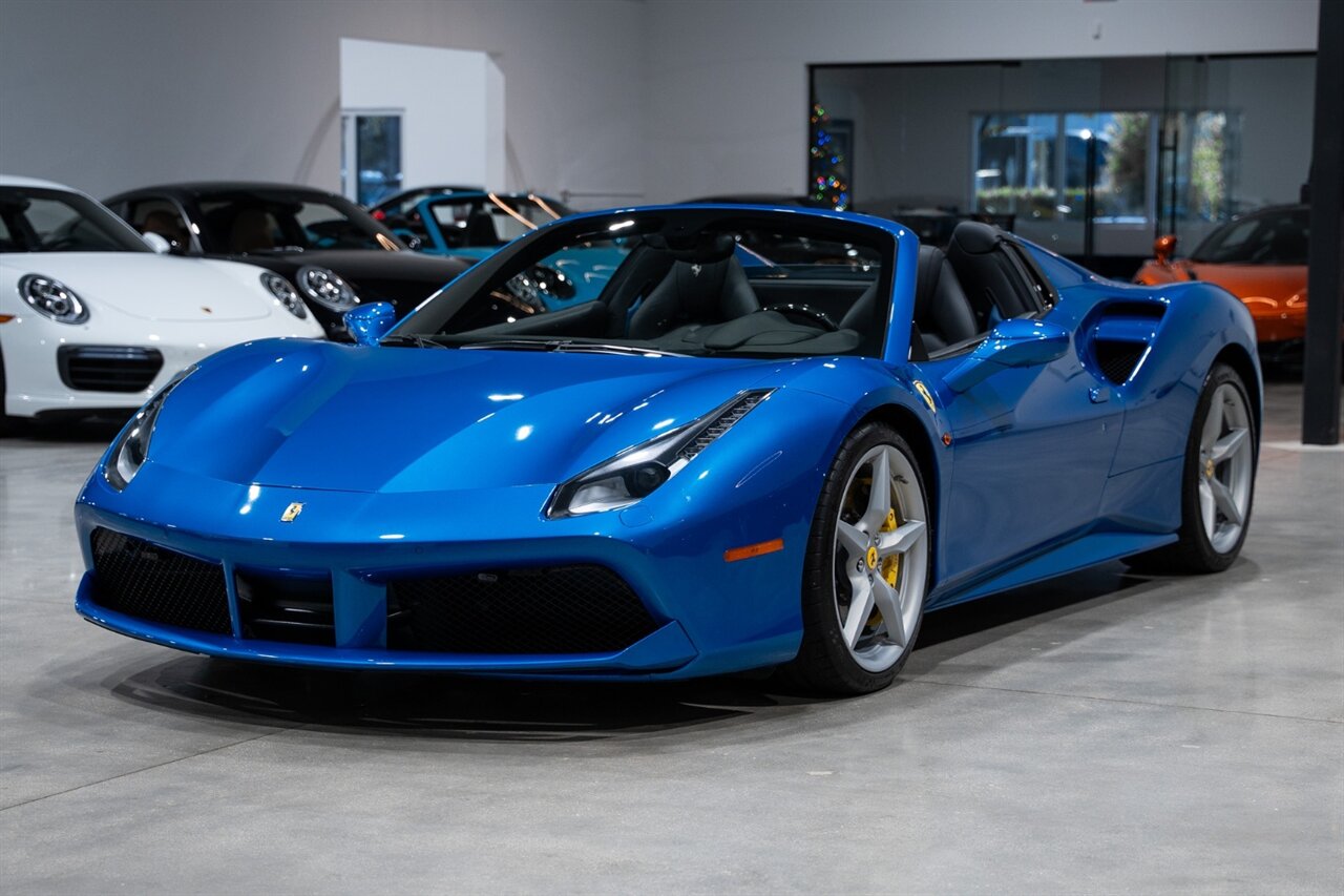 Florida Performance Cars is pleased to announce the arrival of this STUNNING 2018 Ferrari 488 Spider finished in Extra-Range BLU CORSA over Nero interior w/ Daytona Style Seats & Only 21,408 miles. This is a Clean CARFAX, excellent condition and exceptionally well optioned 488 Spider.