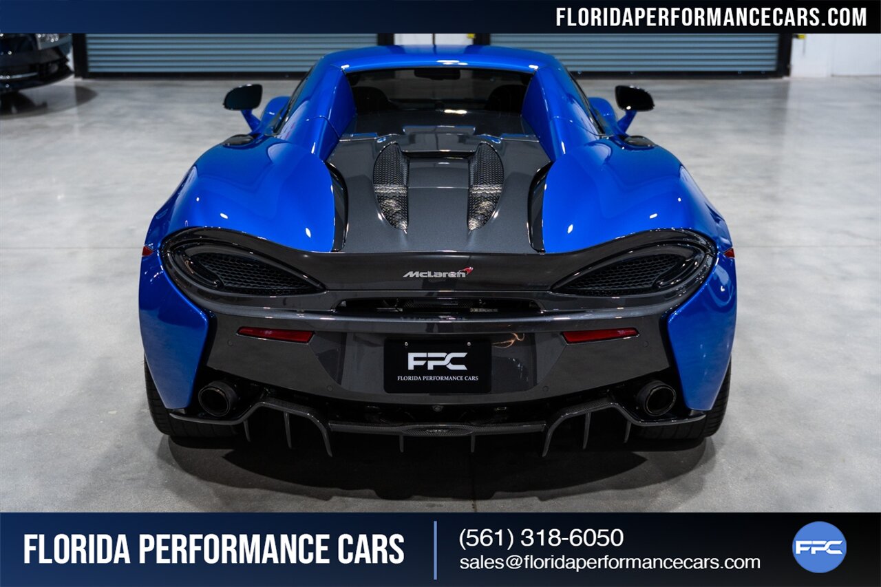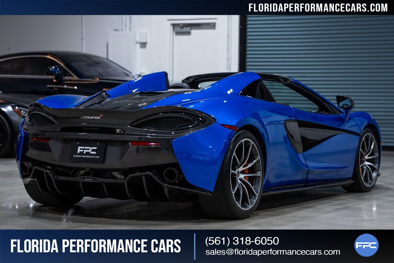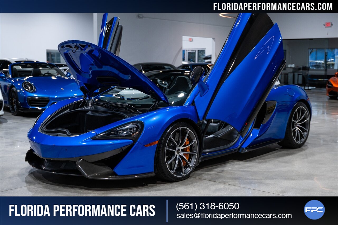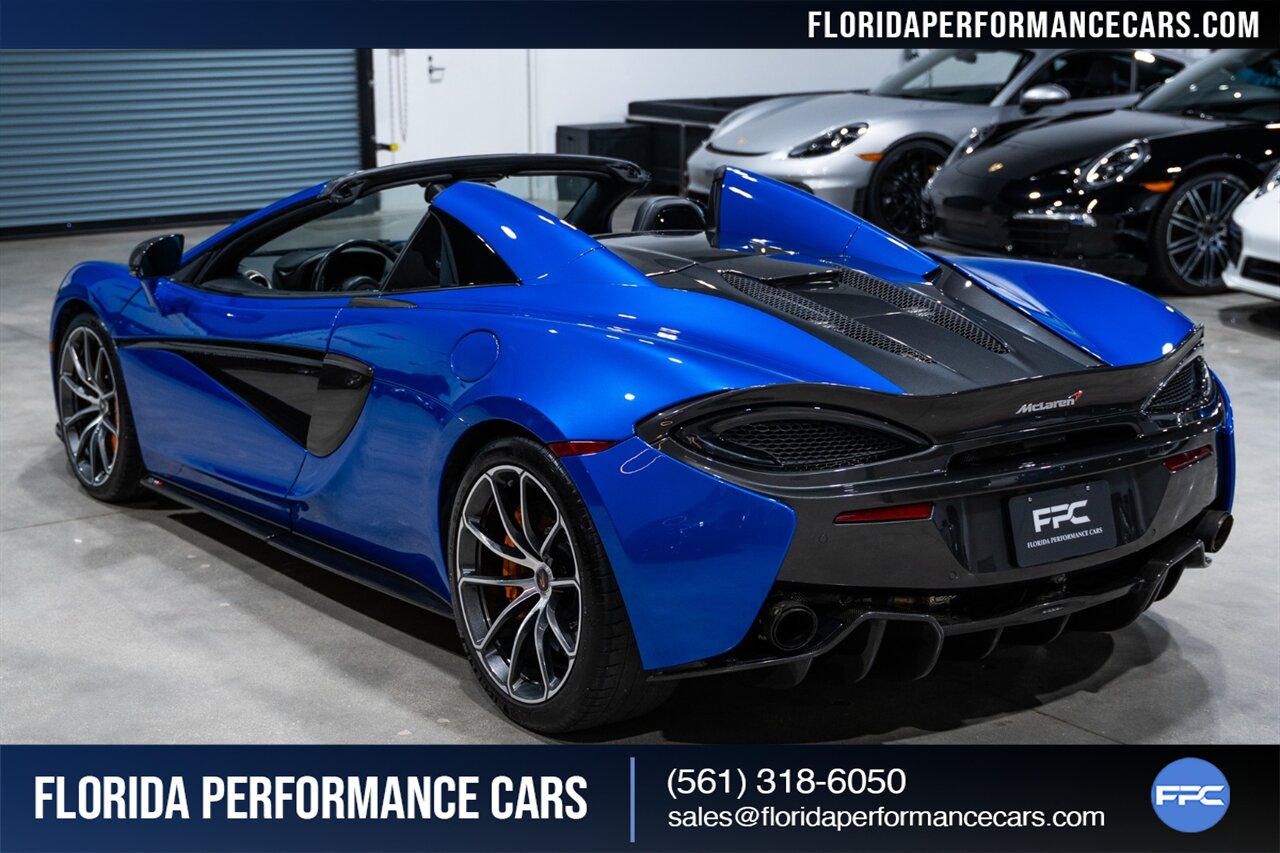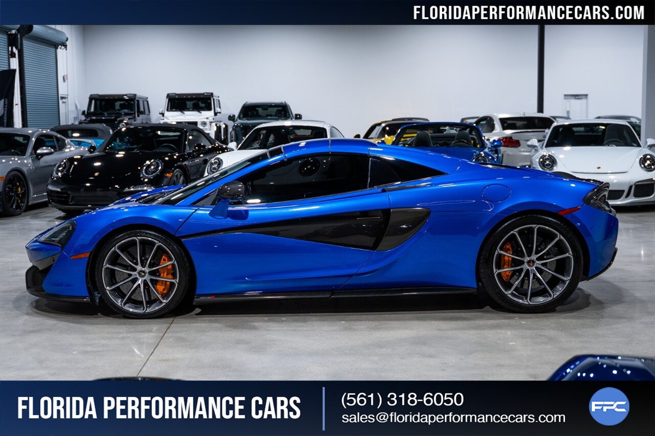 Florida Performance Cars is pleased to announce the arrival of this STUNNING 2018 McLaren 570S Spider finished in ELITE Vega Blue over Black w/ Almond White inserts & 60,540 miles. This is a Clean CARFAX, excellent condition and EXCEPTIONALLY well optioned 570S.