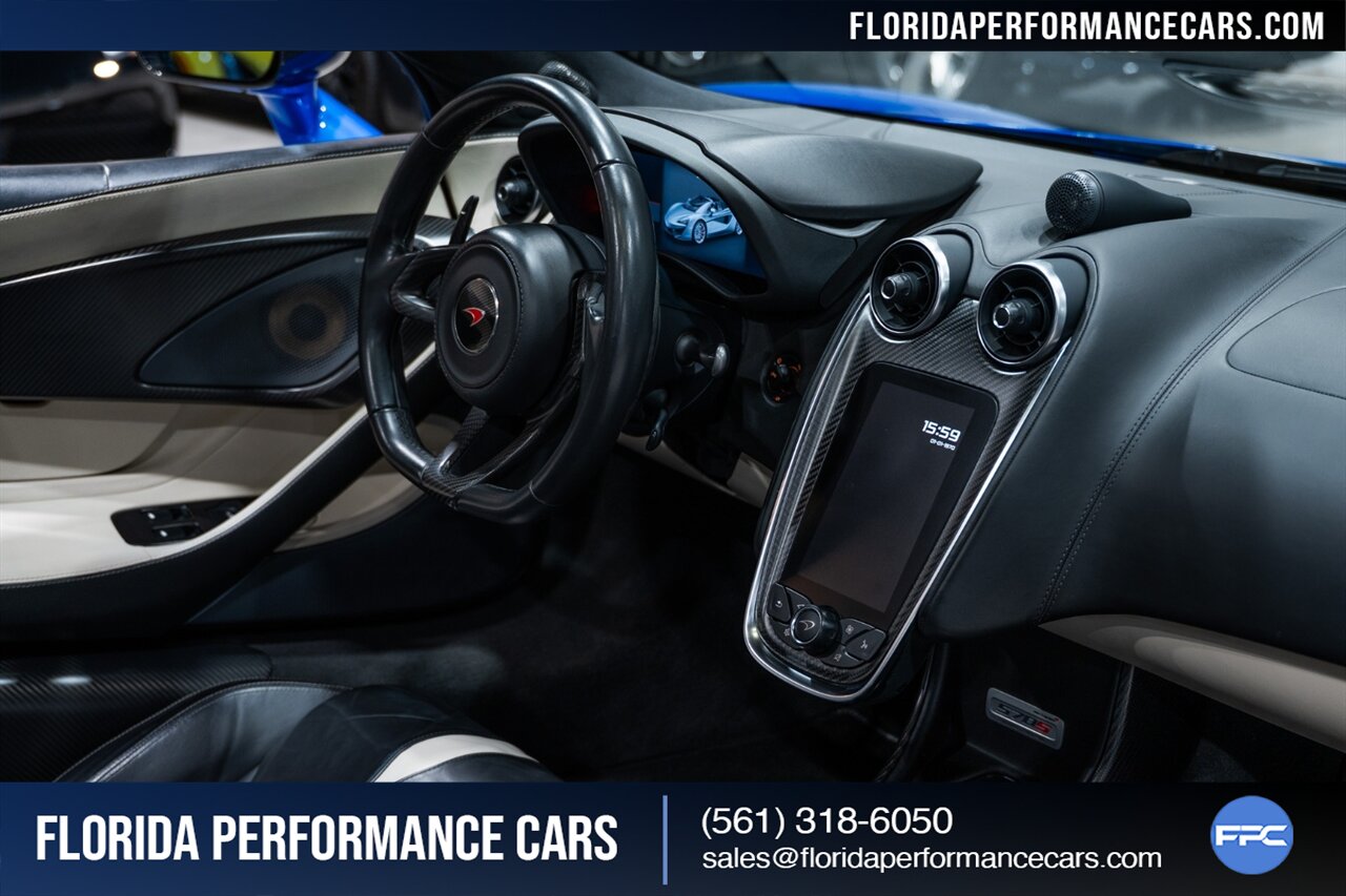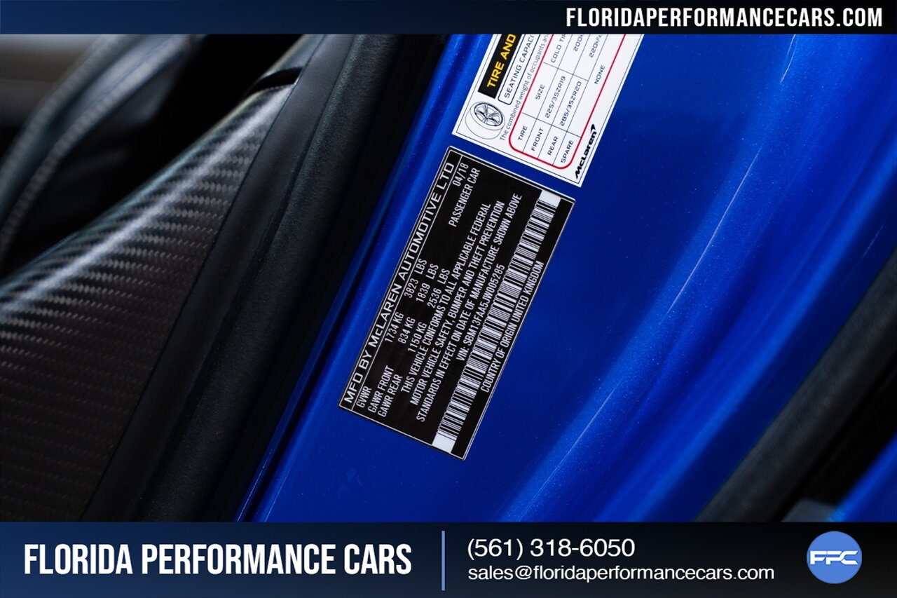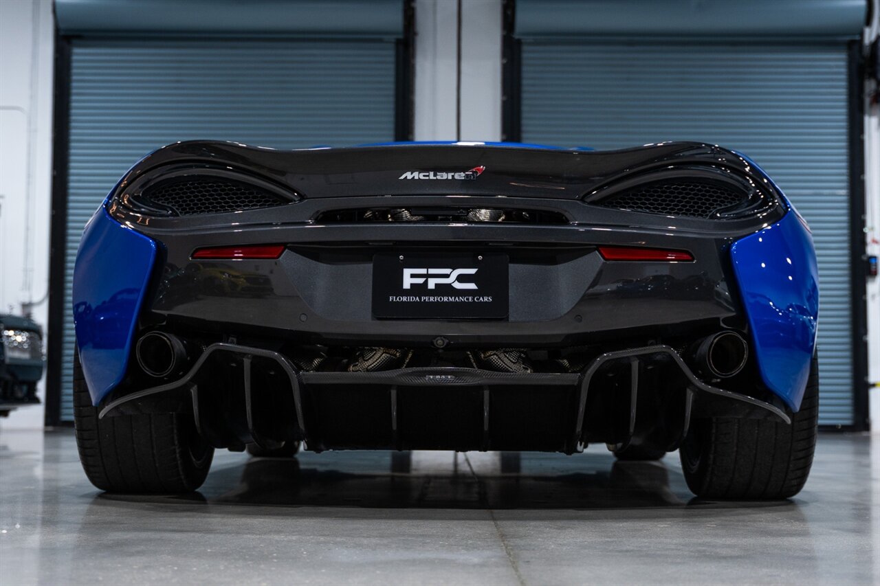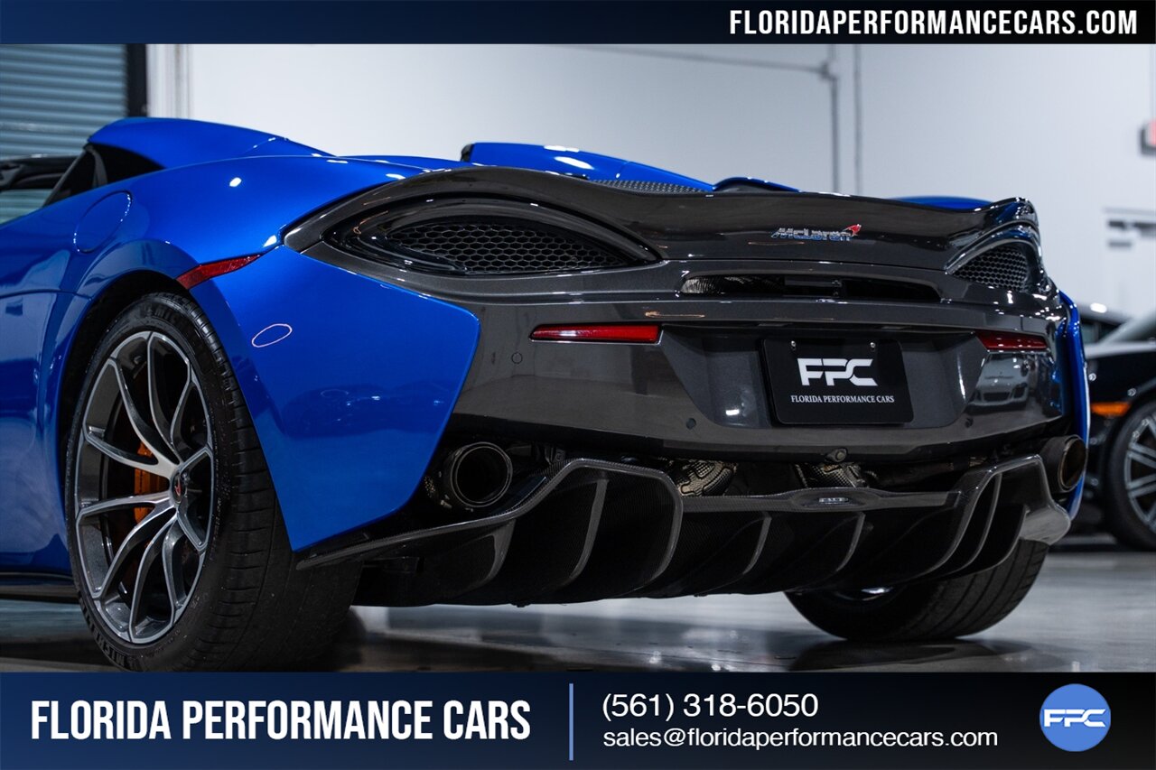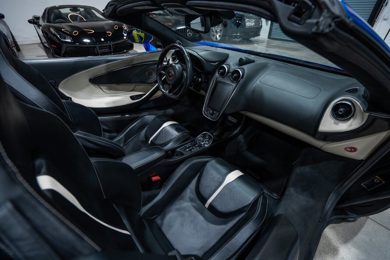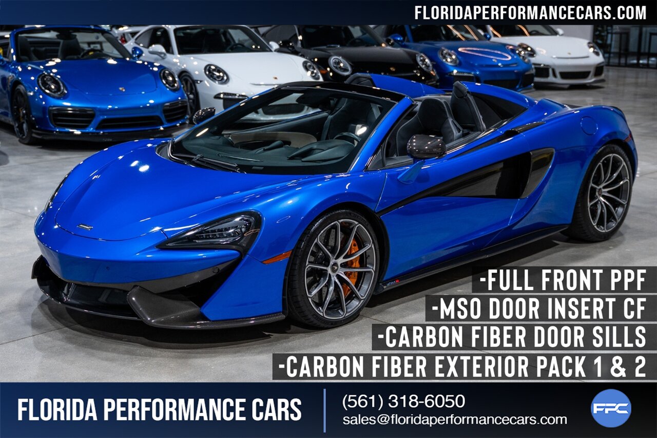 Florida Performance Cars is pleased to announce the arrival of this STUNNING 2018 McLaren 570S Spider finished in ELITE Vega Blue over Black w/ Almond White inserts & 60,540 miles. This is a Clean CARFAX, excellent condition and EXCEPTIONALLY well optioned 570S.