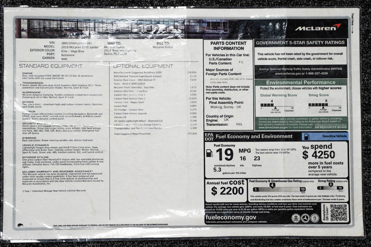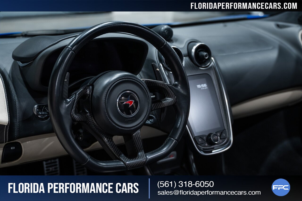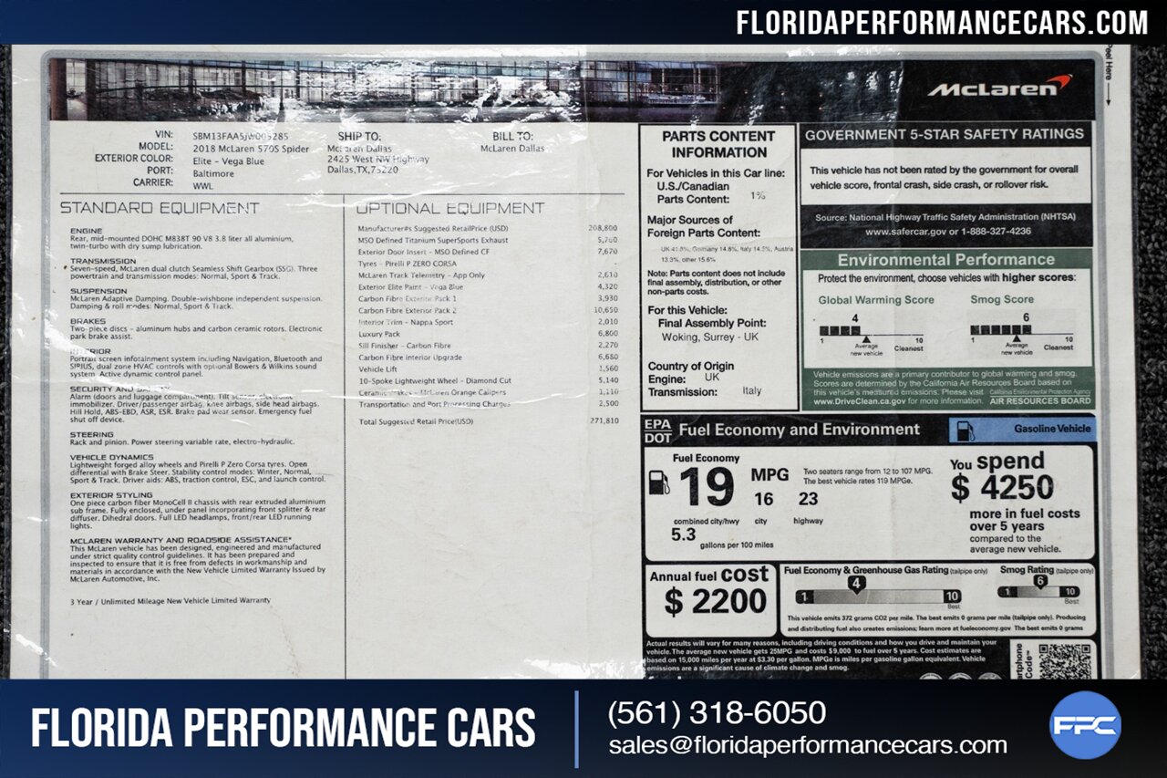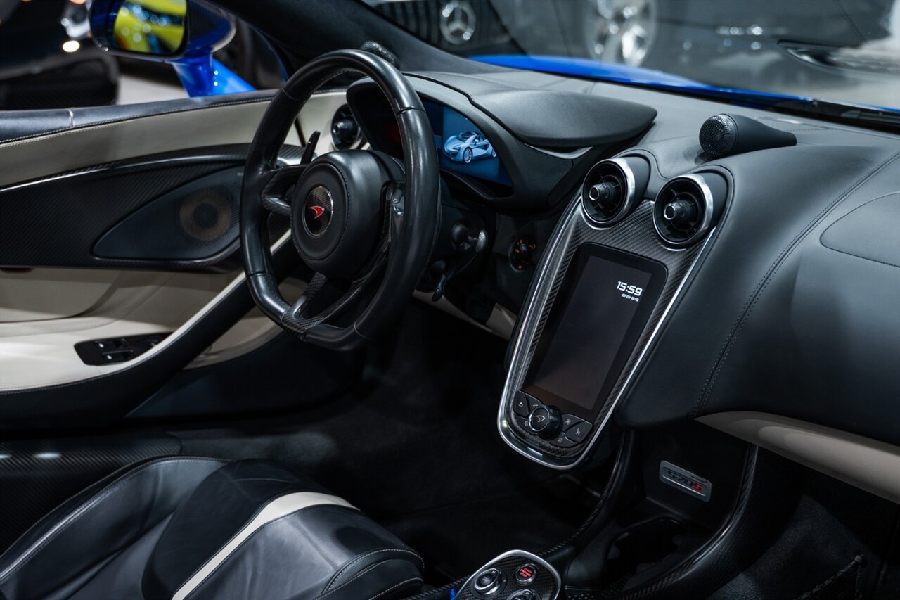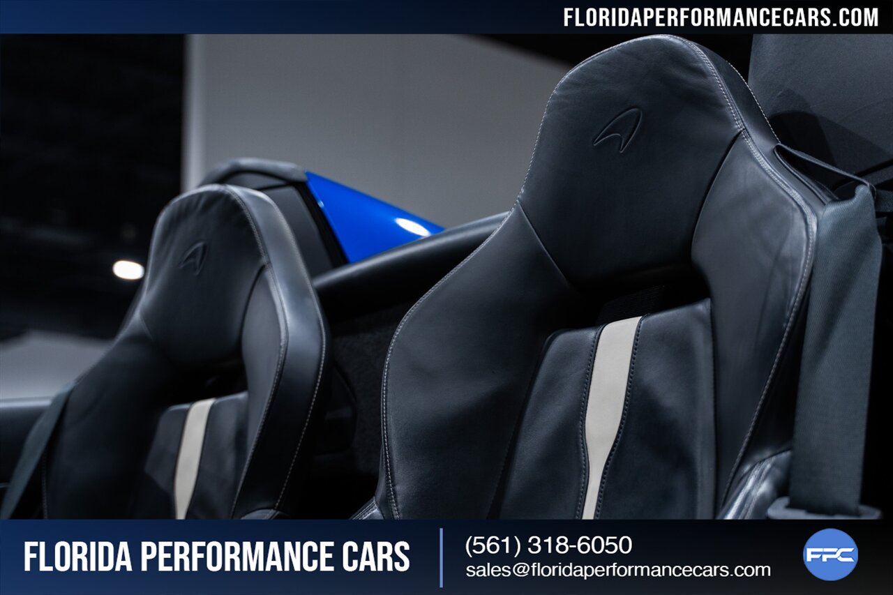 Florida Performance Cars is pleased to announce the arrival of this STUNNING 2018 McLaren 570S Spider finished in ELITE Vega Blue over Black w/ Almond White inserts & 60,540 miles. This is a Clean CARFAX, excellent condition and EXCEPTIONALLY well optioned 570S.