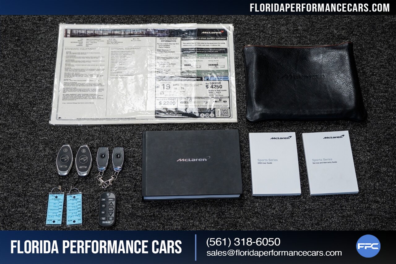 LOCAL FLORIDA trade, long term owner, serviced regularly at McLaren and local McLaren specialty shop - Area 51. Garage kept, non-smoker interior, full front PPF (clear-bra). ALL STOCK, no aftermarket performance modifications. Very good condition Michelin Pilot Sport 4S tires all around. 2 keys, owners manuals, original McLaren window sticker, tender and K40 will all come with the car to the next owner.