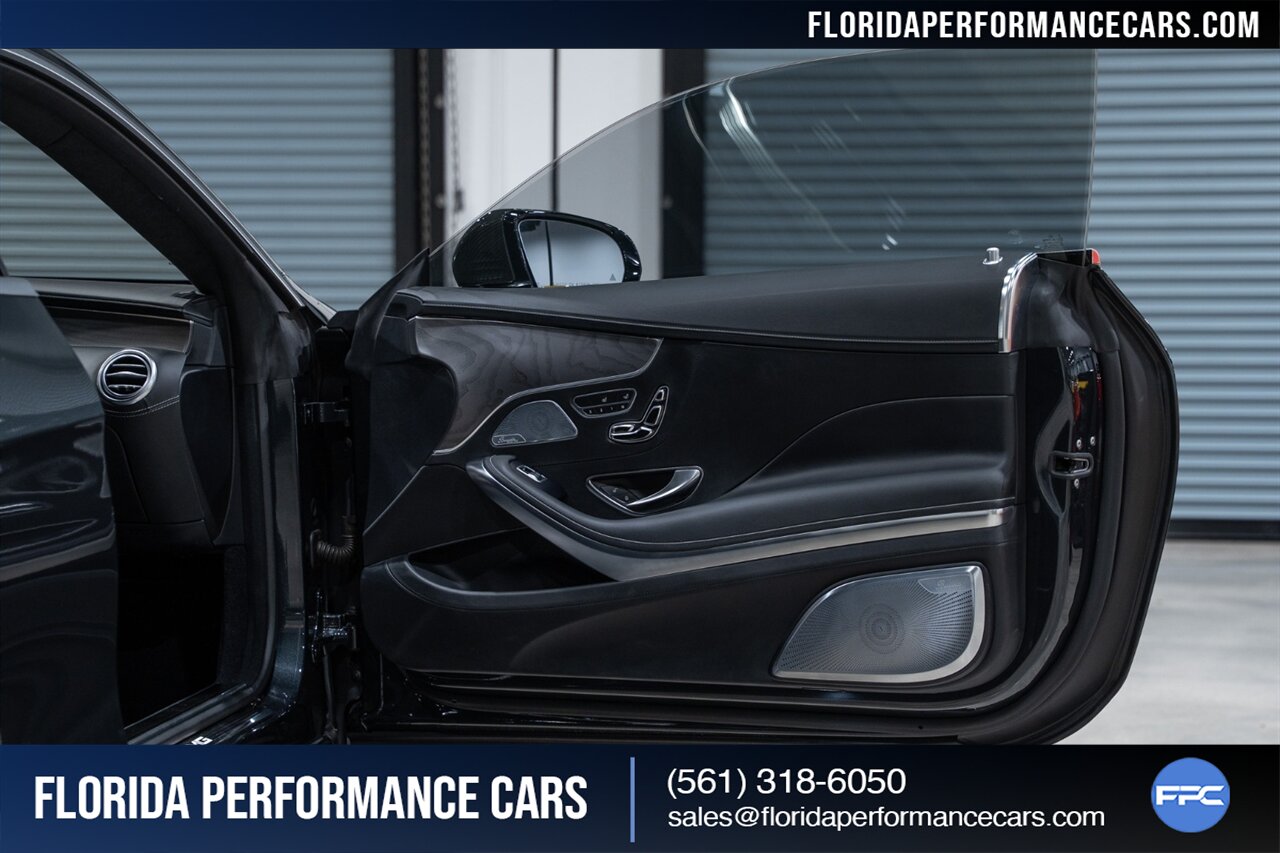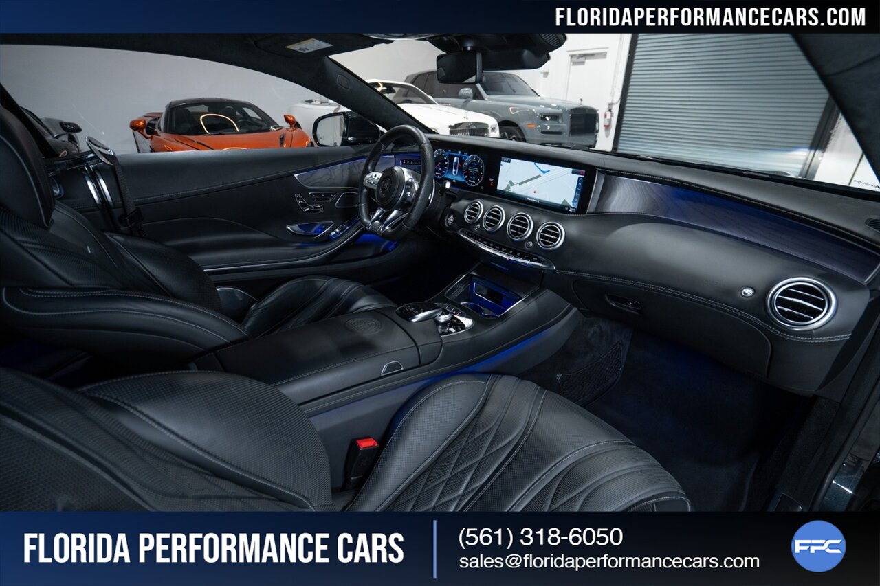Florida Performance Cars is pleased to announce the arrival of this STUNNING 2018 Mercedes-Benz AMG S 63 Coupe finished in *rare* Magnetite Black Metallic over designo Black Exclusive Nappa Leather w/ 36,778 miles. This is a Clean CARFAX, excellent condition and EXCEPTIONALLY well optioned S 63 Coupe. Garage kept, non-smoker, no accidents. Serviced regularly at Mercedes since new, tires show good tread all around. An overall very well-kept and properly cared for example.