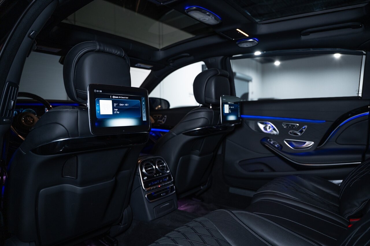 Features include; Executive rear seat package, Heated/ventilated/massaging front and rear seats, 13-speaker Burmester surround sound system, dual 12.3-inch displays, panoramic roof, rear seat entertainment system, AIRMATIC suspension, LED headlights, ambient lighting, Driver Assistance w/ Surround-view camera system, active blind-spot assist, active lane-keeping assist, adaptive cruise control.