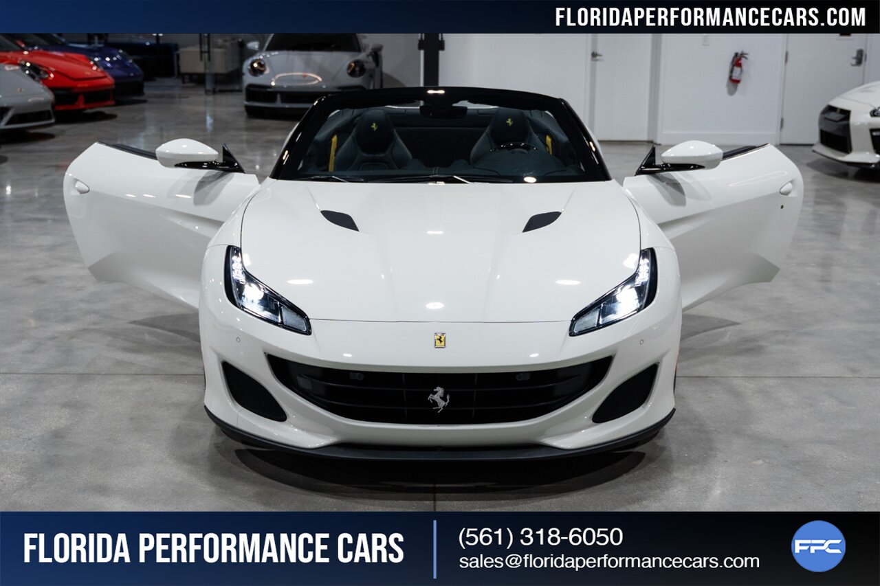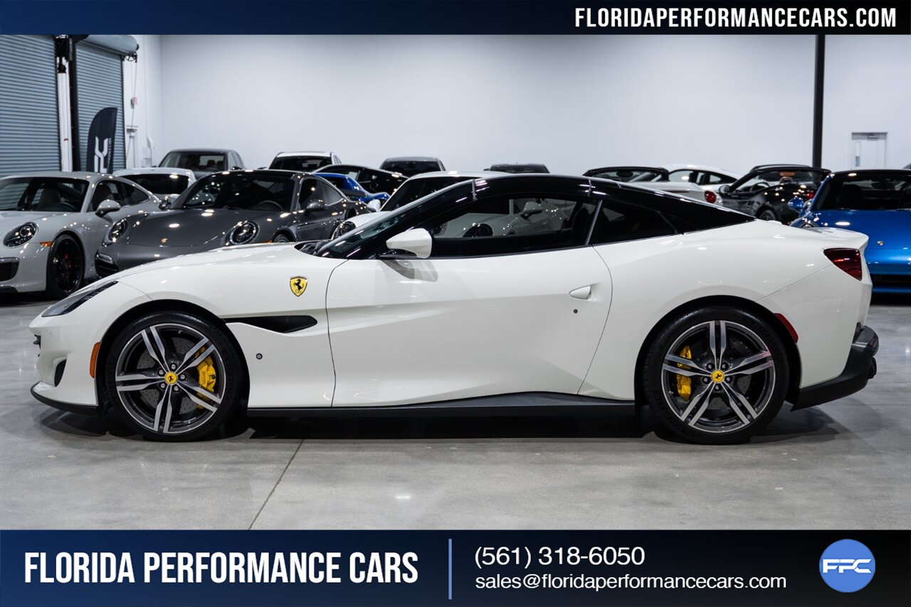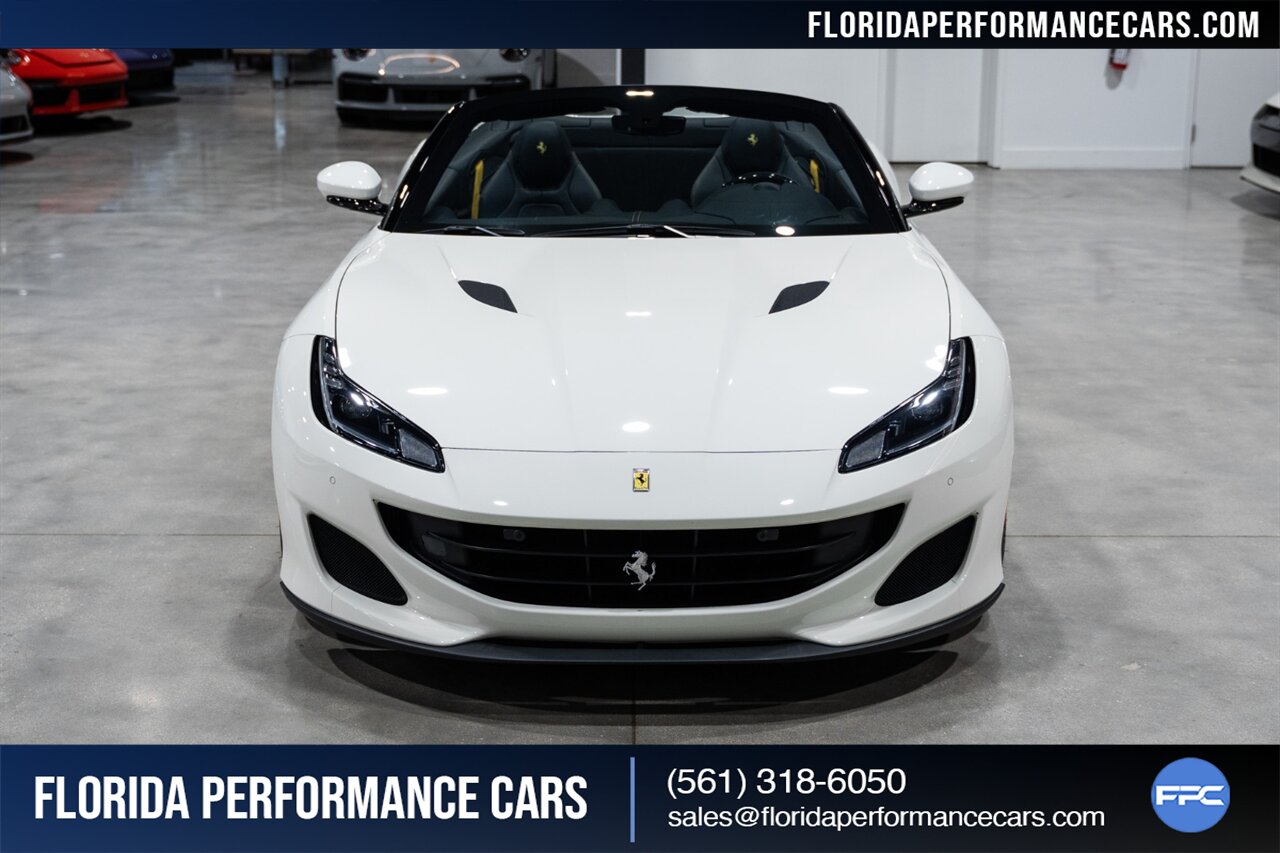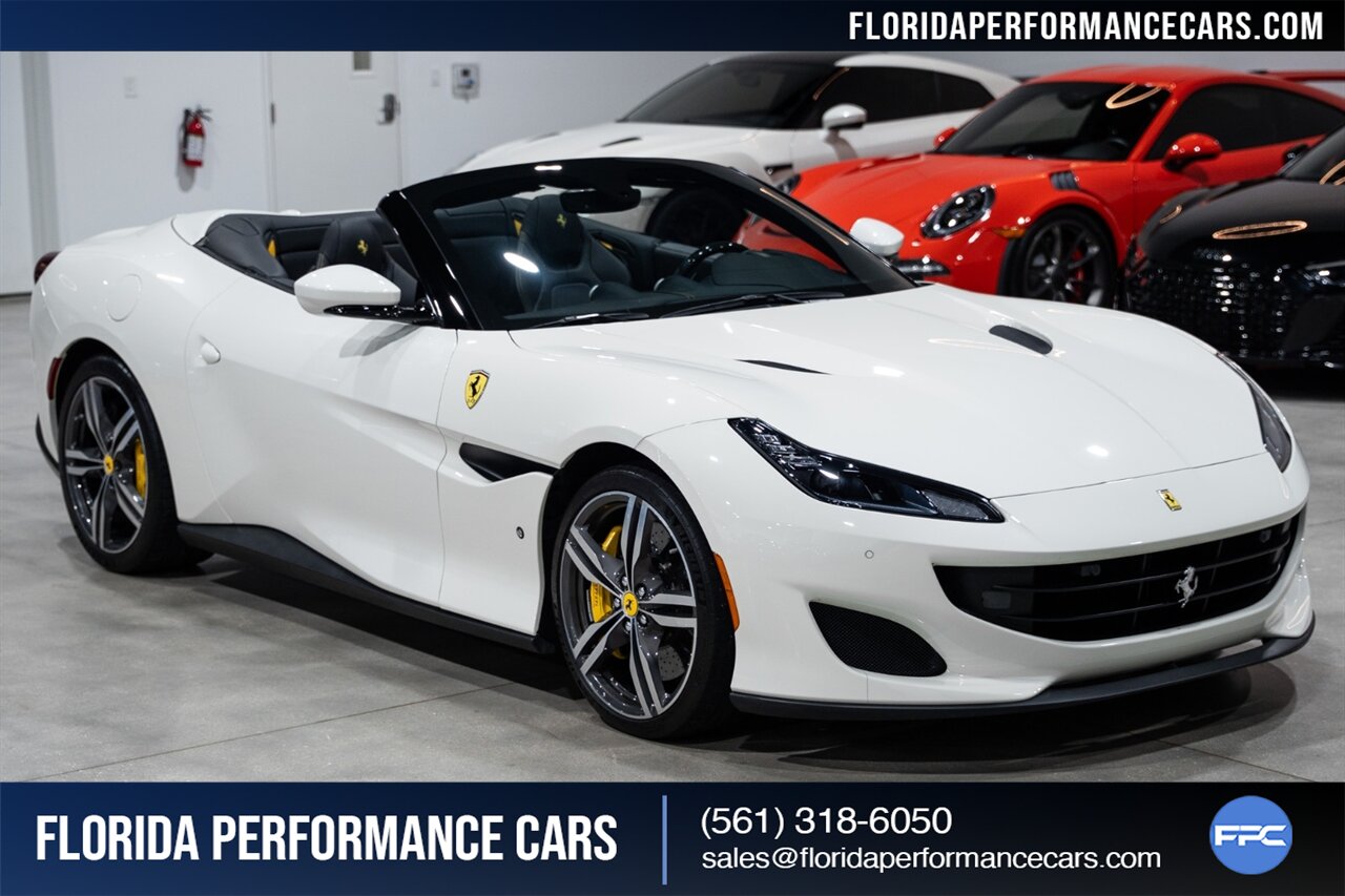 Florida Performance Cars is pleased to announce the arrival of this STUNNING 2019 Ferrari Portofino finished in Bianco Avus over Nero interior w/ Giallo stitching and 23,136 miles. This is an excellent condition, well appointed, exceptionally well optioned Portofino. Garage kept, non-smoker interior, and the entire front is wrapped in clear protection film (PPF).