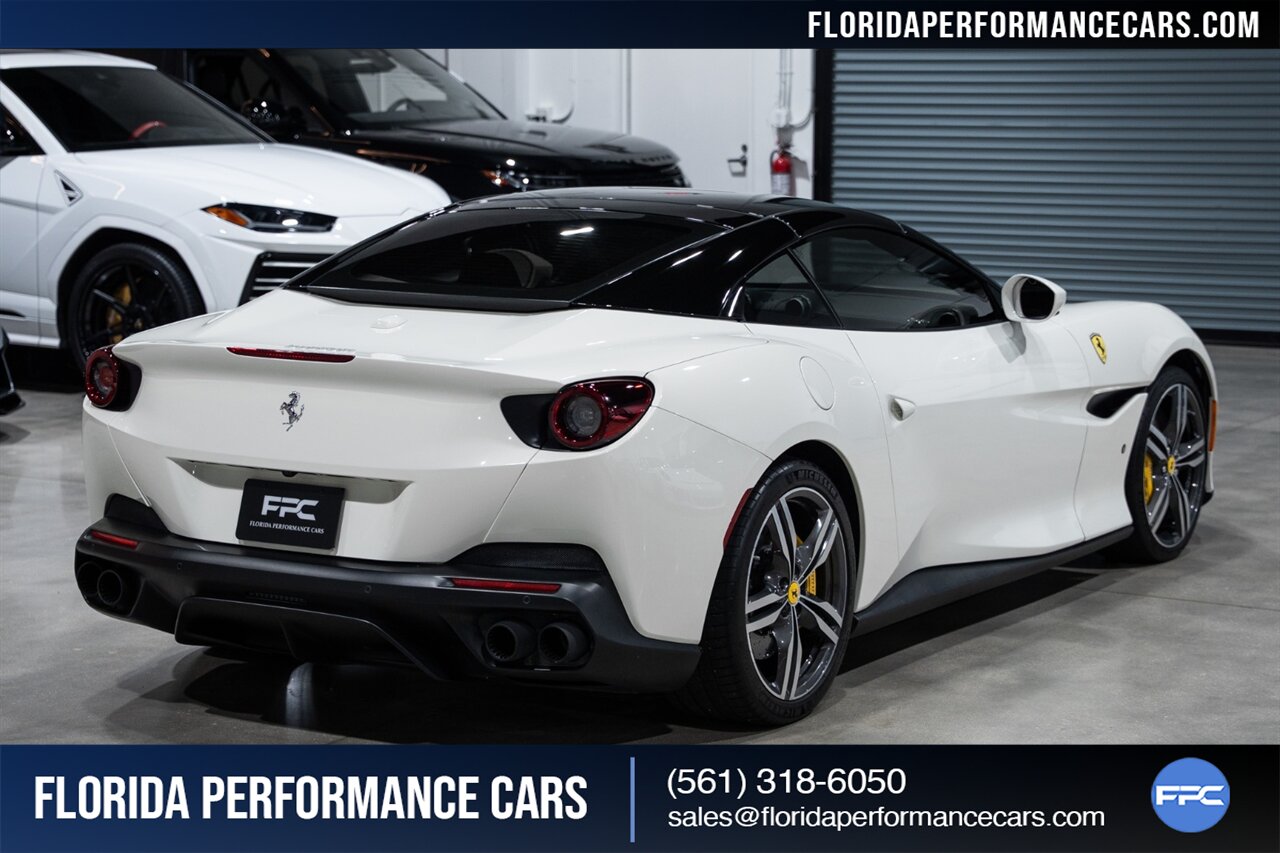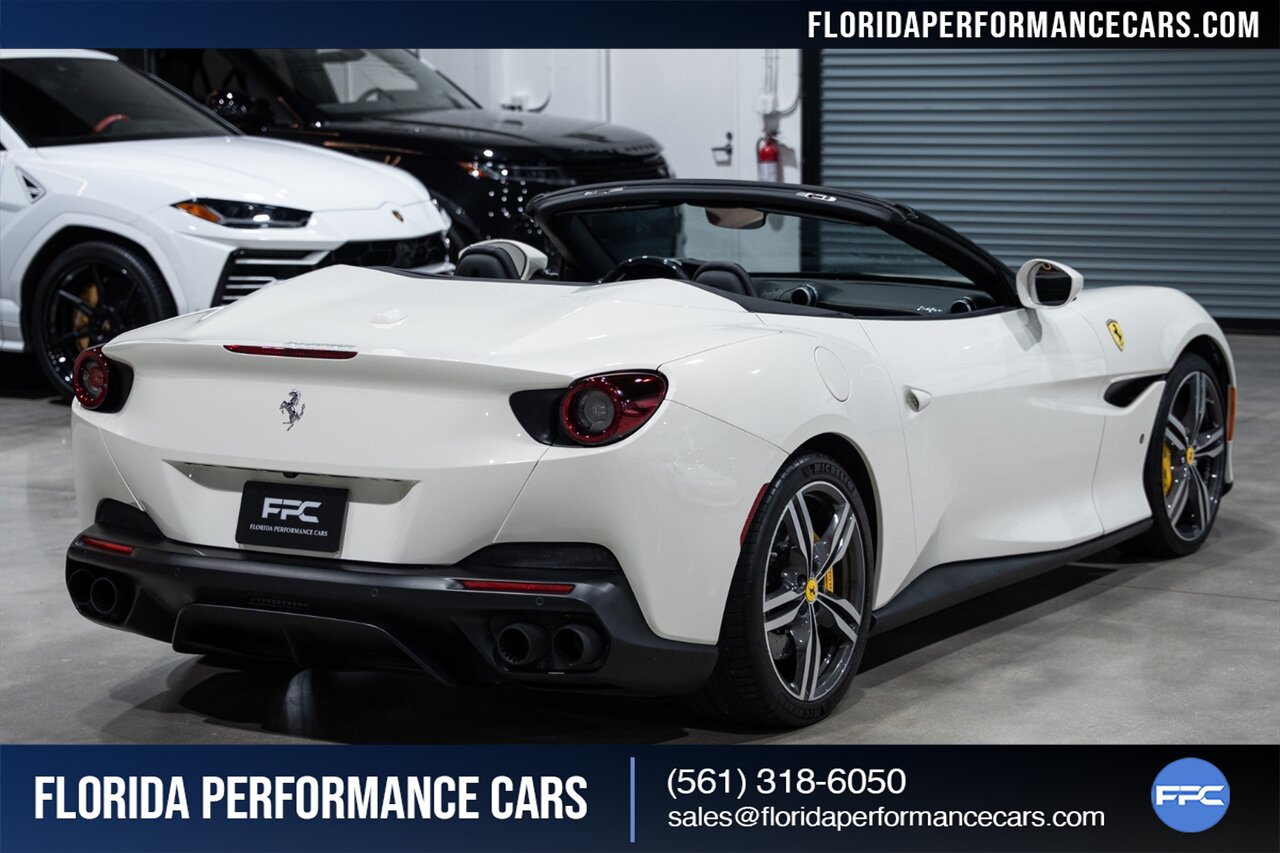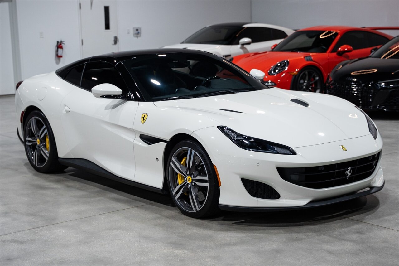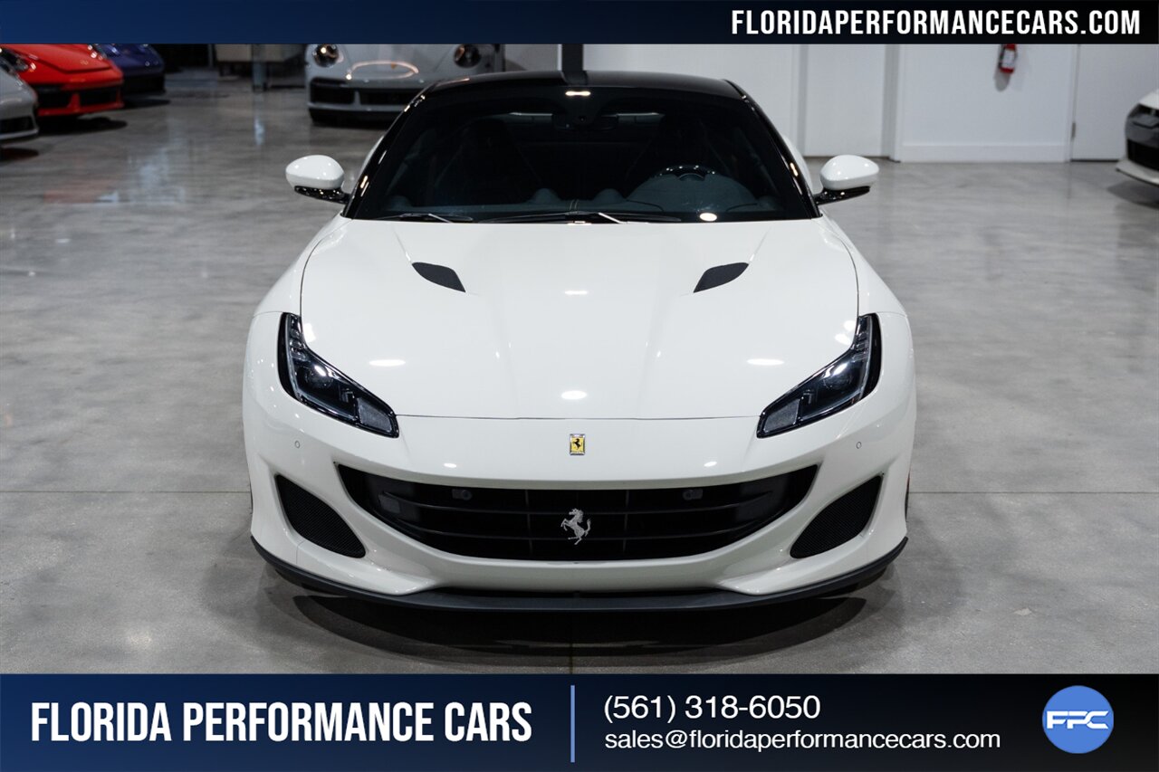 Florida Performance Cars is pleased to announce the arrival of this STUNNING 2019 Ferrari Portofino finished in Bianco Avus over Nero interior w/ Giallo stitching and 23,136 miles. This is an excellent condition, well appointed, exceptionally well optioned Portofino. Garage kept, non-smoker interior, and the entire front is wrapped in clear protection film (PPF).