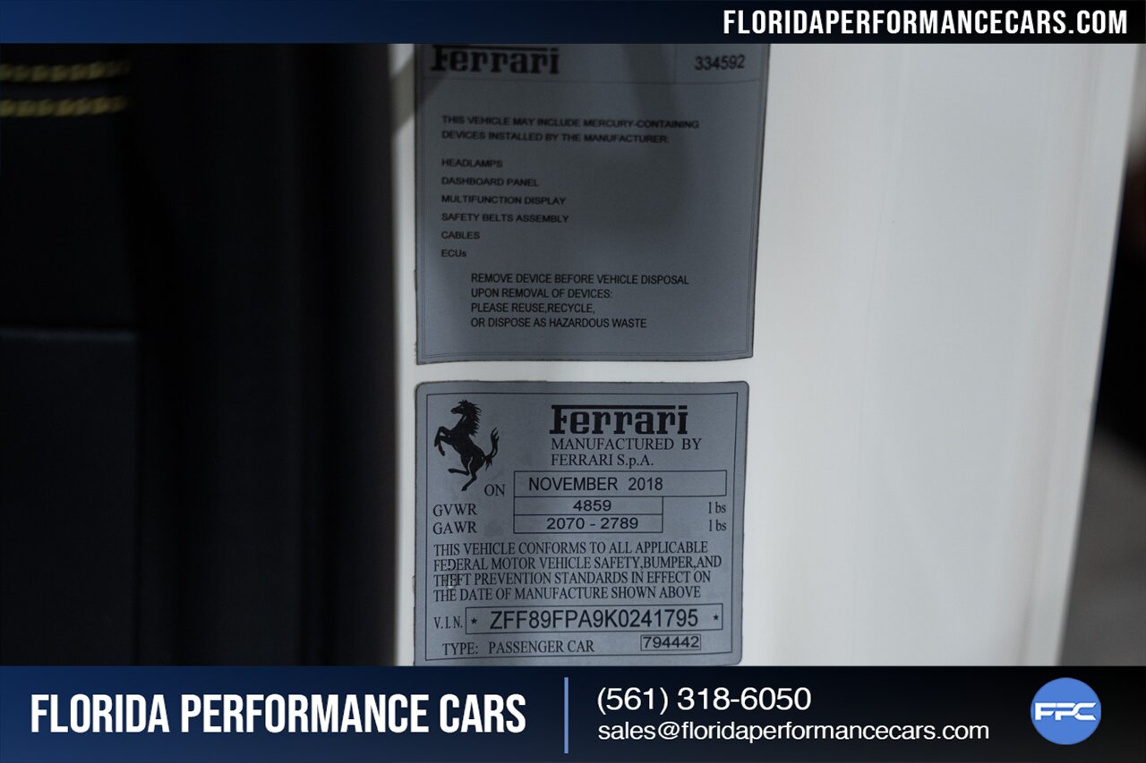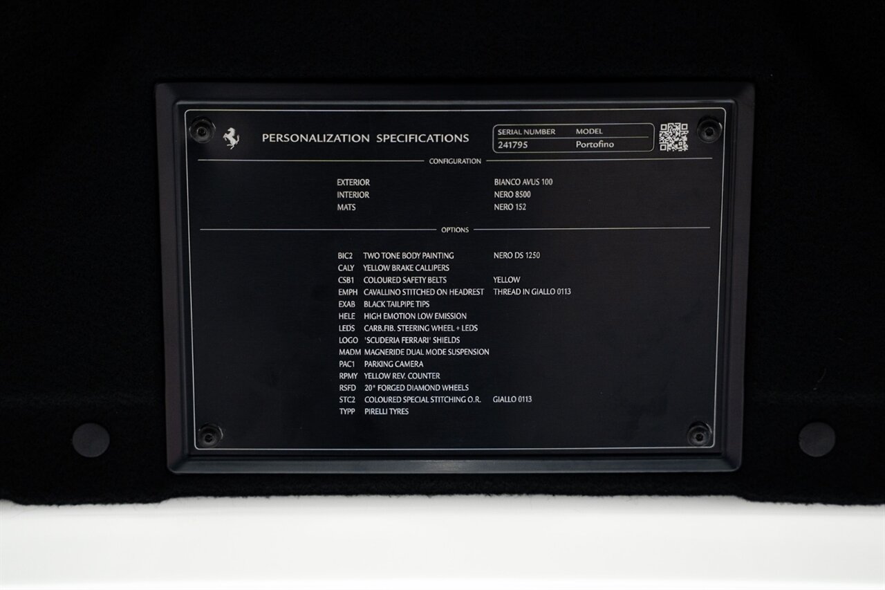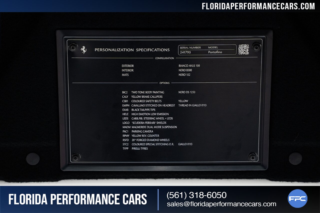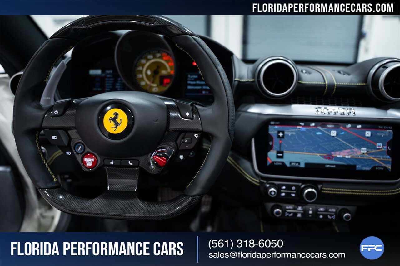 Florida Performance Cars is pleased to announce the arrival of this STUNNING 2019 Ferrari Portofino finished in Bianco Avus over Nero interior w/ Giallo stitching and 23,136 miles. This is an excellent condition, well appointed, exceptionally well optioned Portofino. Garage kept, non-smoker interior, and the entire front is wrapped in clear protection film (PPF).