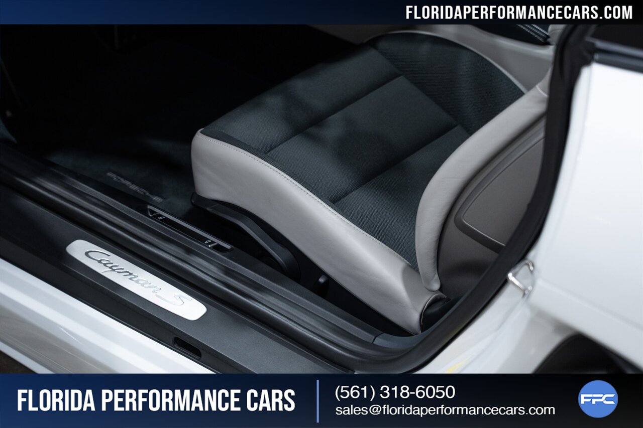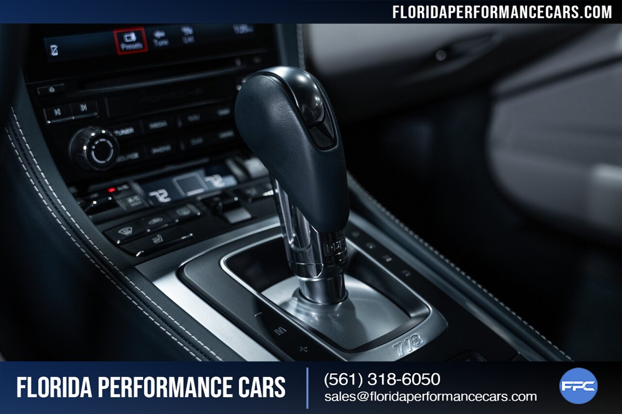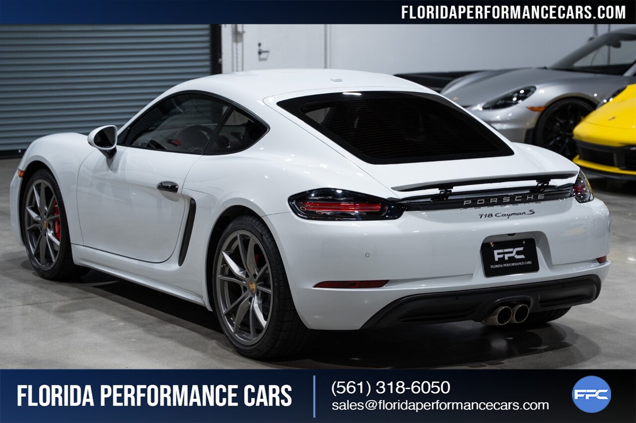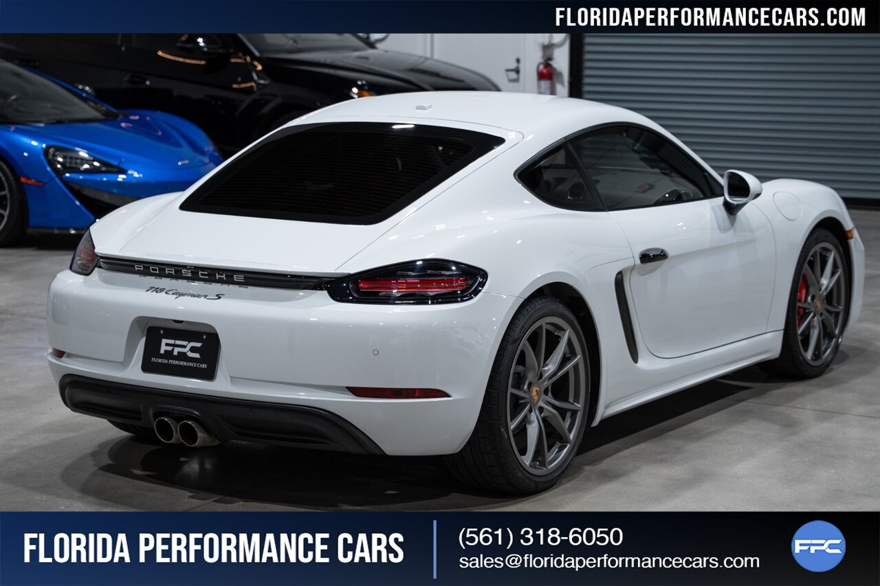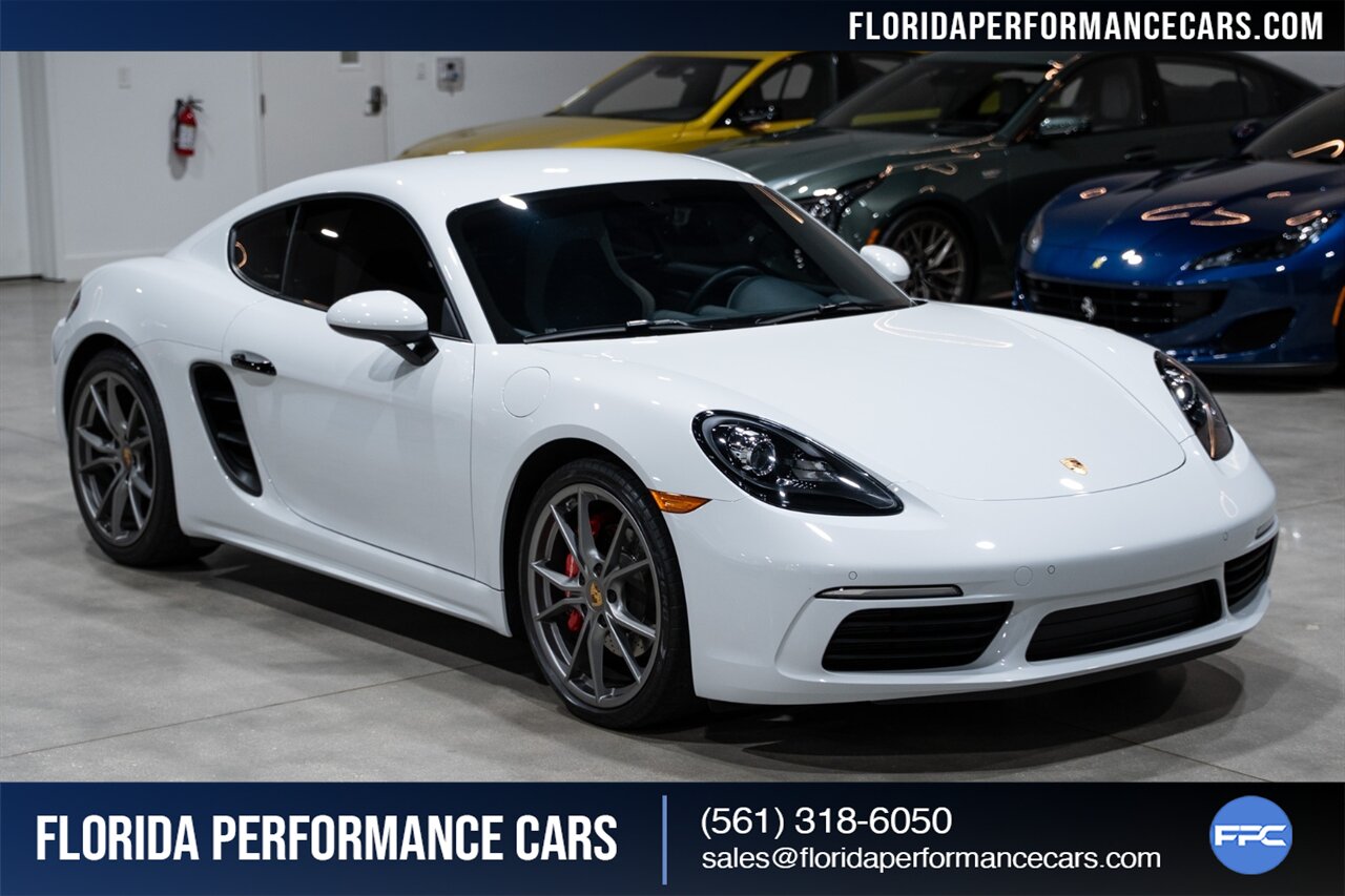This is a 1-OWNER, Clean CARFAX and exceptionally well kept 718 Cayman S. Local Florida owned since new, garage kept, non-smoker interior. All original, no mods, service is current, tires are good Pirelli P Zero all around. 2 keys and owners manuals will come with the car to the next owner.
