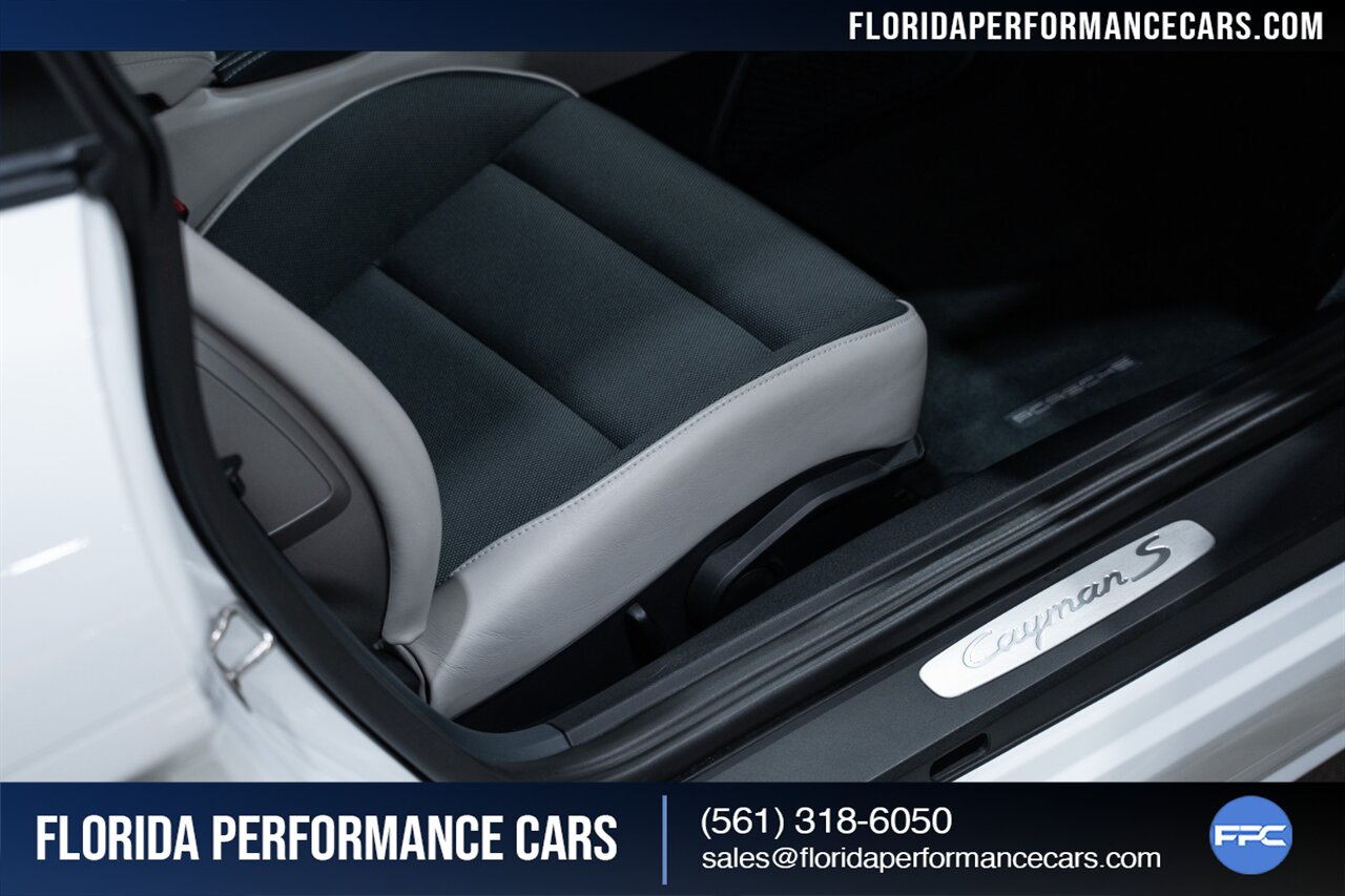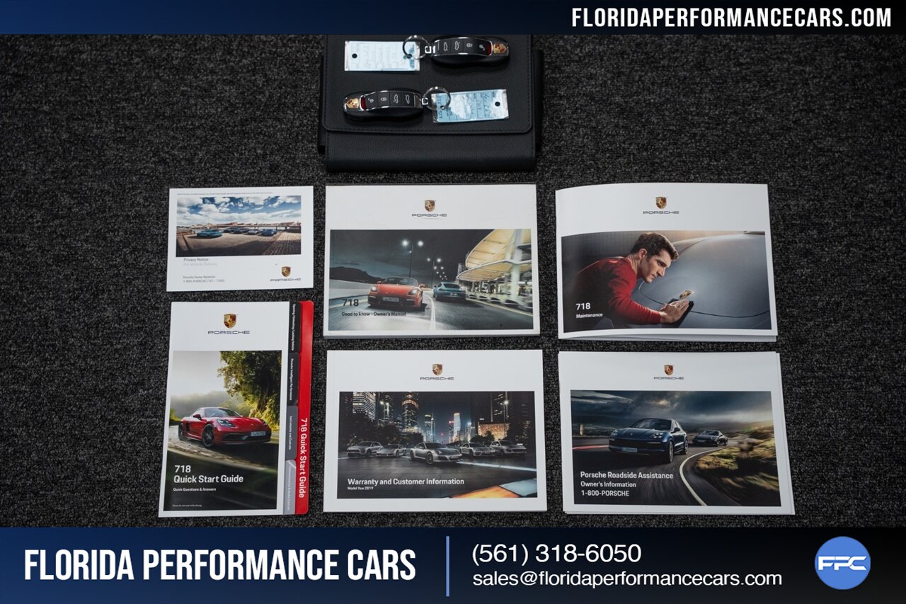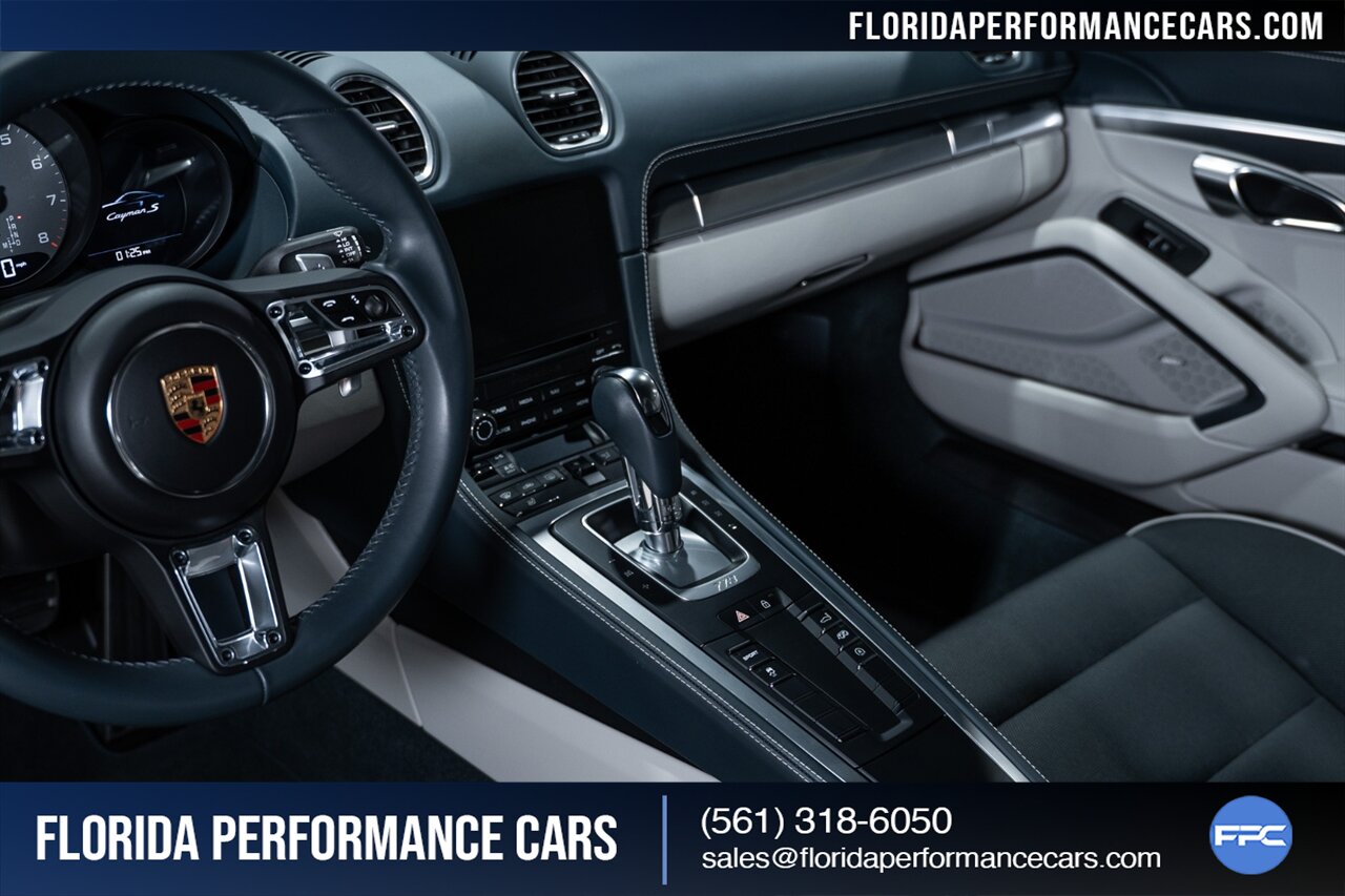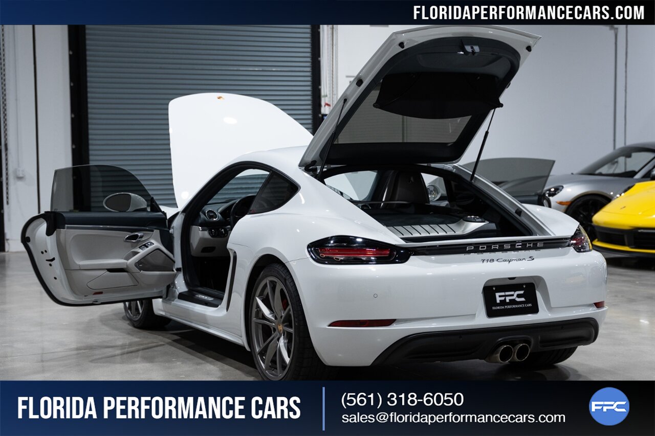 This is a 1-OWNER, Clean CARFAX and exceptionally well kept 718 Cayman S. Local Florida owned since new, garage kept, non-smoker interior. All original, no mods, service is current, tires are good Pirelli P Zero all around. 2 keys and owners manuals will come with the car to the next owner.