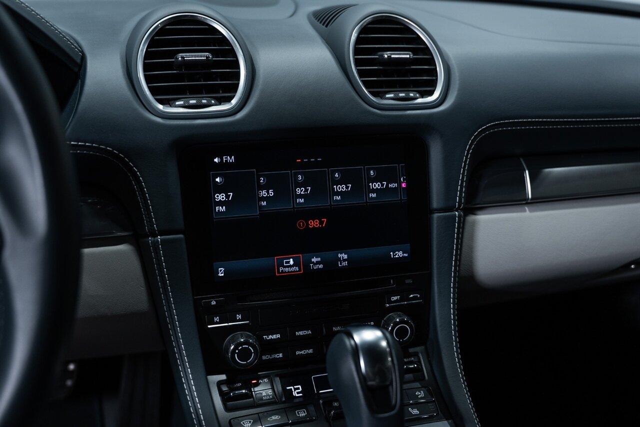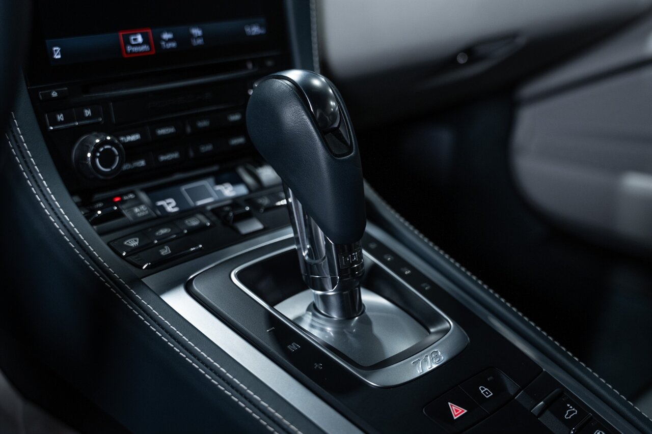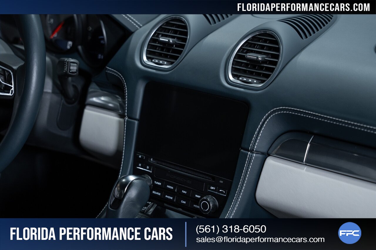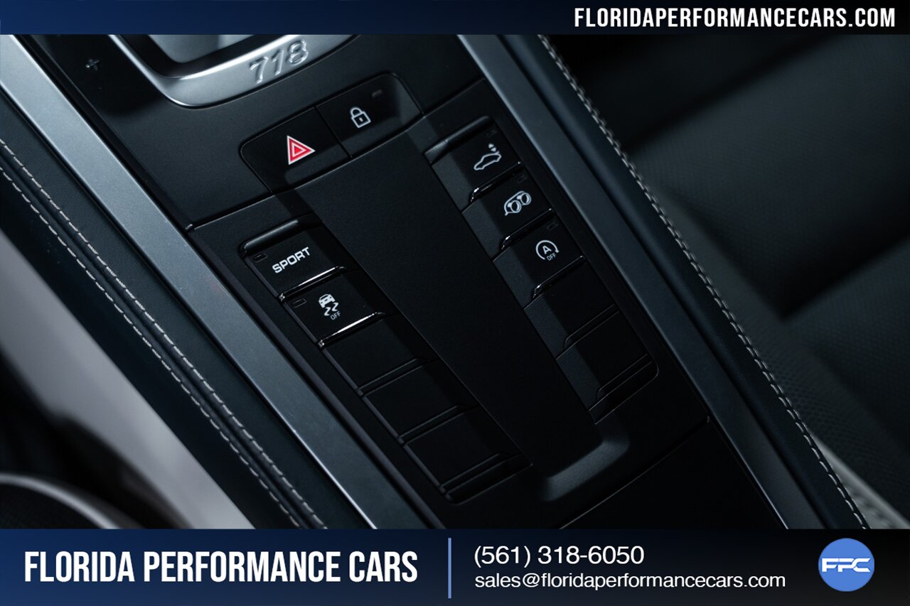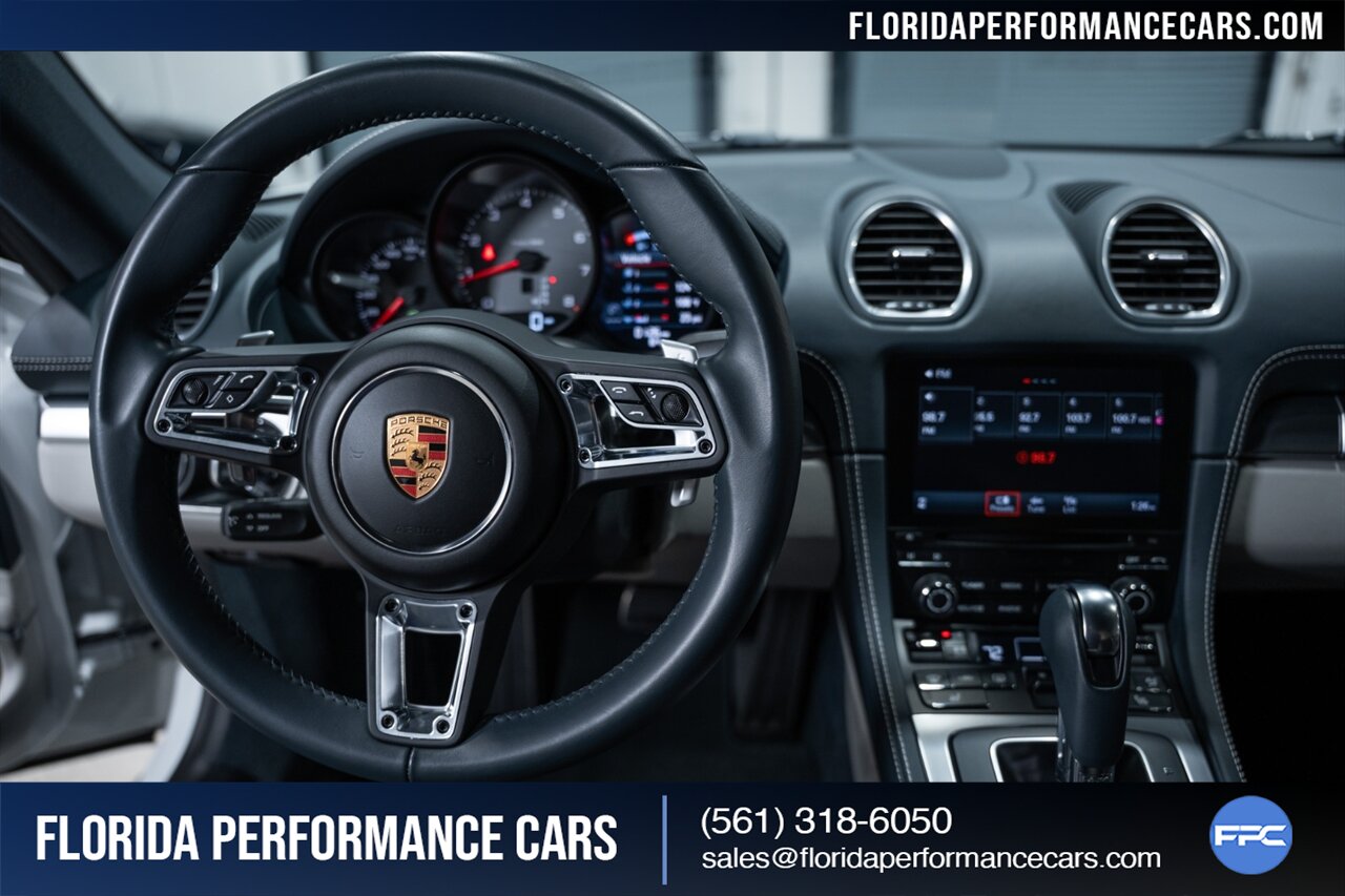 This is a 1-OWNER, Clean CARFAX and exceptionally well kept 718 Cayman S. Local Florida owned since new, garage kept, non-smoker interior. All original, no mods, service is current, tires are good Pirelli P Zero all around. 2 keys and owners manuals will come with the car to the next owner.