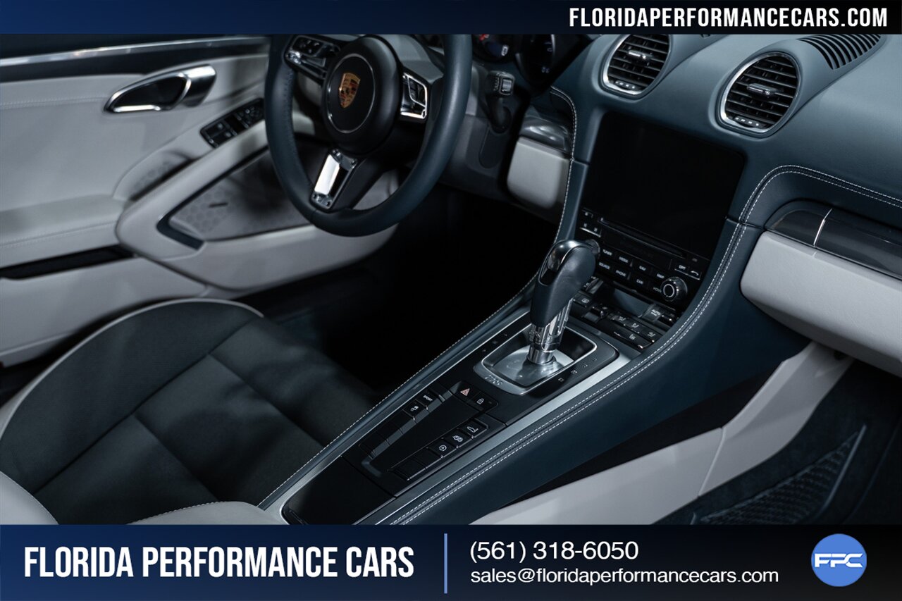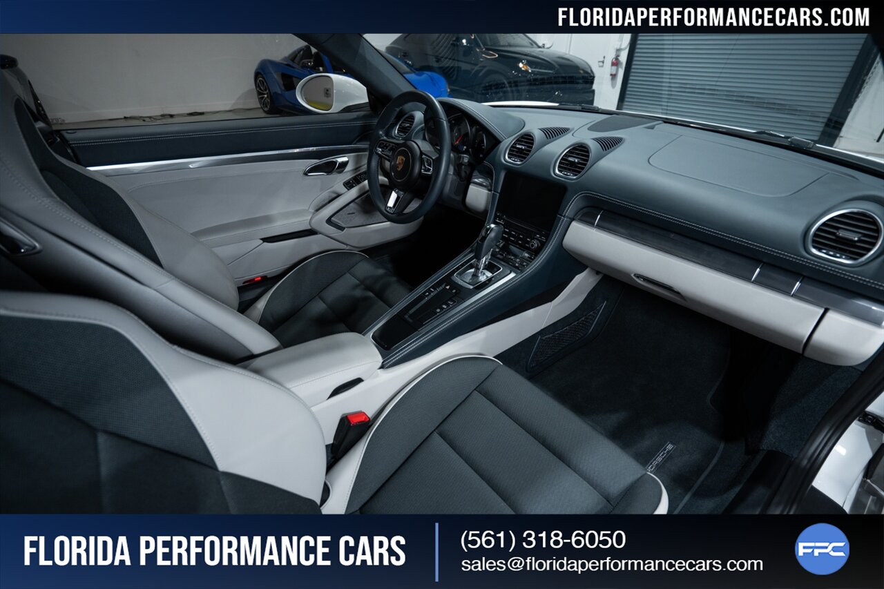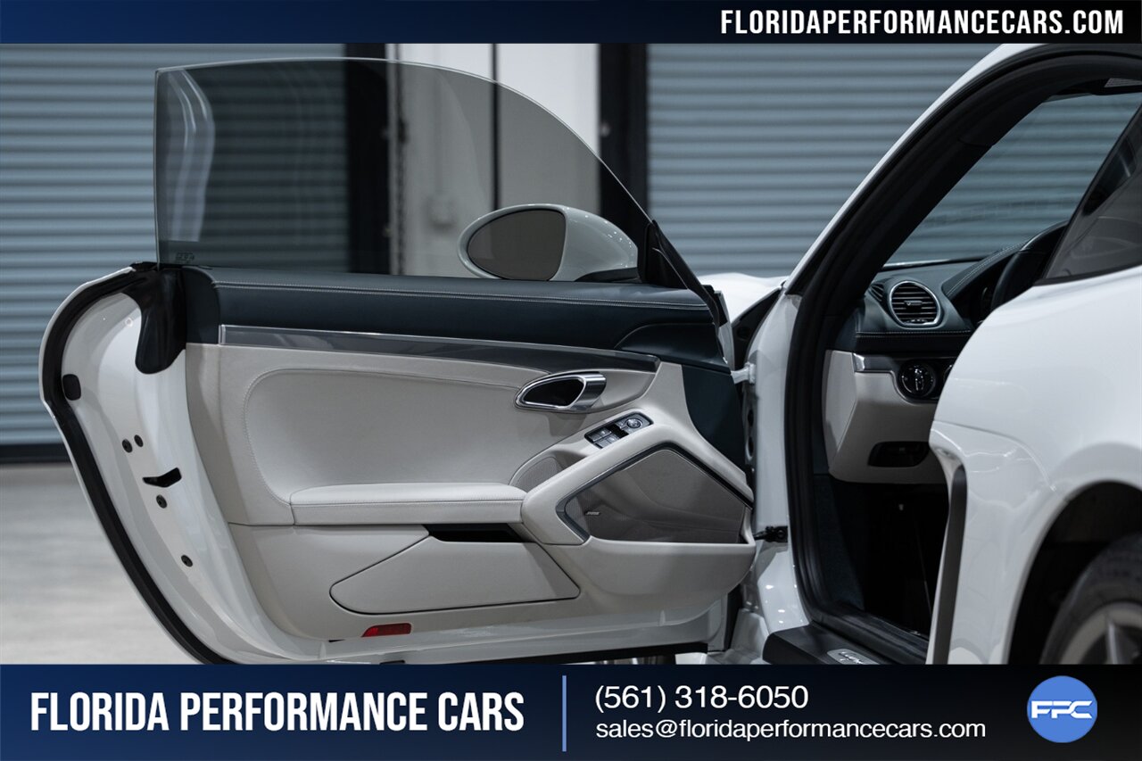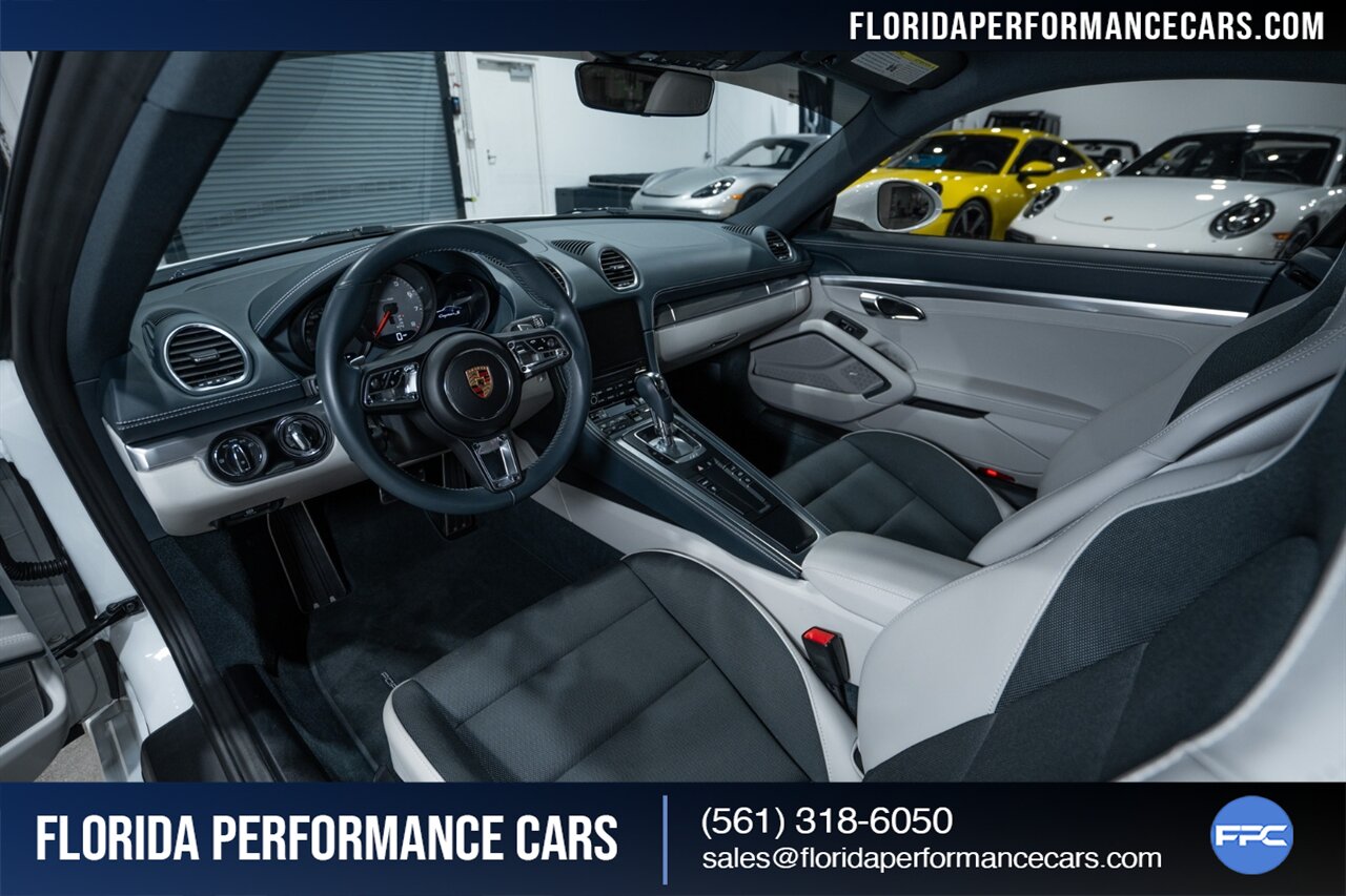 Florida Performance Cars is pleased to announce the arrival of this STUNNING 2019 Porsche 718 Cayman S finished in Carrara White Metallic over Leather Interior in Graphite Blue & Chalk w/ Only 11,636 miles!