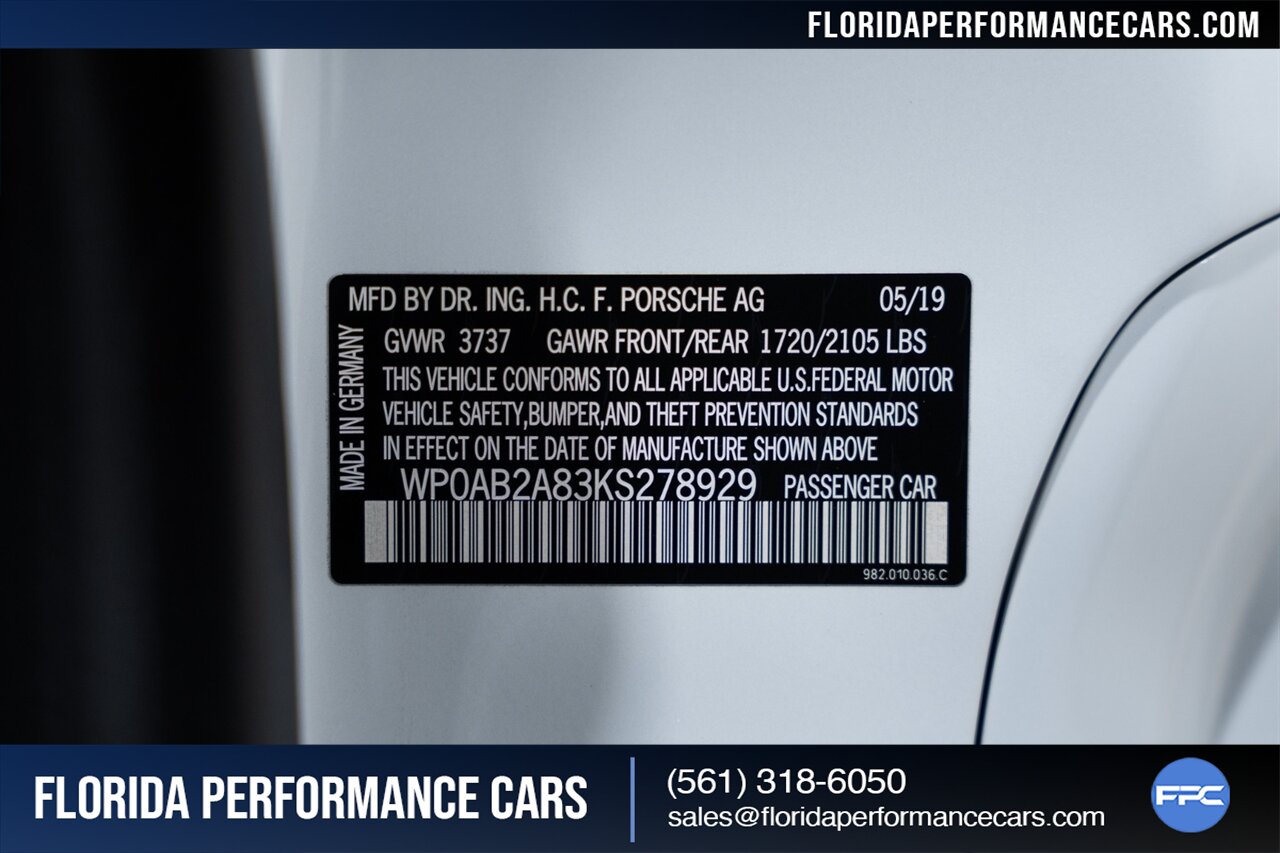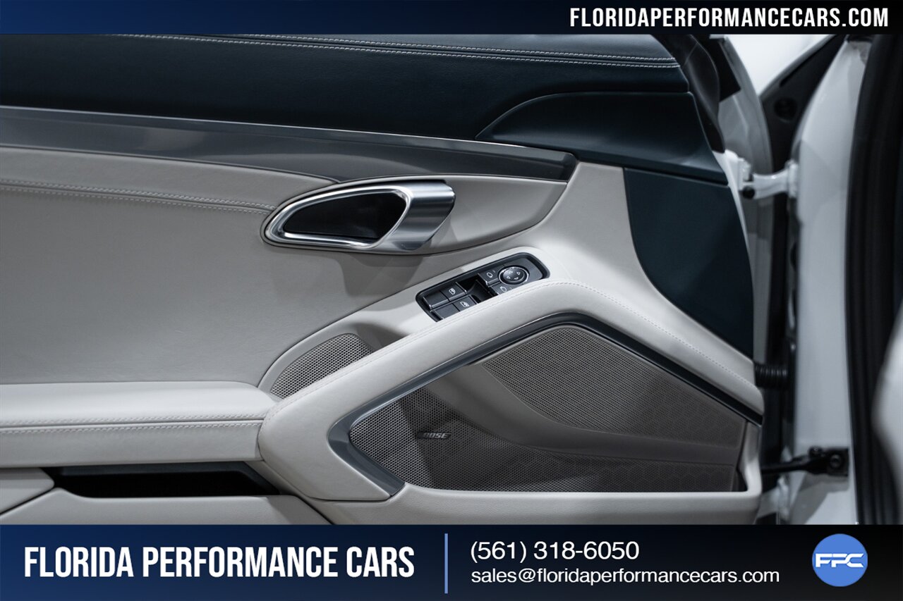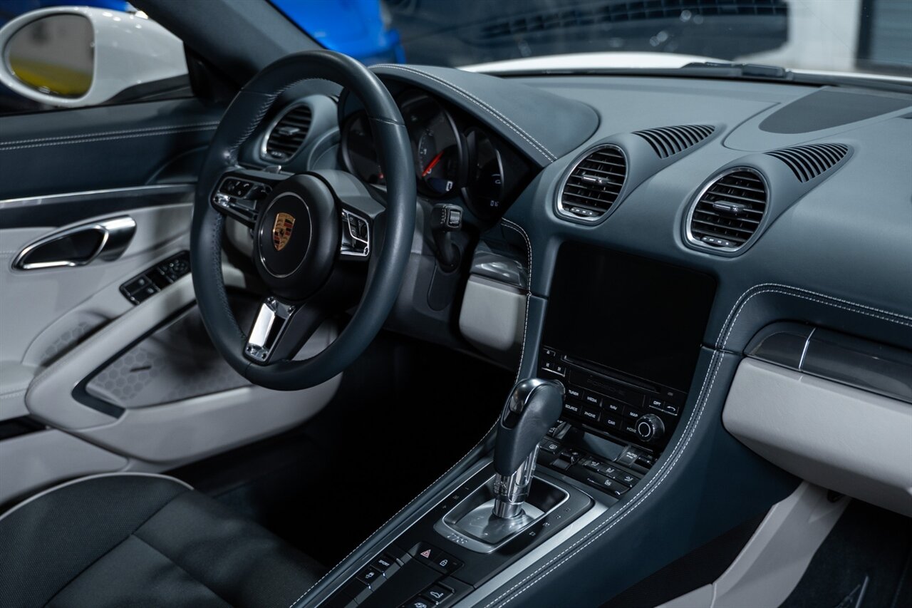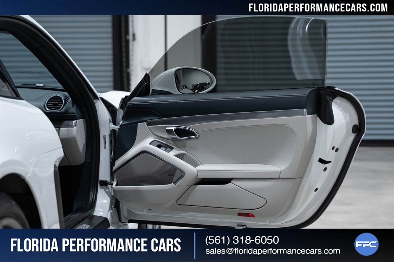 Florida Performance Cars is pleased to announce the arrival of this STUNNING 2019 Porsche 718 Cayman S finished in Carrara White Metallic over Leather Interior in Graphite Blue & Chalk w/ Only 11,636 miles!