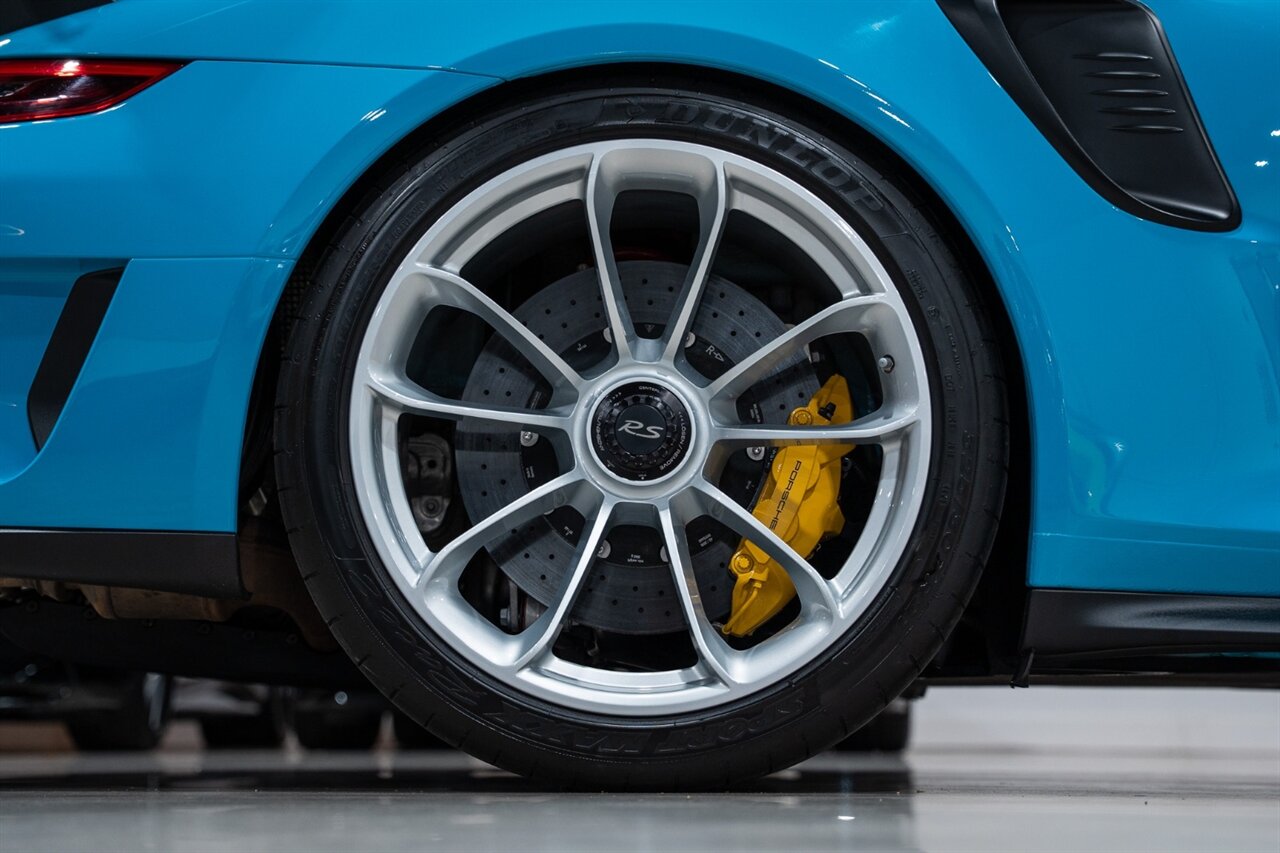 Florida Performance Cars is pleased to announce the arrival of this STUNNING 2019 Porsche 911 GT3 RS finished in MIAMI BLUE over Leather & Alcantara Interior in Black w/ GT Silver Stitching and Only 25,594 miles. This is a Clean CARFAX, excellent condition and very well kept 991.2 GT3 RS.