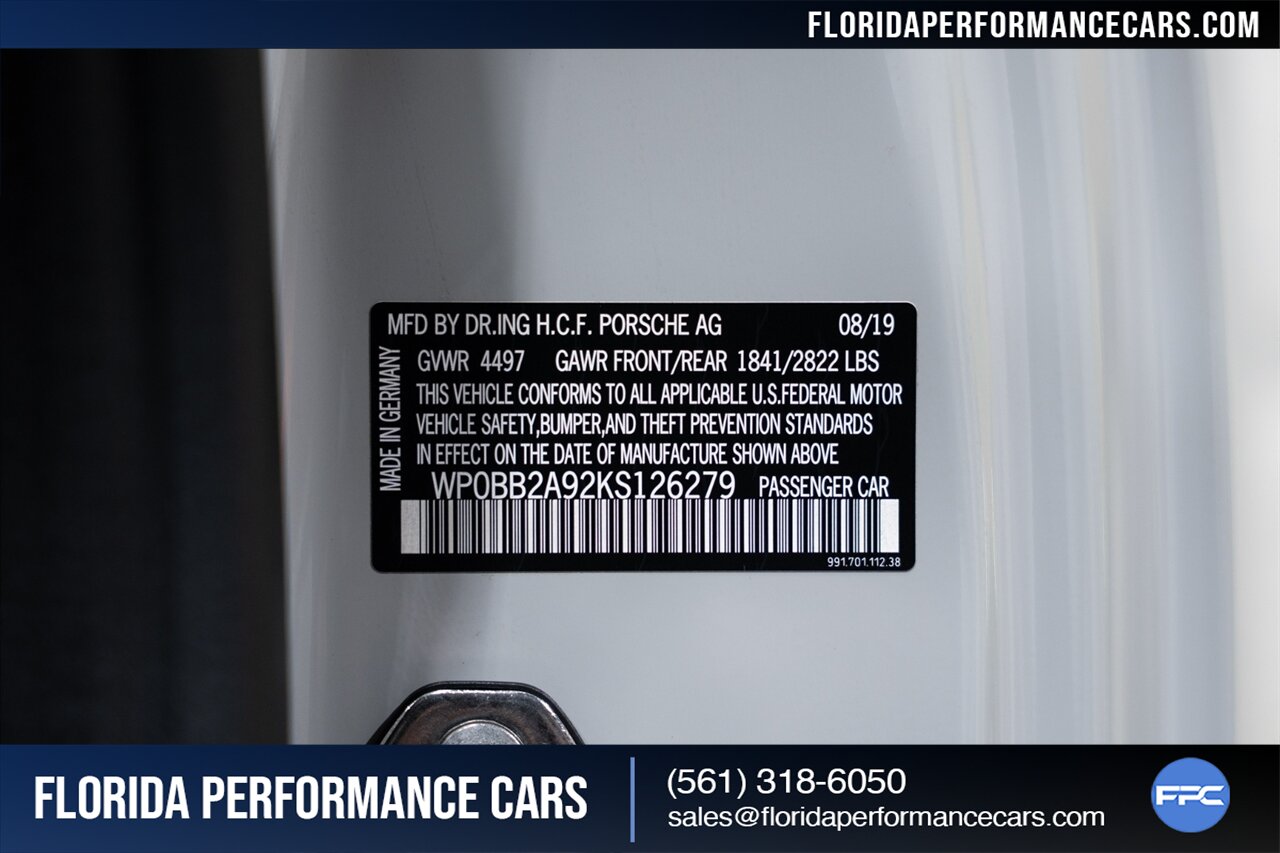 Florida Performance Cars is pleased to announce the arrival of this STUNNING 2019 Porsche 911 Targa 4S finished in CHALK over Leather Interior in Black w/ ONLY 453 miles!! This is a 1-OWNER, Clean CARFAX and practically still brand new 991.2 Targa 4S.