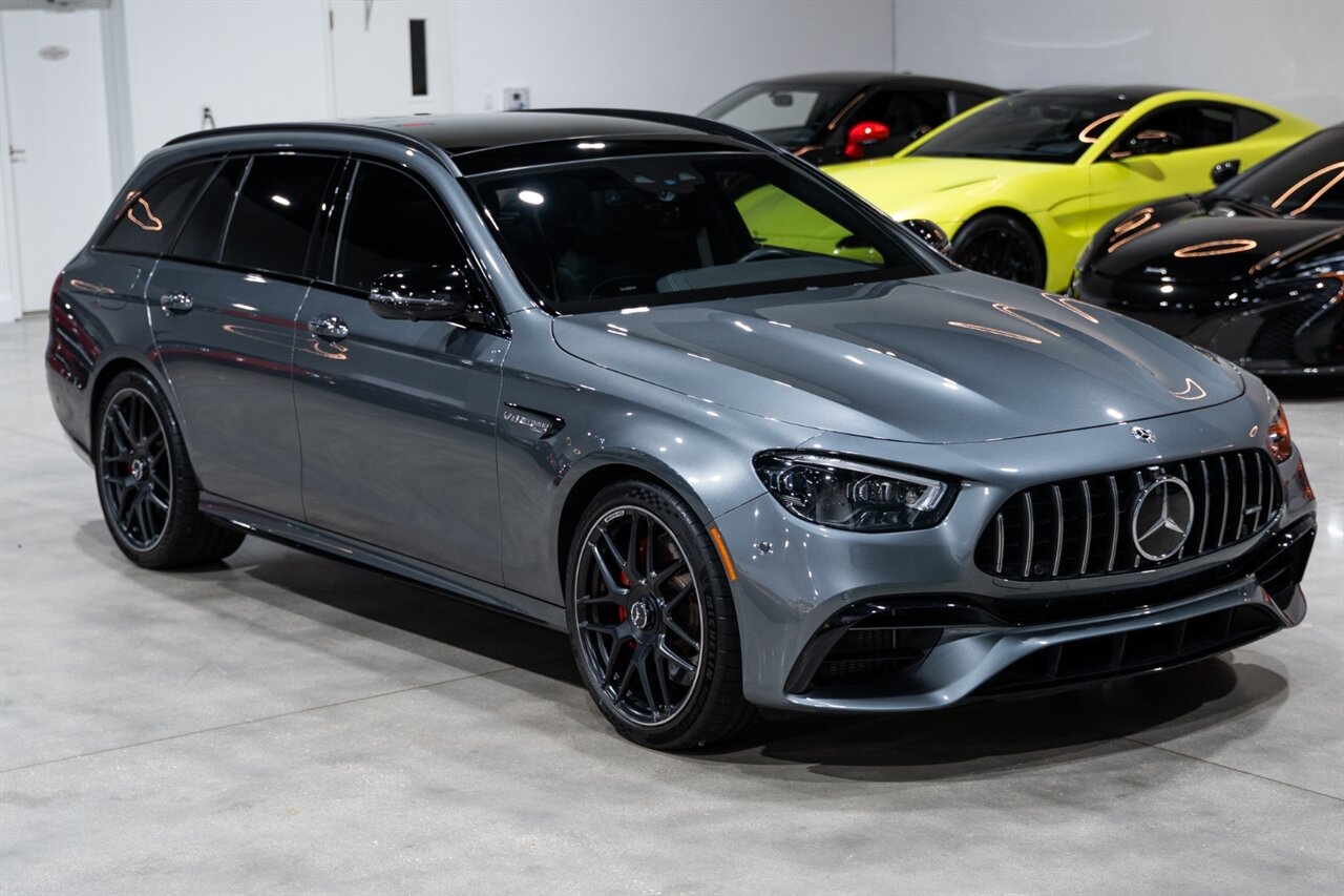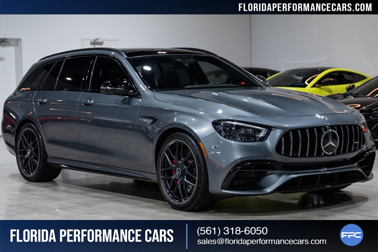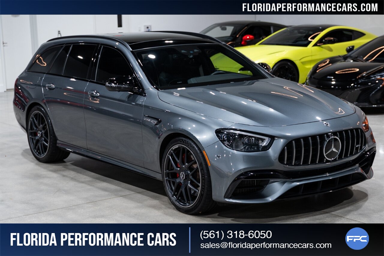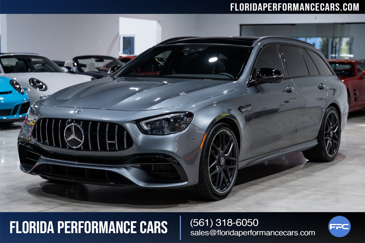 Florida Performance Cars is pleased to announce the arrival of this STUNNING 2021 Mercedes-Benz AMG E 63 S Wagon finished in Selenite Grey Metallic over Black Exclusive Nappa Leather Interior w/ Silver Stitching and 43,761 miles.  This is a Clean CARFAX, excellent condition and exceptionally well-kept E 63 S Wagon.