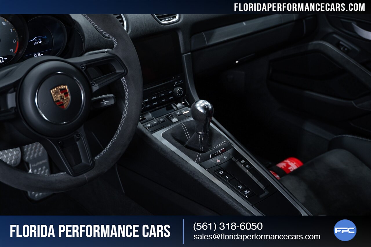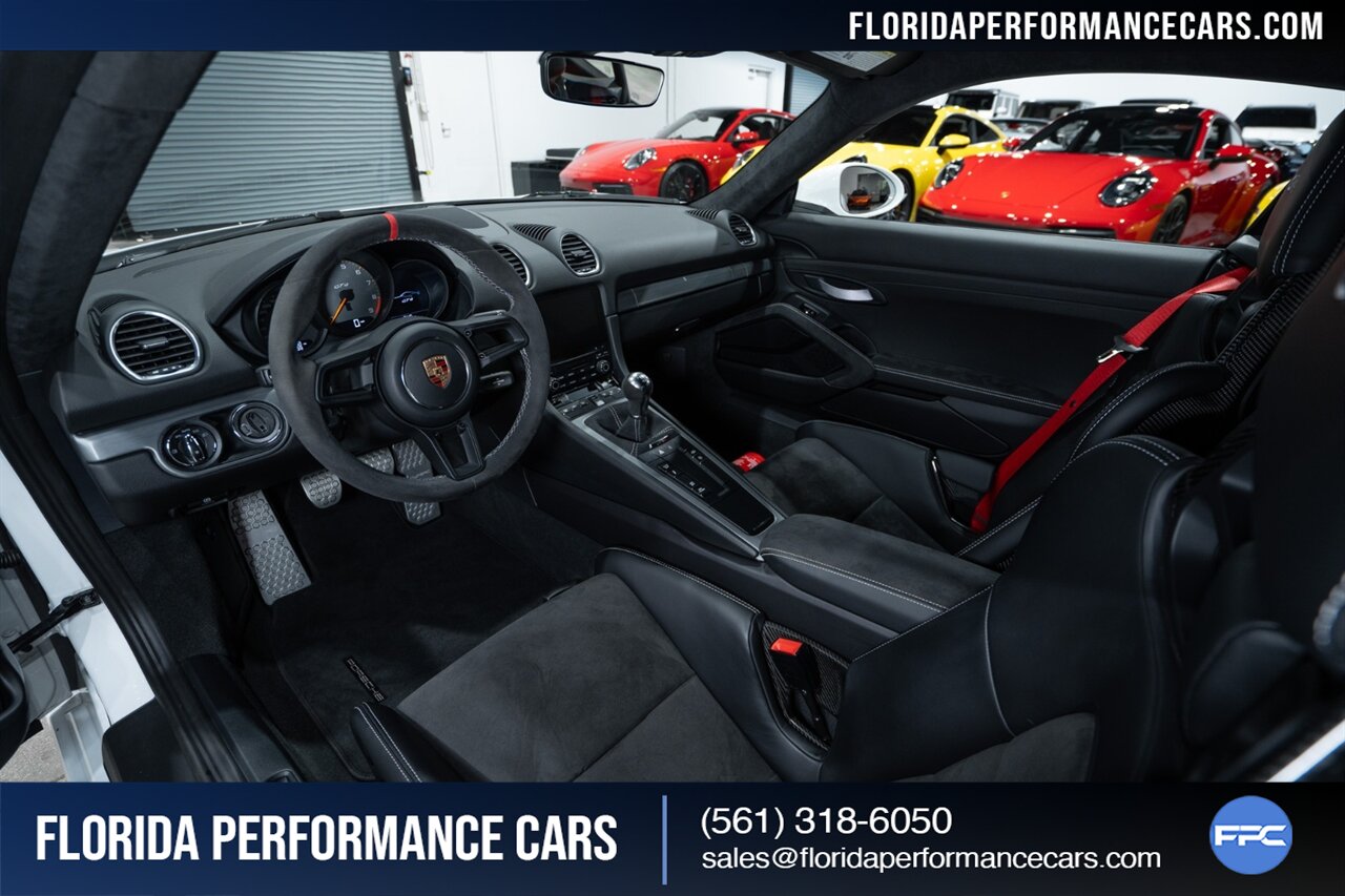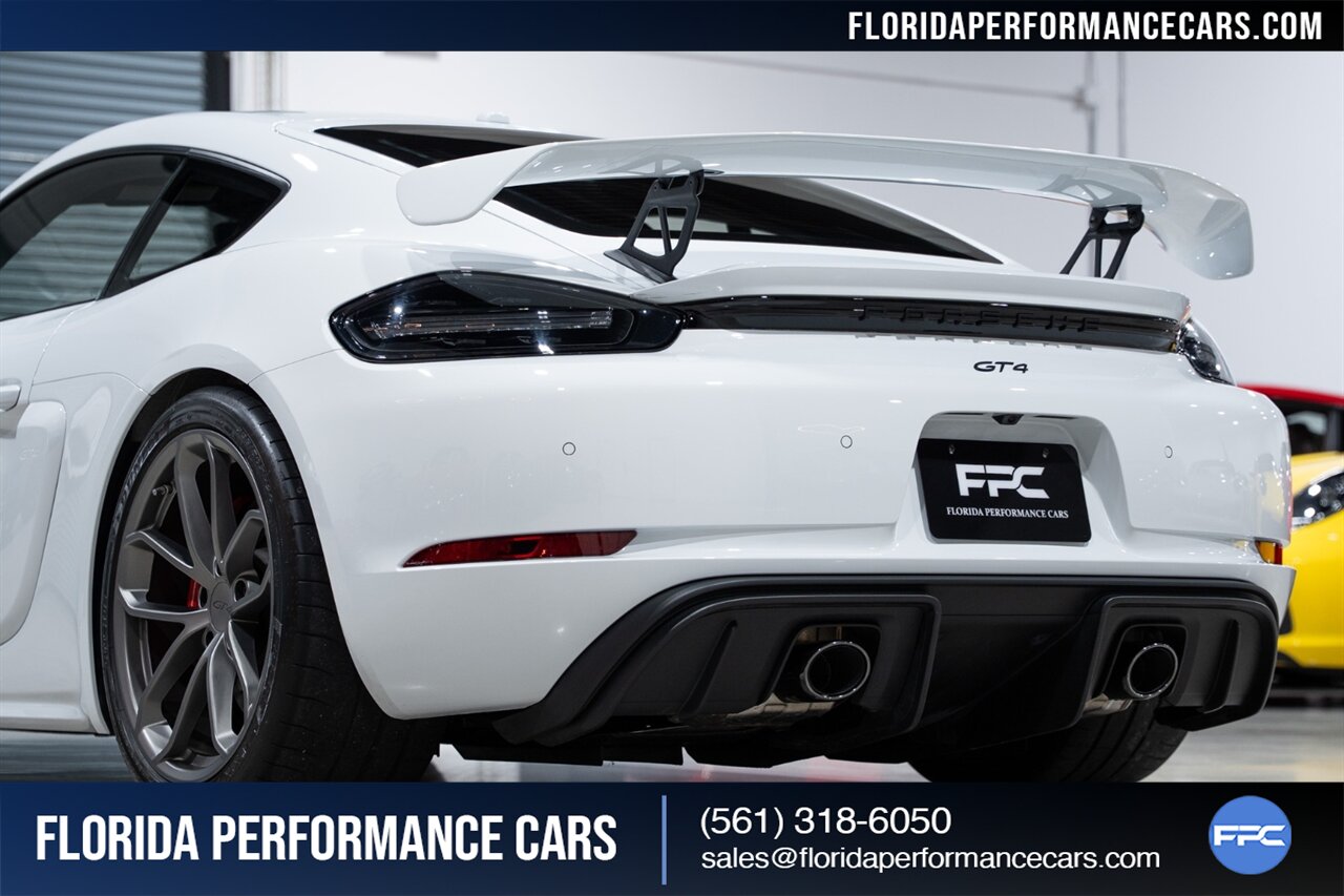 Florida Performance Cars is pleased to announce the arrival of this STUNNING 2021 Porsche 718 Cayman GT4 finished in Carrara White Metallic over Black w/ Silver stitching, 6-Speed MANUAL transmission and Only 5,338 miles!