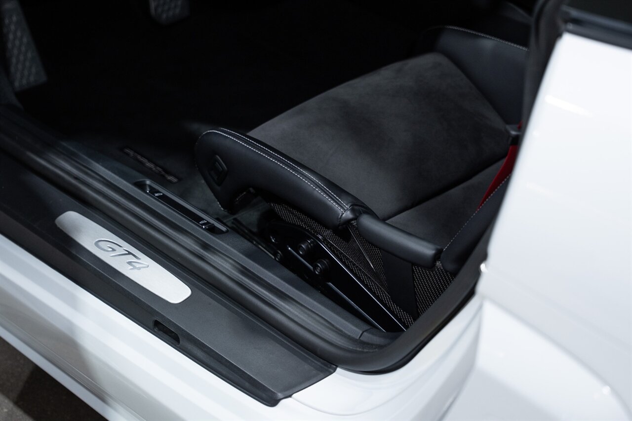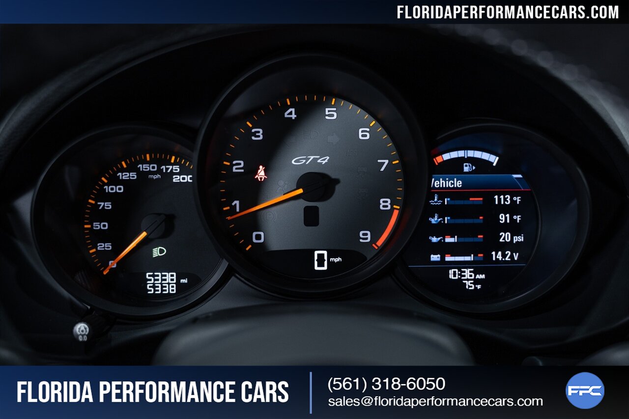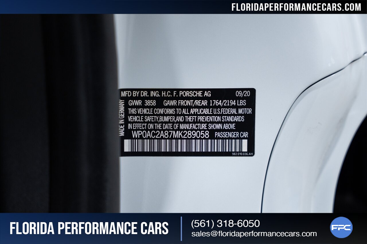 Florida Performance Cars is pleased to announce the arrival of this STUNNING 2021 Porsche 718 Cayman GT4 finished in Carrara White Metallic over Black w/ Silver stitching, 6-Speed MANUAL transmission and Only 5,338 miles!