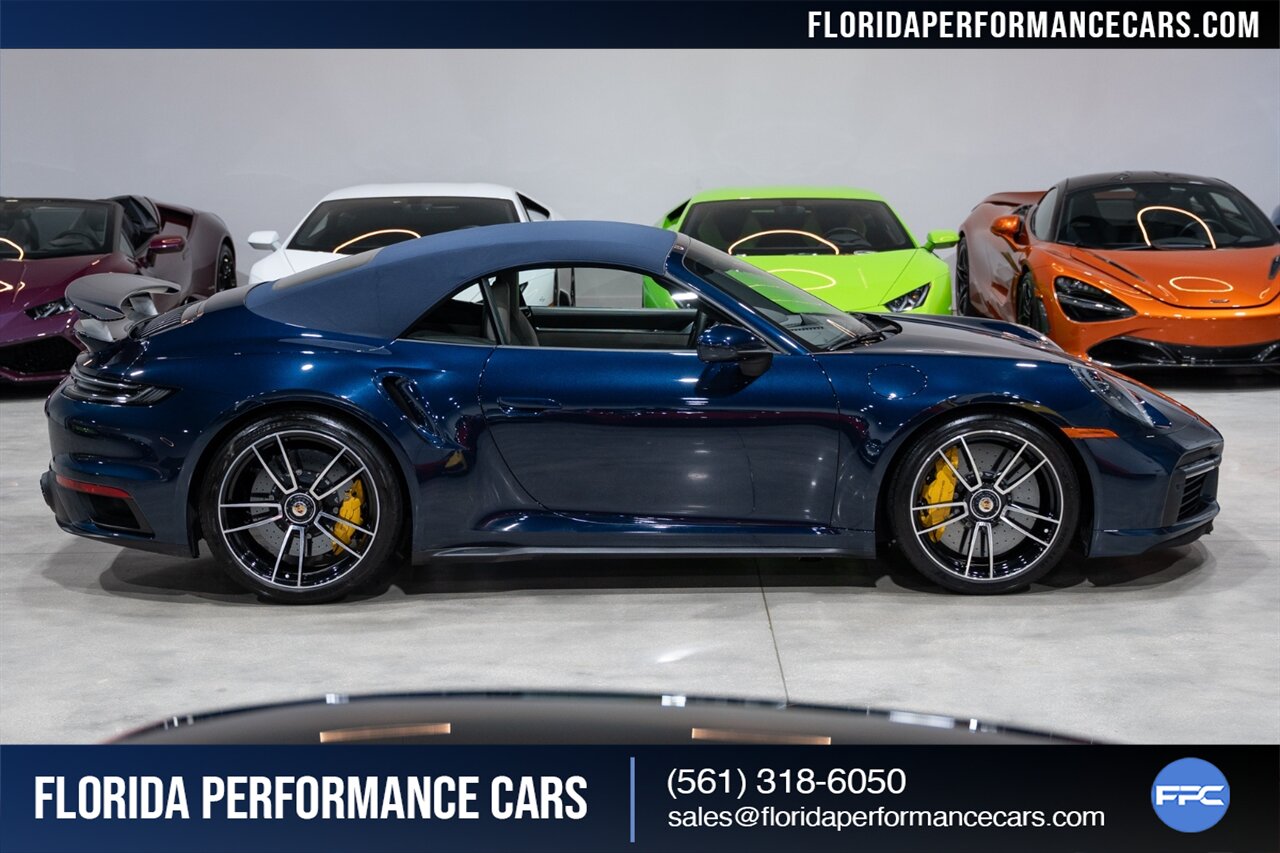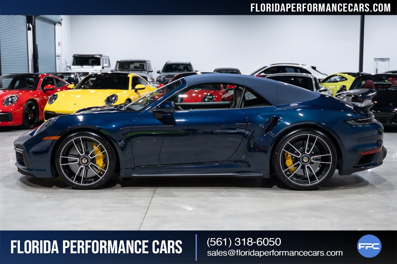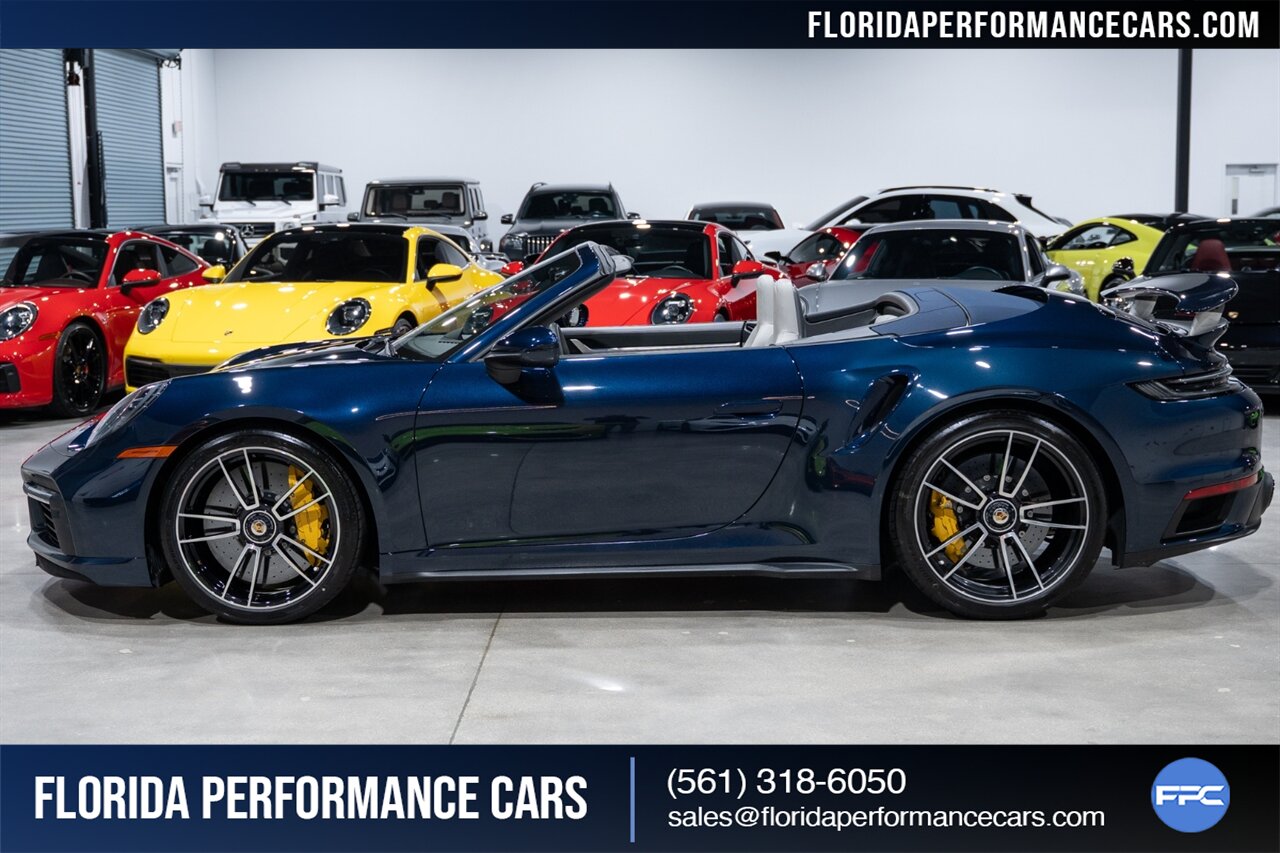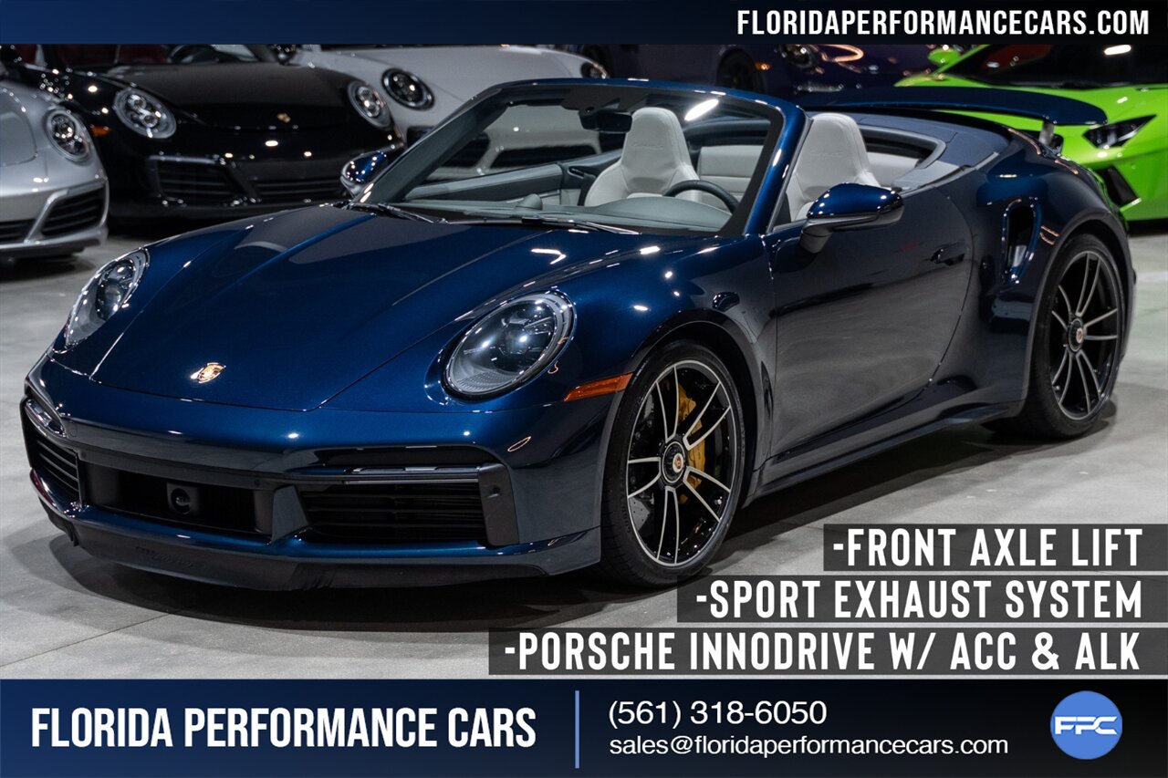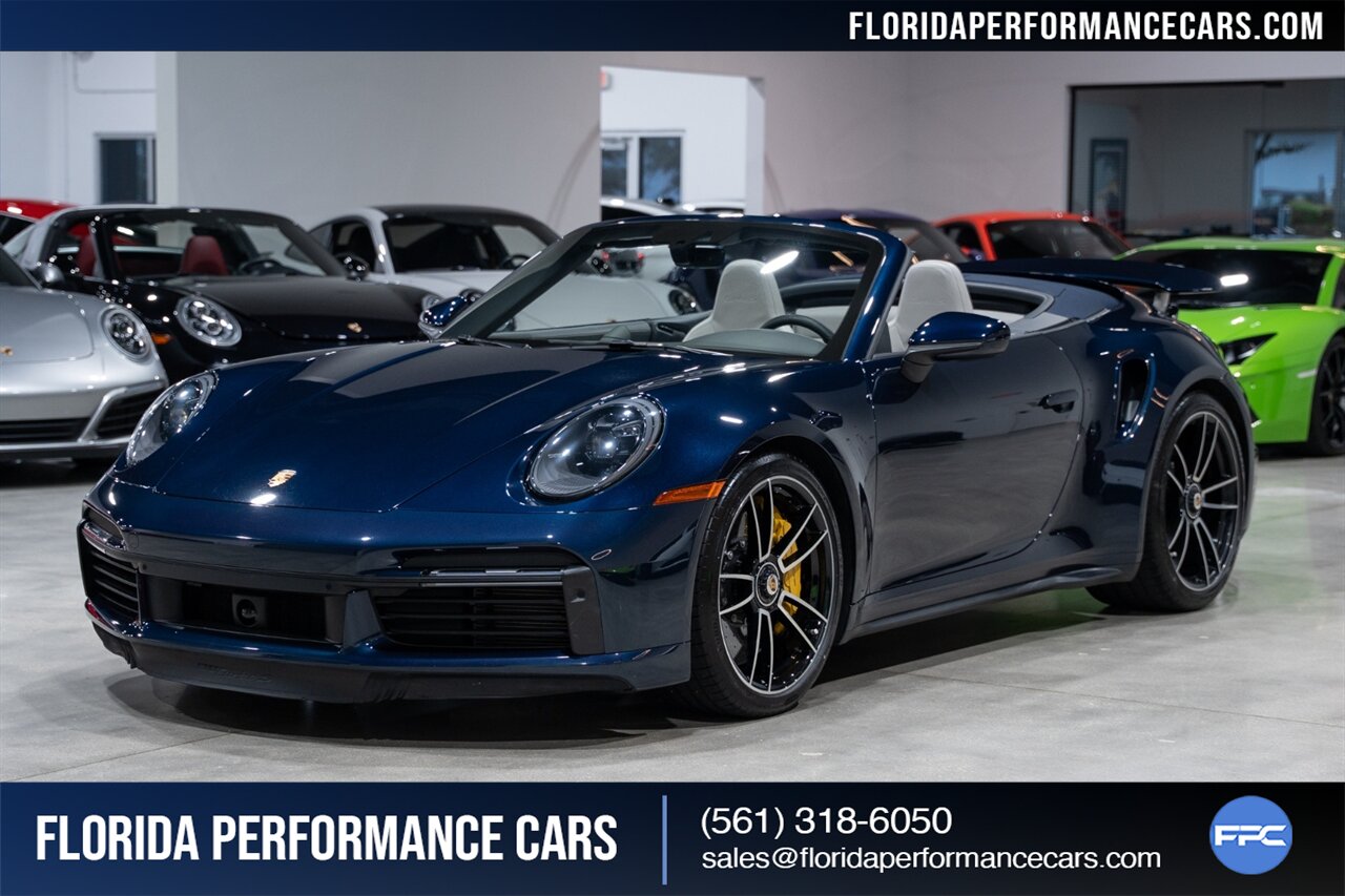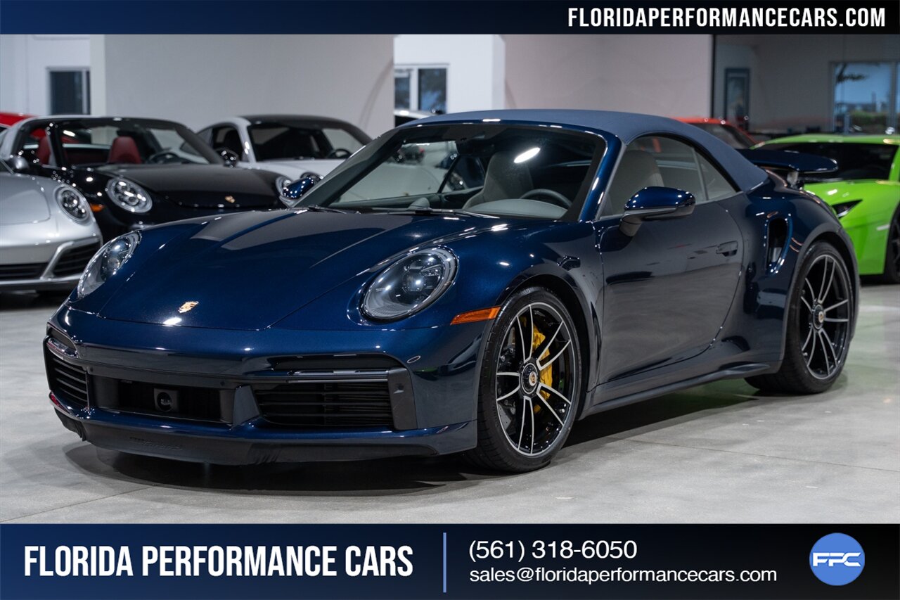 Florida Performance Cars is pleased to announce the arrival of this STUNNING 2021 Porsche 911 Turbo S Cabriolet finished in Night Blue Metallic over Leather Interior in Slate Gray and Chalk w/ 18,048 miles.