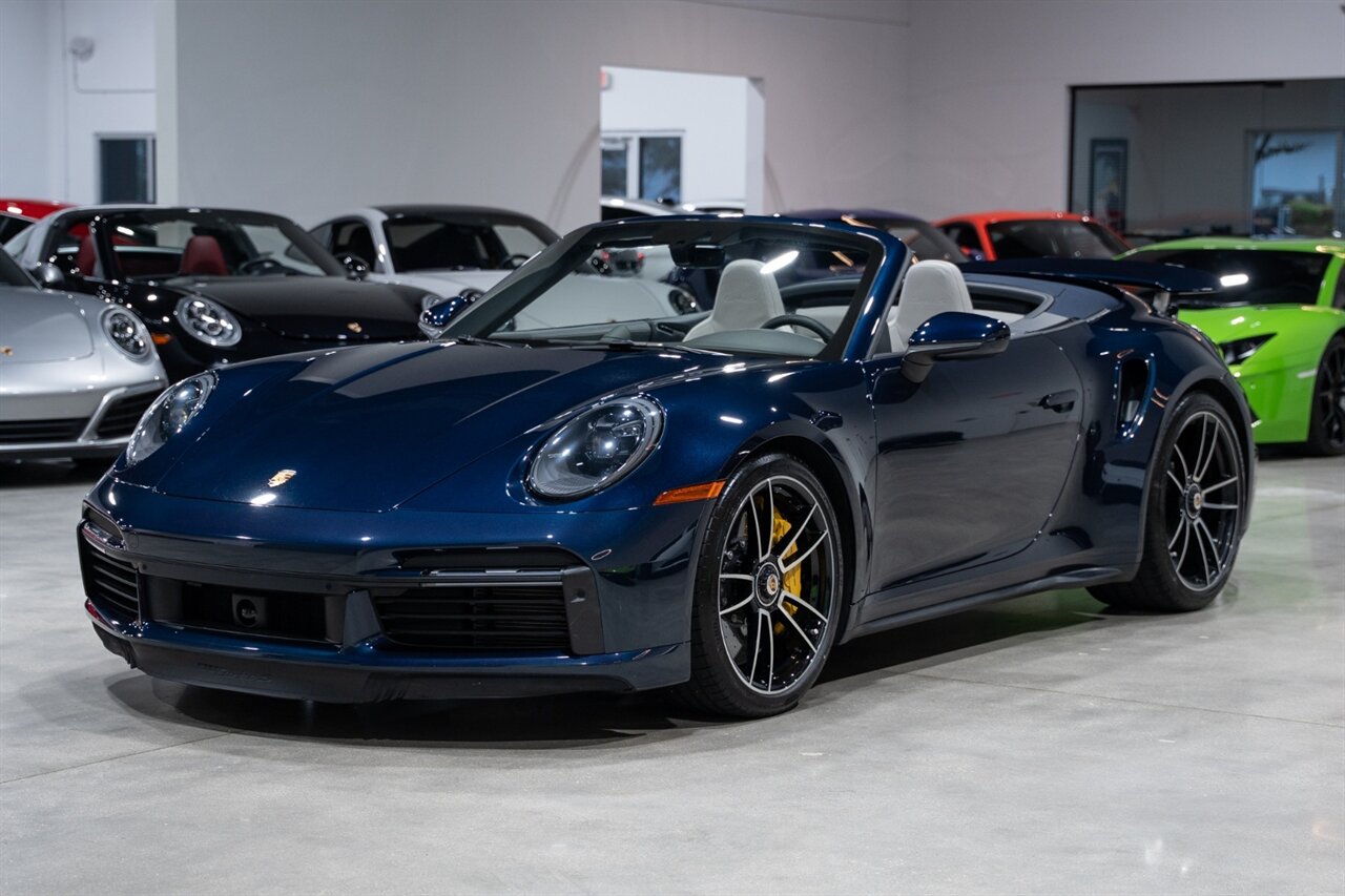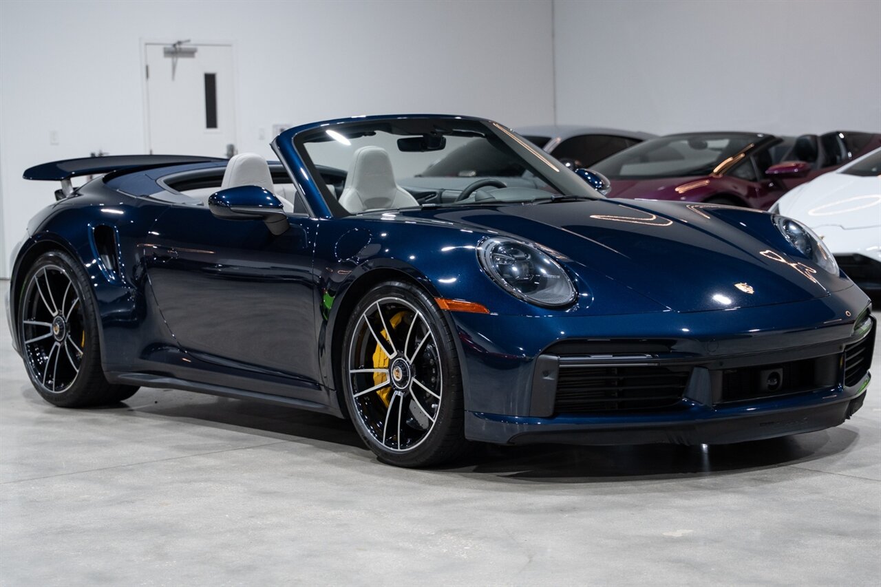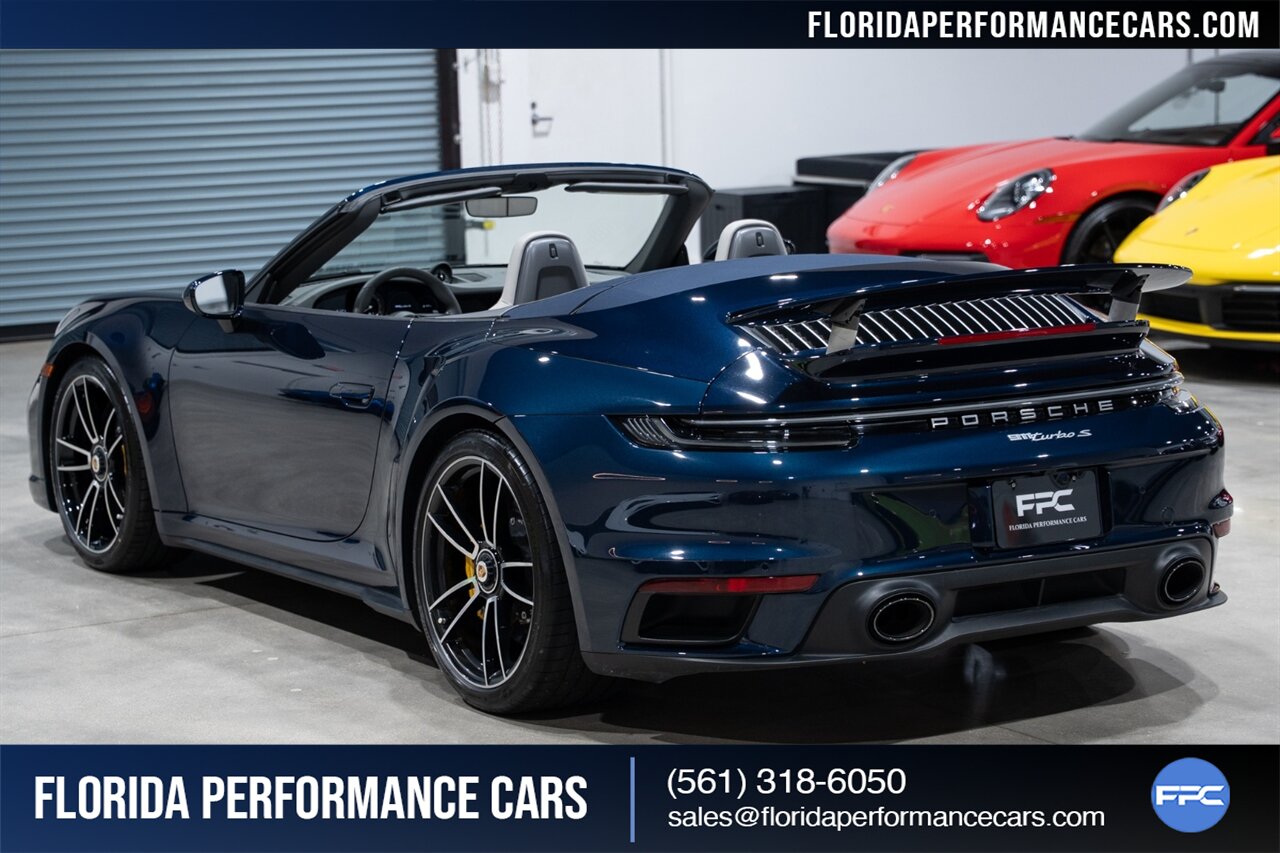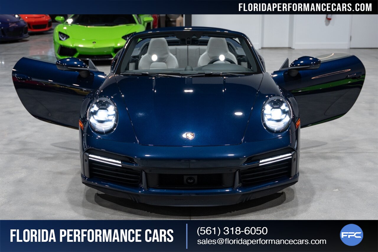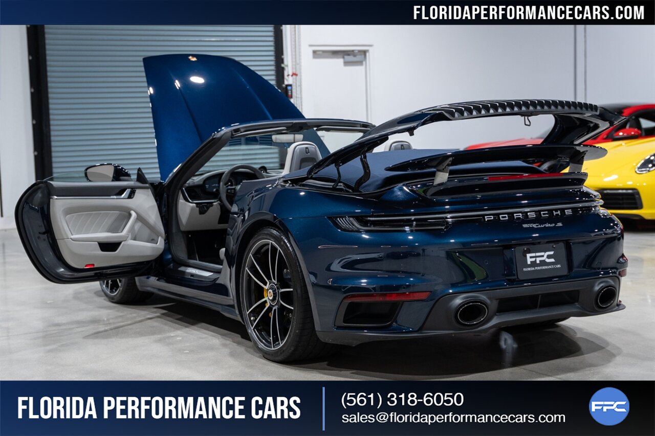 Florida Performance Cars is pleased to announce the arrival of this STUNNING 2021 Porsche 911 Turbo S Cabriolet finished in Night Blue Metallic over Leather Interior in Slate Gray and Chalk w/ 18,048 miles.