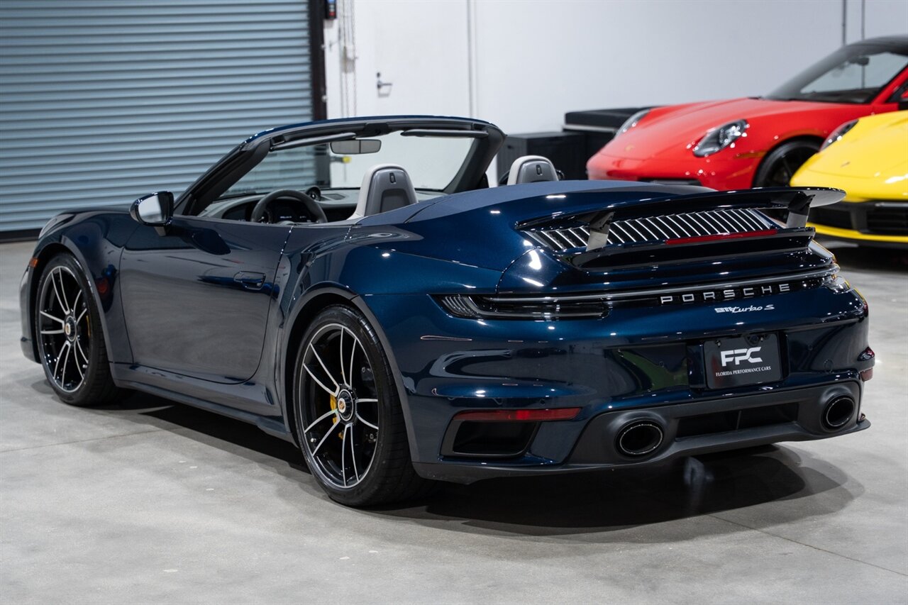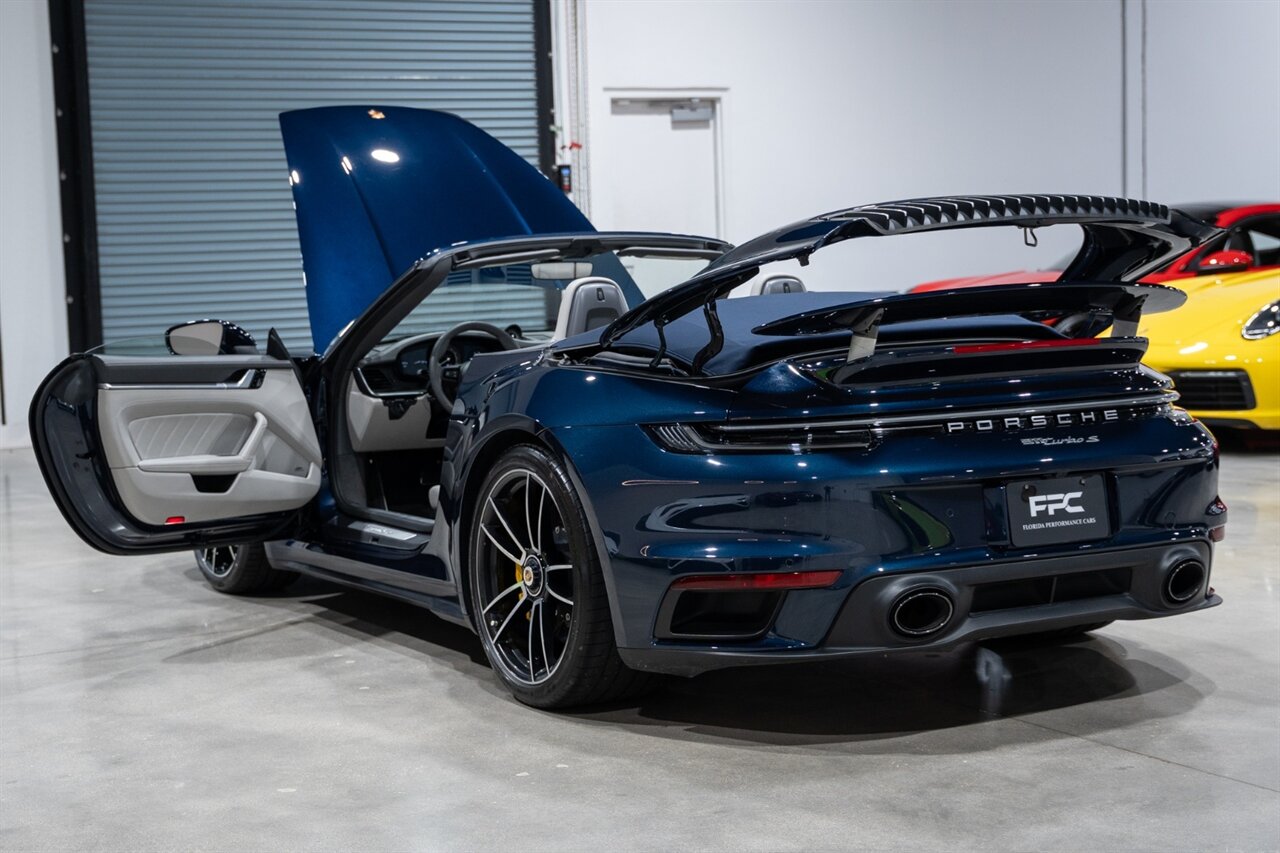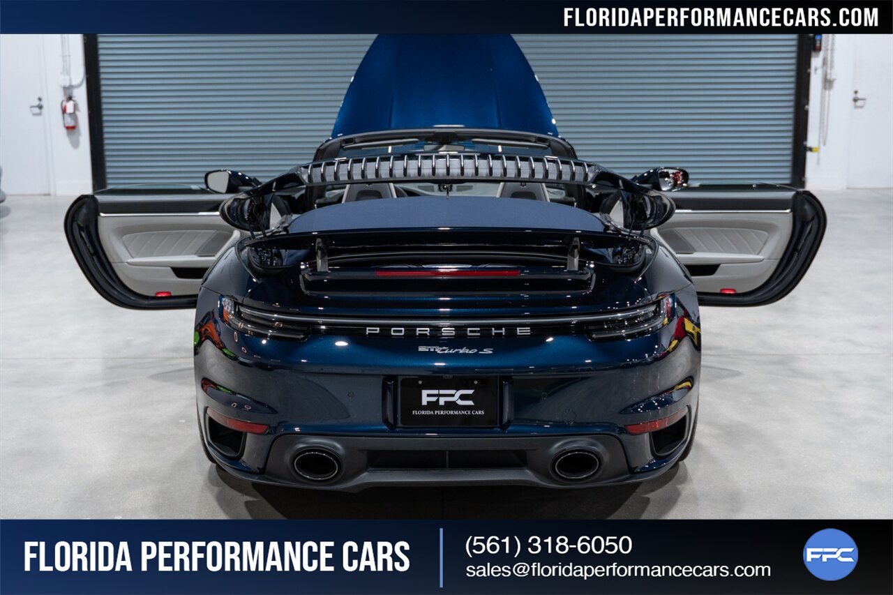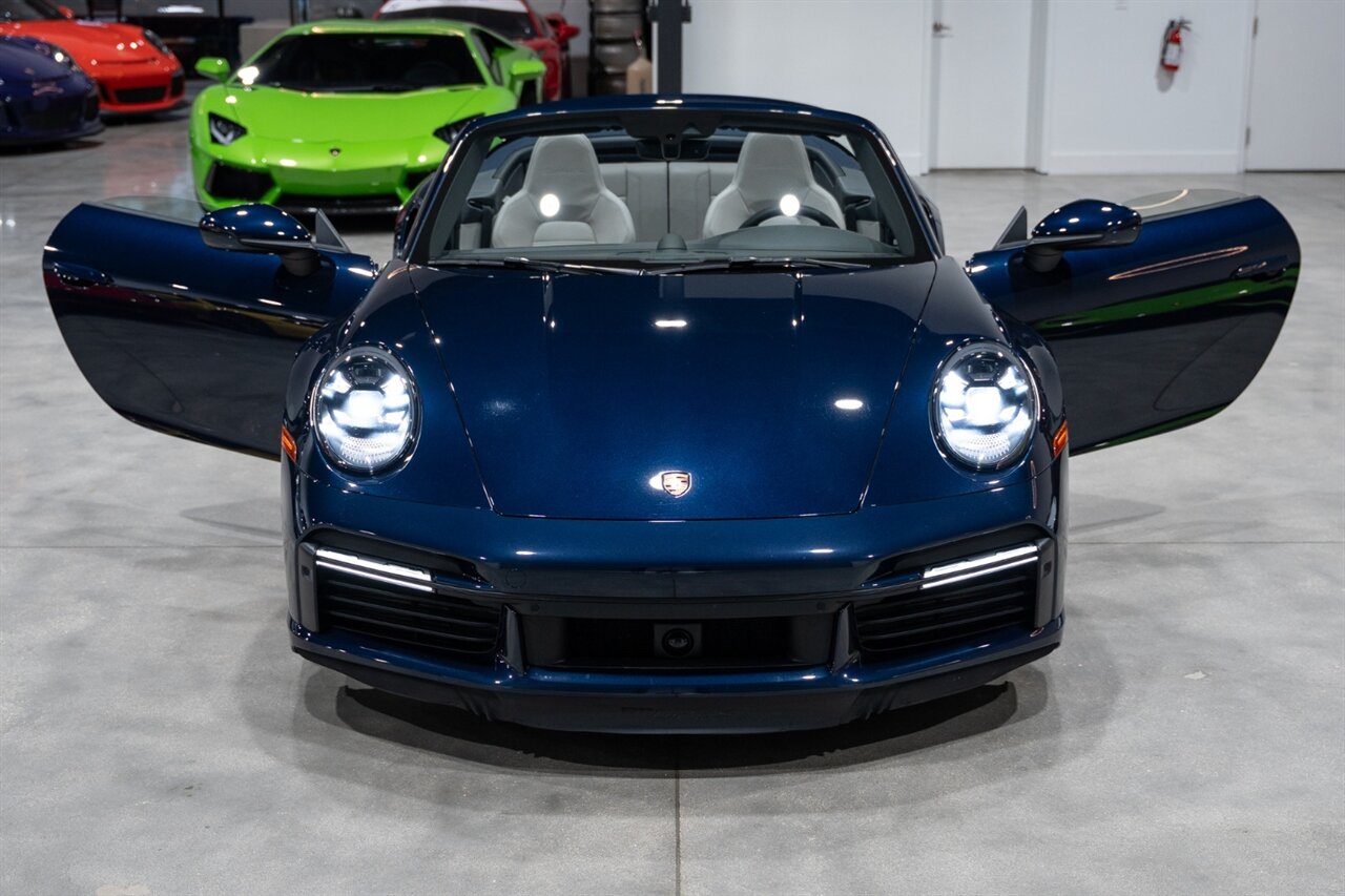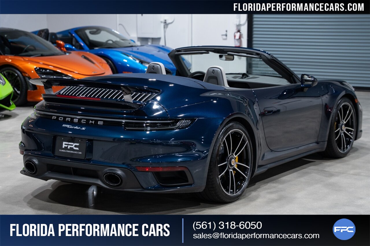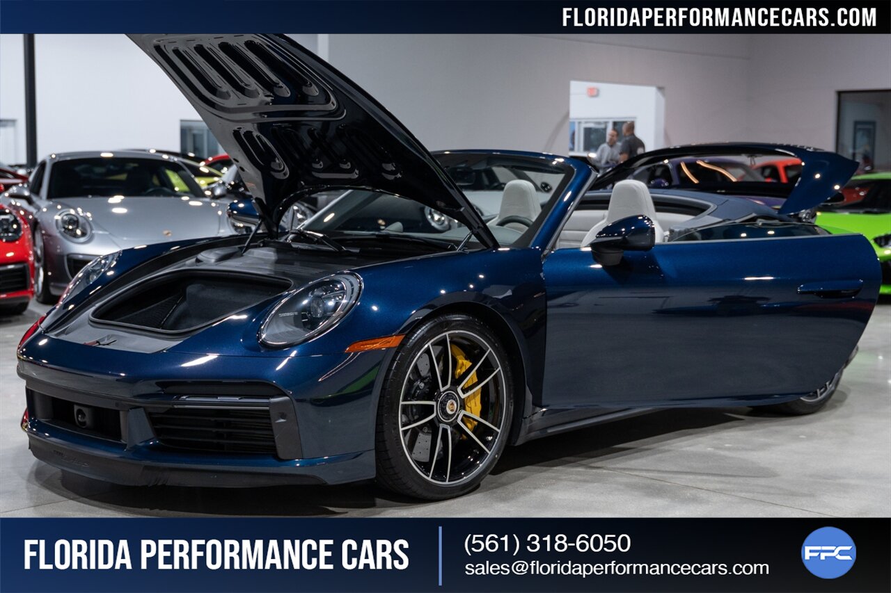 Florida Performance Cars is pleased to announce the arrival of this STUNNING 2021 Porsche 911 Turbo S Cabriolet finished in Night Blue Metallic over Leather Interior in Slate Gray and Chalk w/ 18,048 miles.
